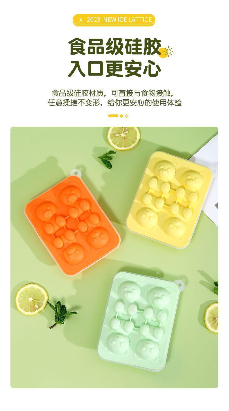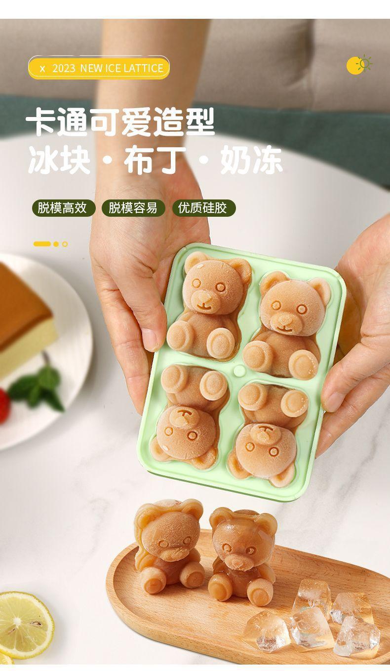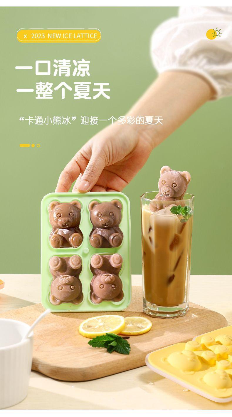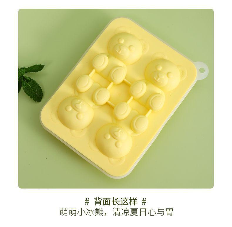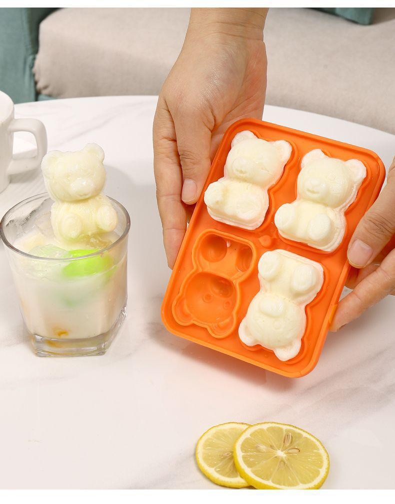 Verano Hecho a Mano Lindo Molde de Silicona para Cubitos de Hielo de Oso de 4 Piezas Hogar Helado Helado Molde Prensa