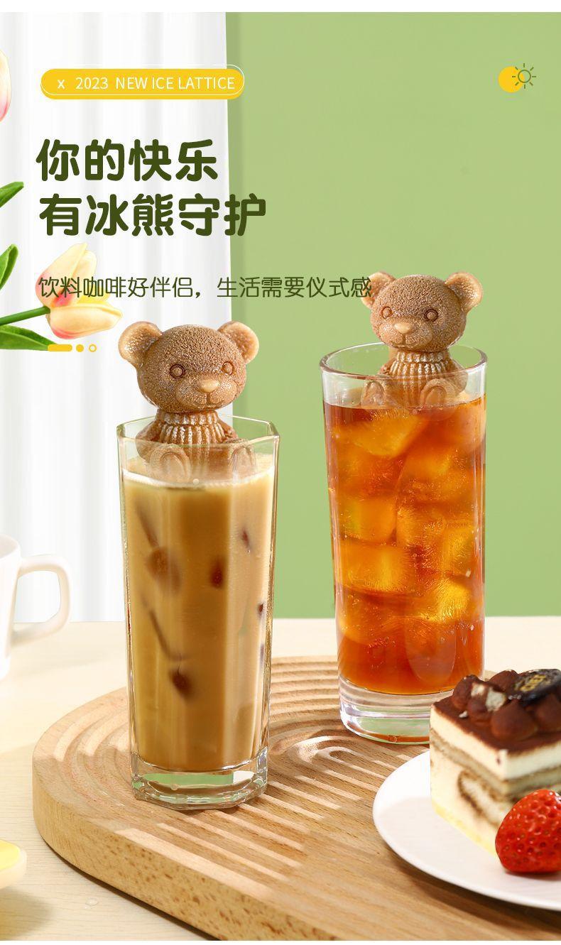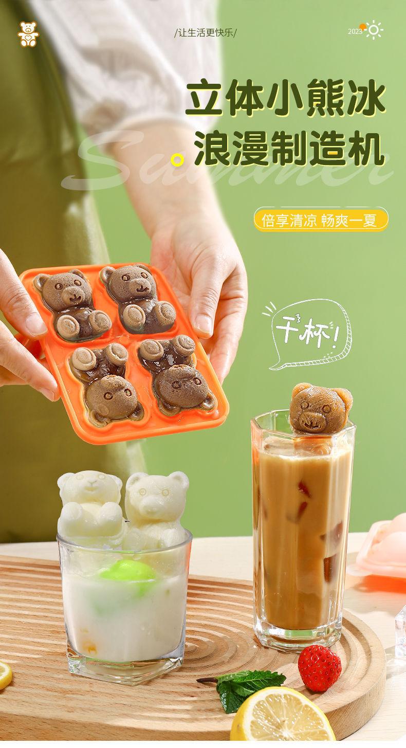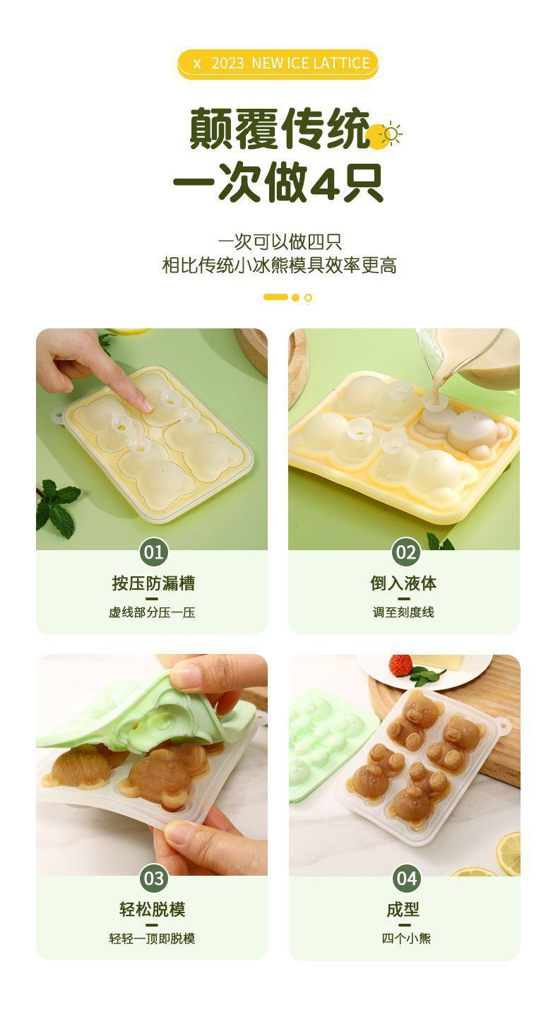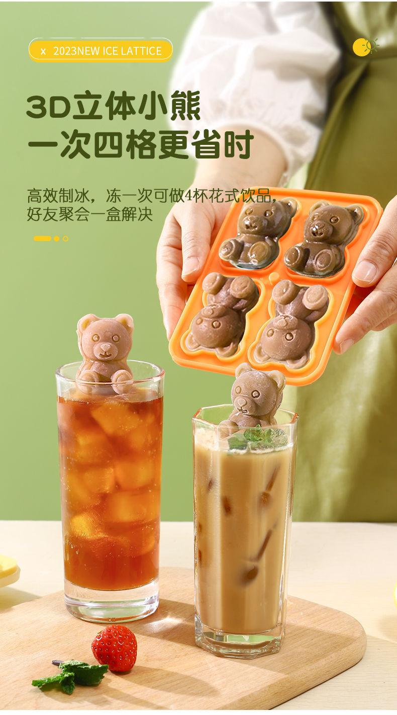 Verano Hecho a Mano Lindo Molde de Silicona para Cubitos de Hielo de Oso de 4 Piezas Hogar Helado Helado Molde Prensa