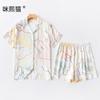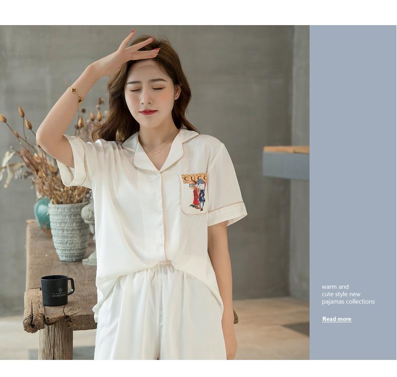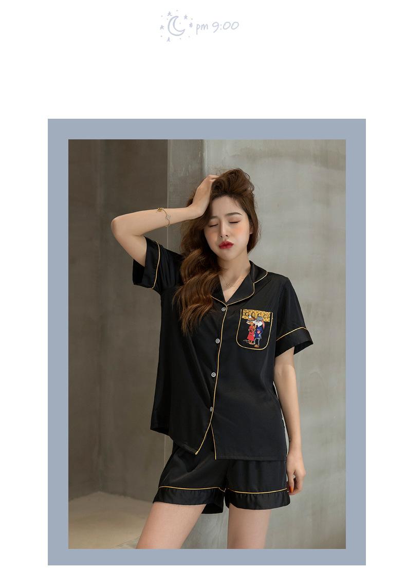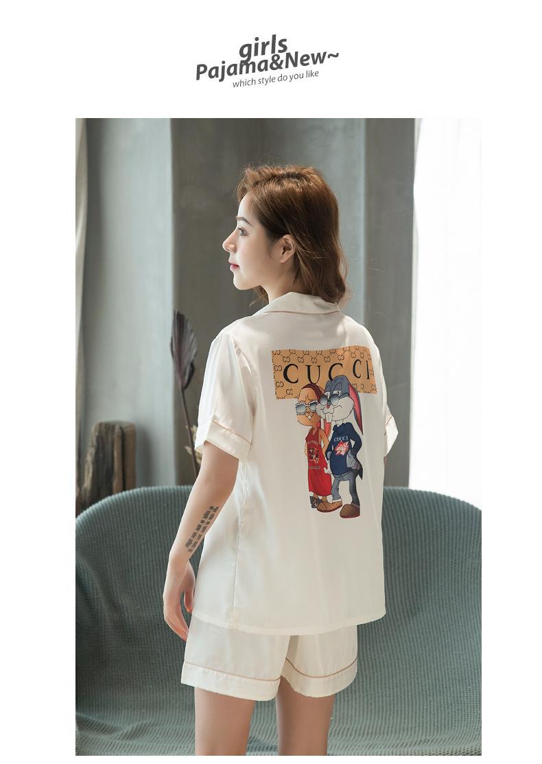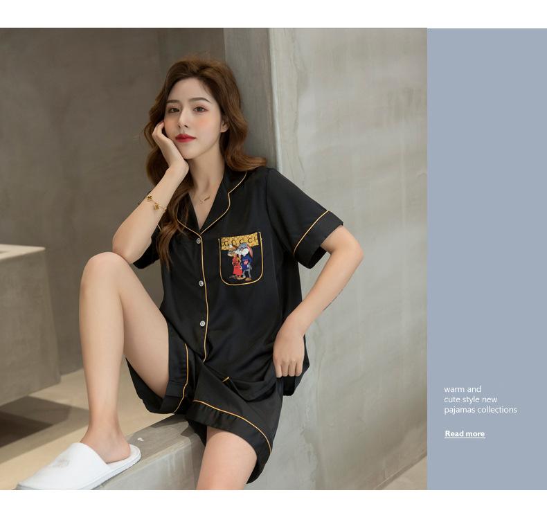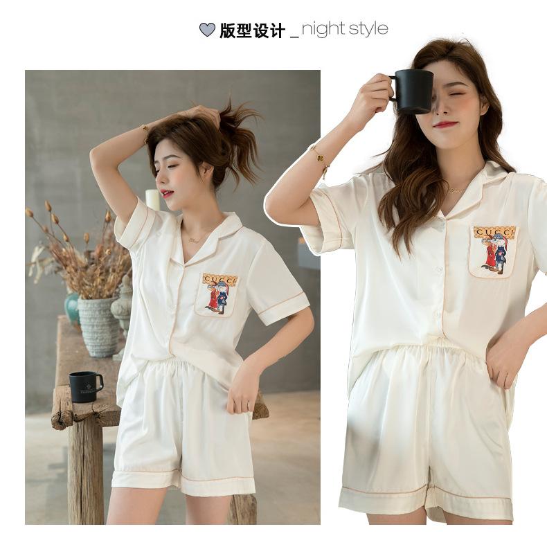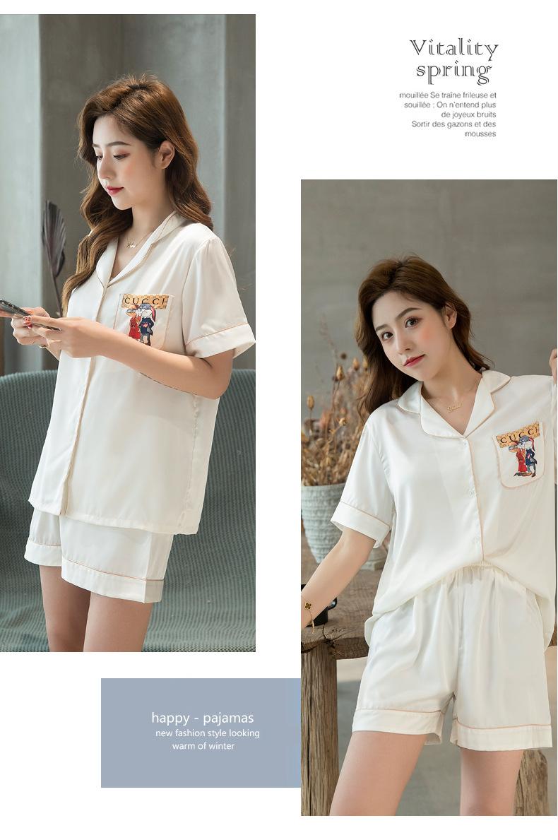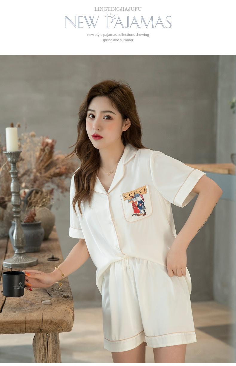 2020 Verano Nueva Llegada Pijama para Mujer Lindo Casual Traje de Seda Estilo Coreano Manga Corta Shorts Seda de Hielo Ropa para el Hogar