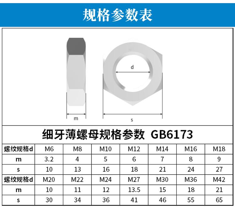 [304 tuerca fina de dientes finos GB6173] Tuerca fina hexagonal de dientes finos de acero inoxidable DIN439 tuerca de dientes finos