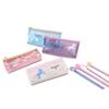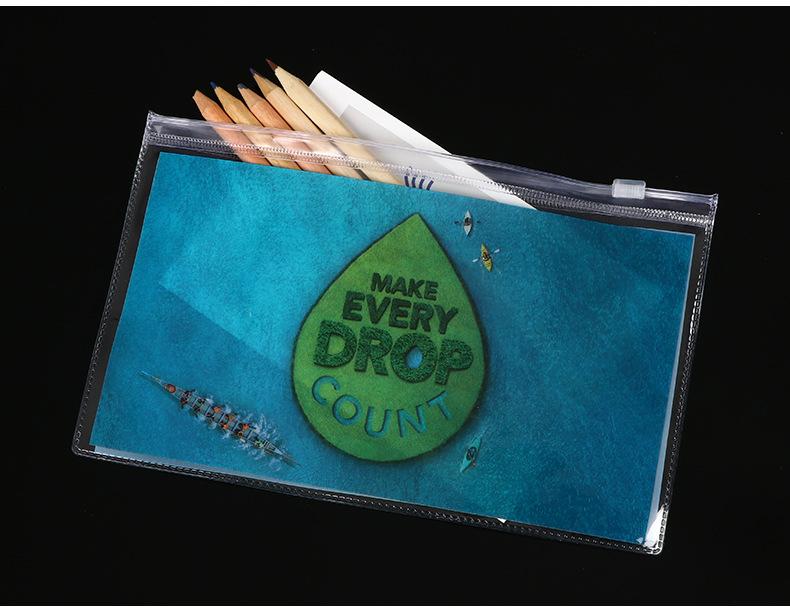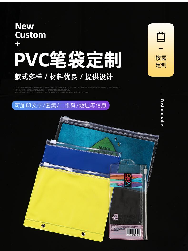 Bolsa de PVC para bolígrafos con cremallera, transparente, con logotipo de dibujos animados, para estudiantes, personalizada, directa de fábrica