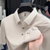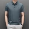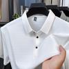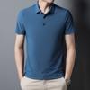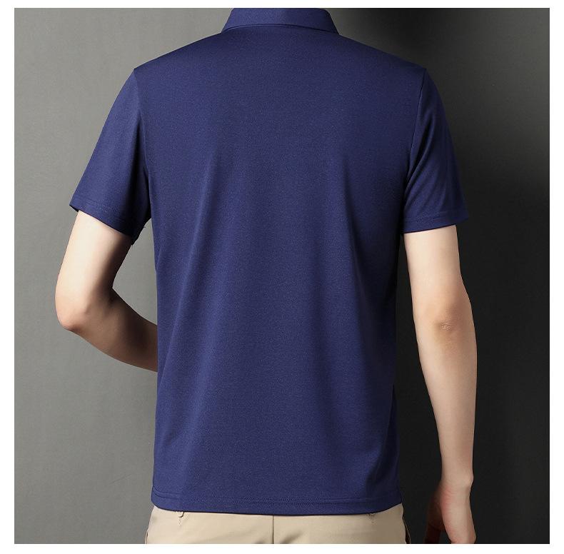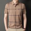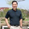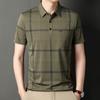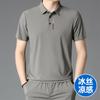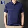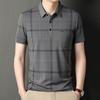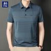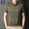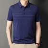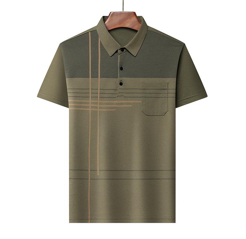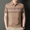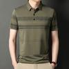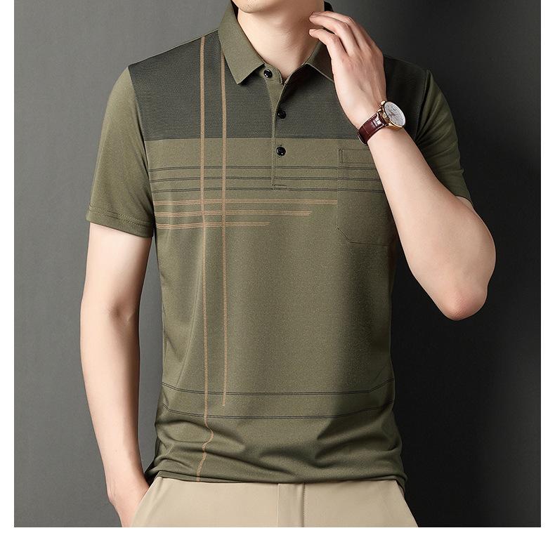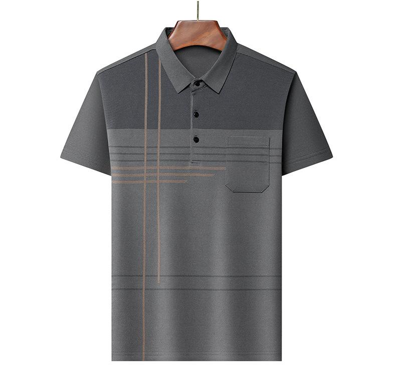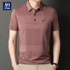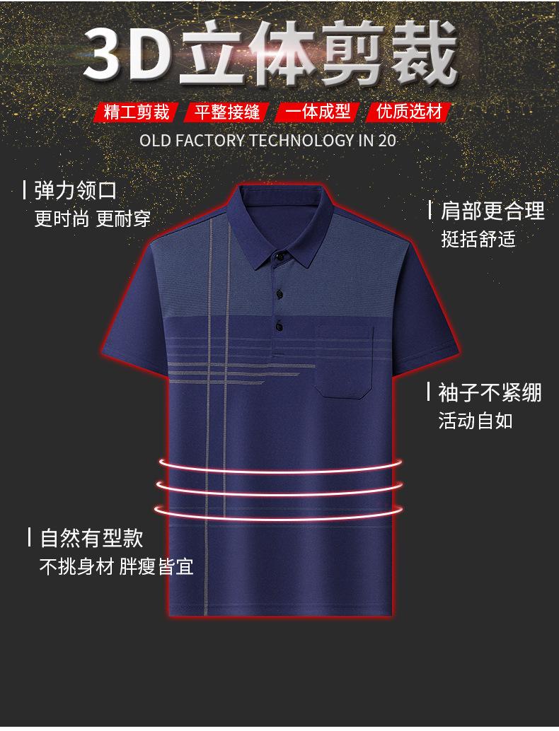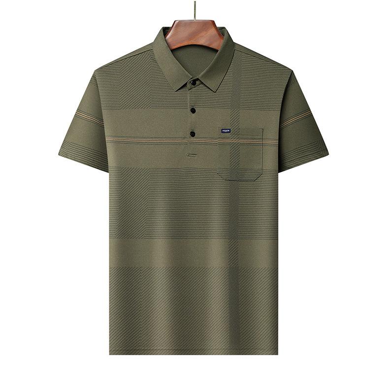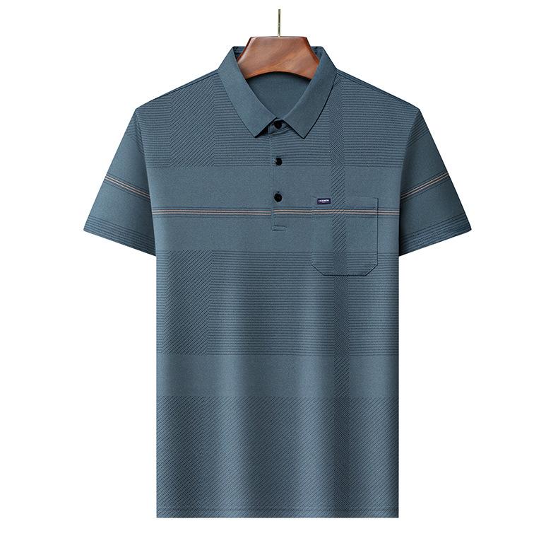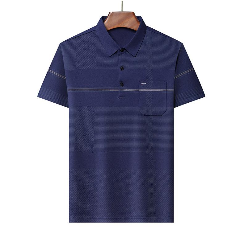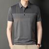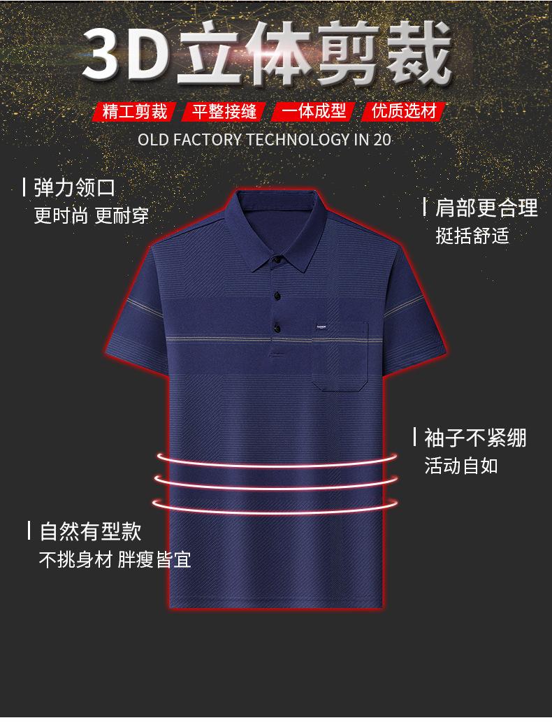 Camiseta de Verano de Solapa de Seda de Hielo de Papá de Manga Corta para Hombre con Bolsillo de Solapa Real Pantalones Camisa Polo de Rayas Finas para Hombres de Mediana Edad y Mayores