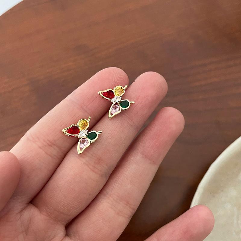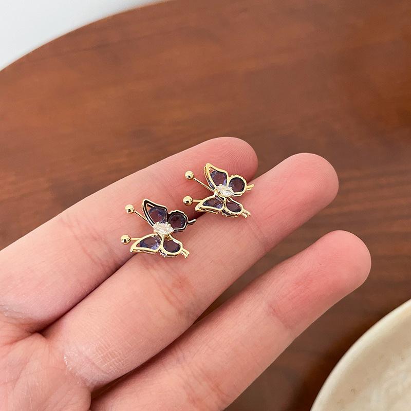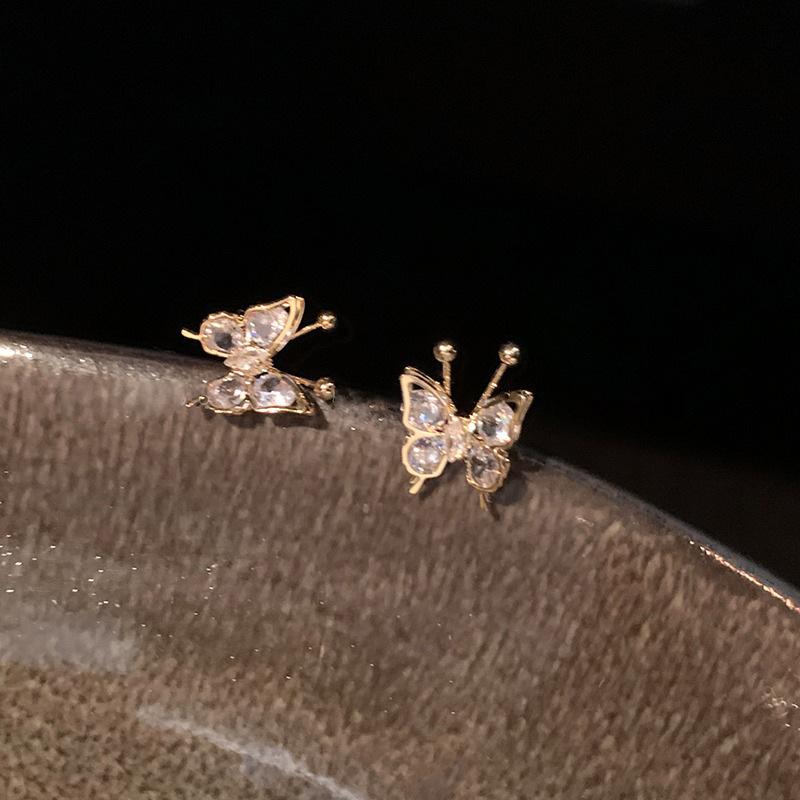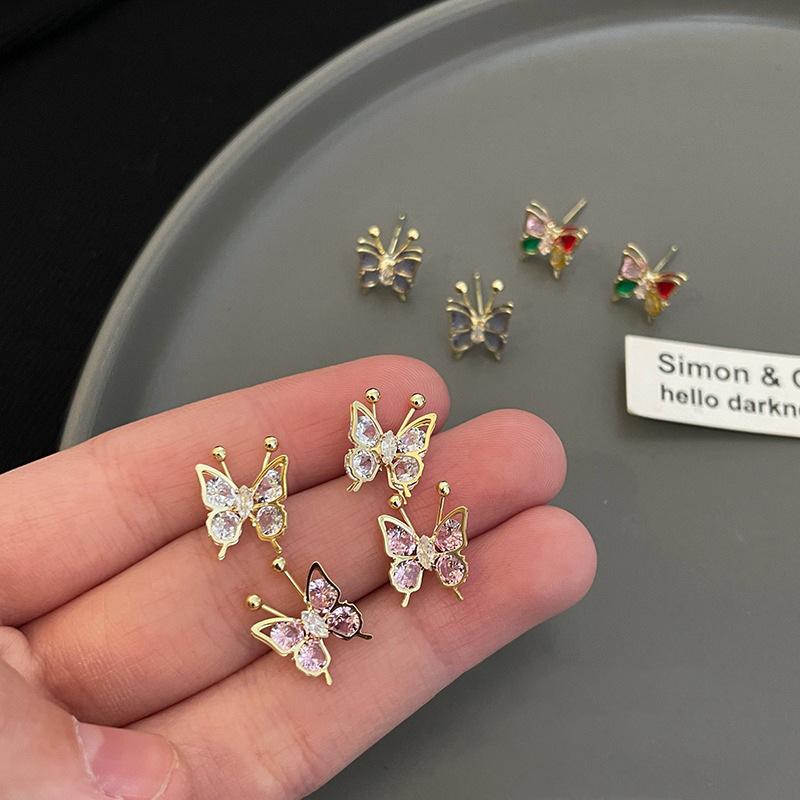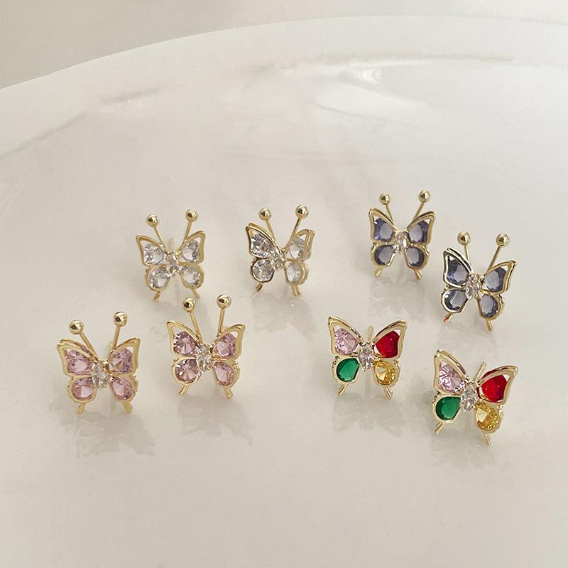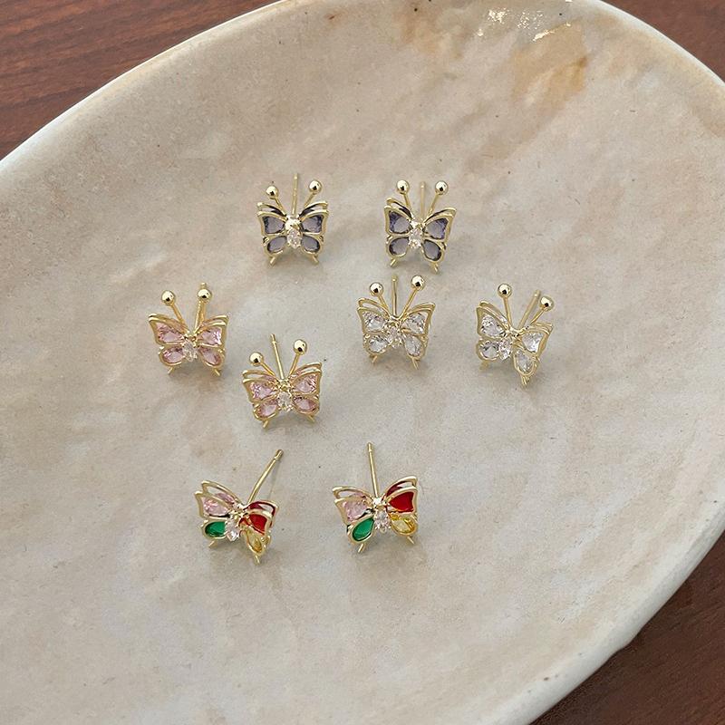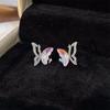 White Zircon Butterfly Stud Earrings, Pink Zircon Butterfly Stud Earrings, Blue Zircon Butterfly Stud Earrings