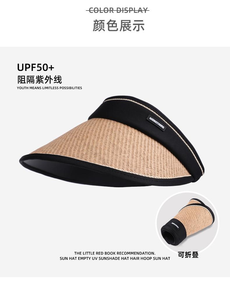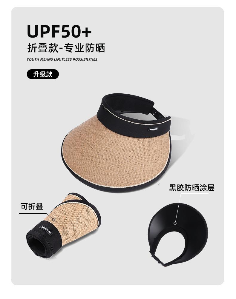 Nuevo sombrero plegable de protección solar para mujer, de verano, con protección UV, para exteriores, de paja negra, para el sol, para montar a caballo.