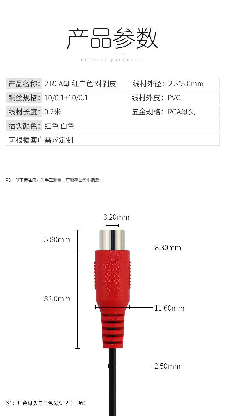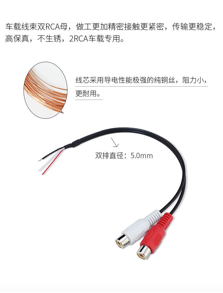 Cable de Audio Divisor Doble RCA para Coche al por Mayor, Conector Hembra RCA Loto 2RCA Rojo y Blanco con Cable de Conexión de Audio Apantallado