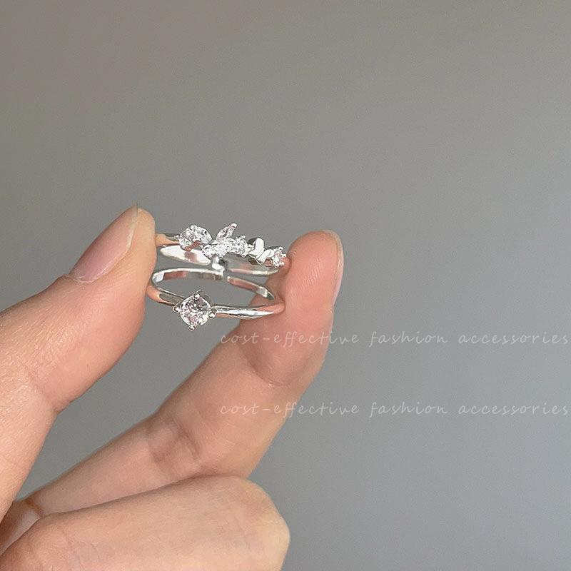 A zircon open ring, Butterfly zircon open ring, Two-Piece Set (2 pieces)