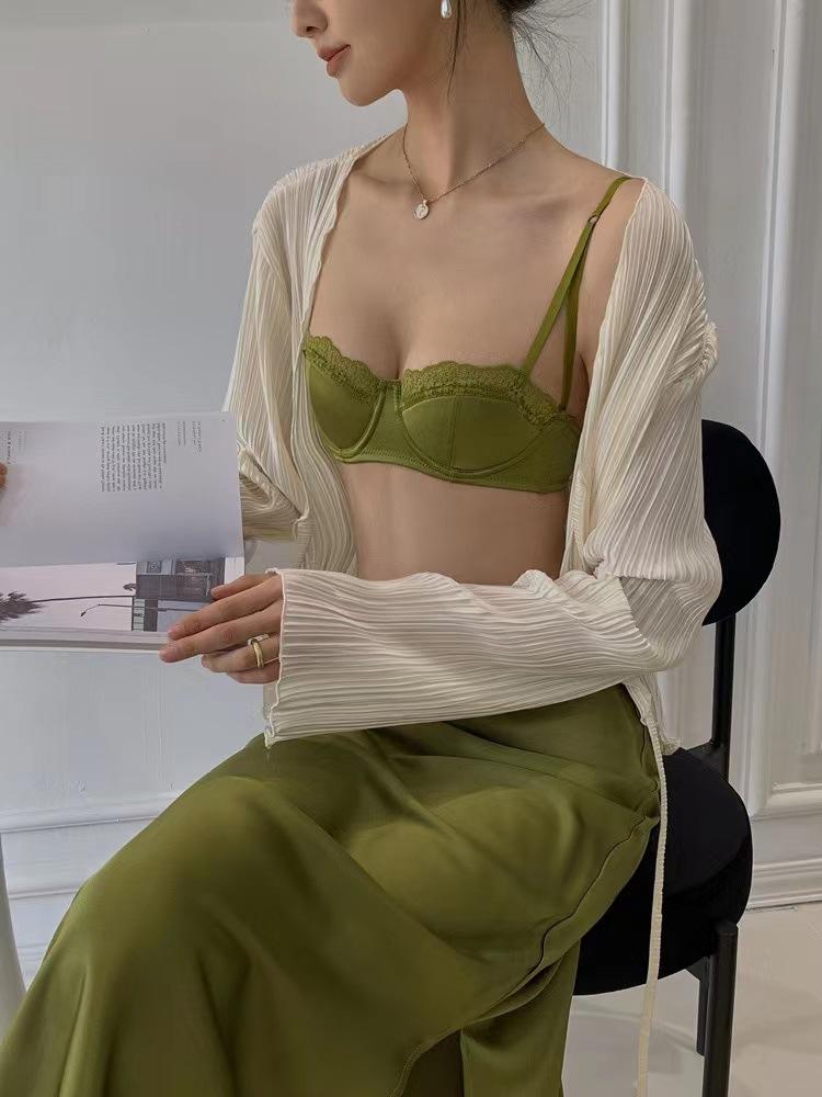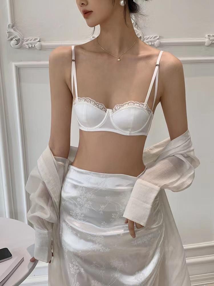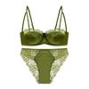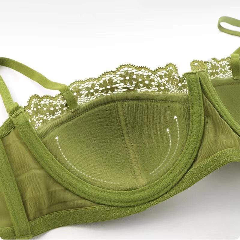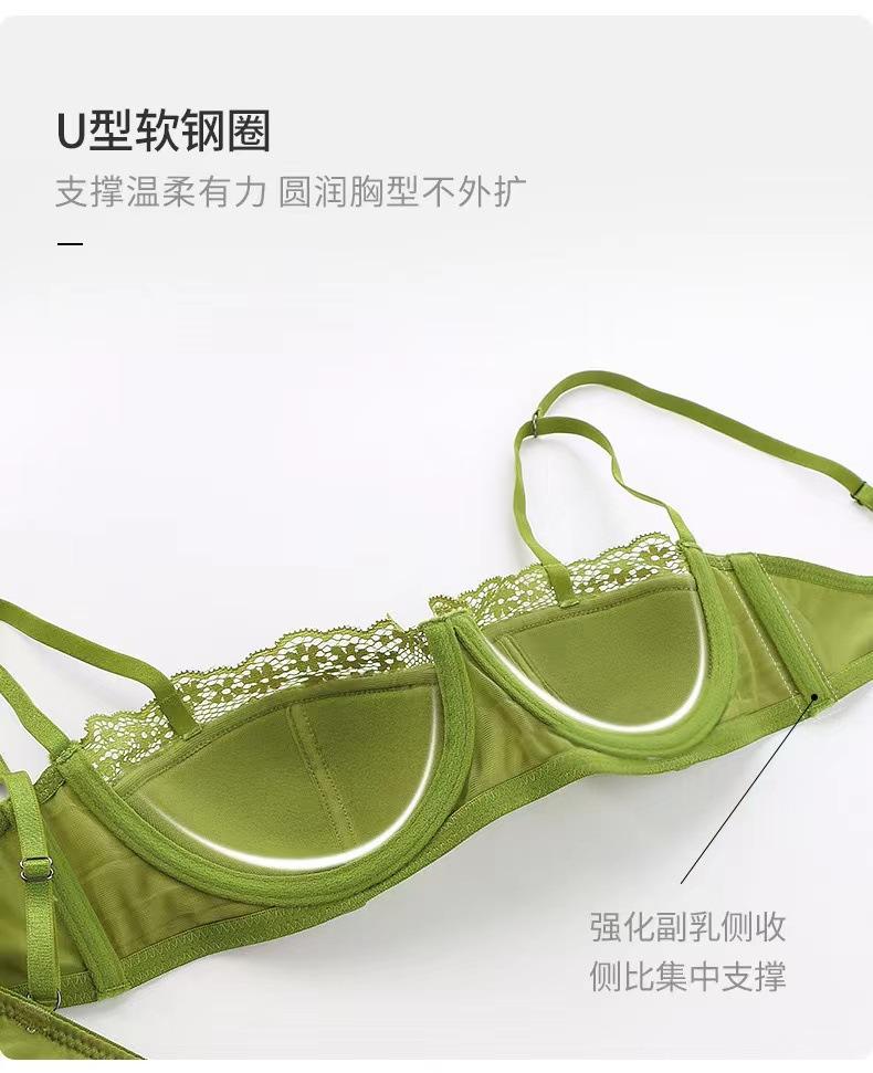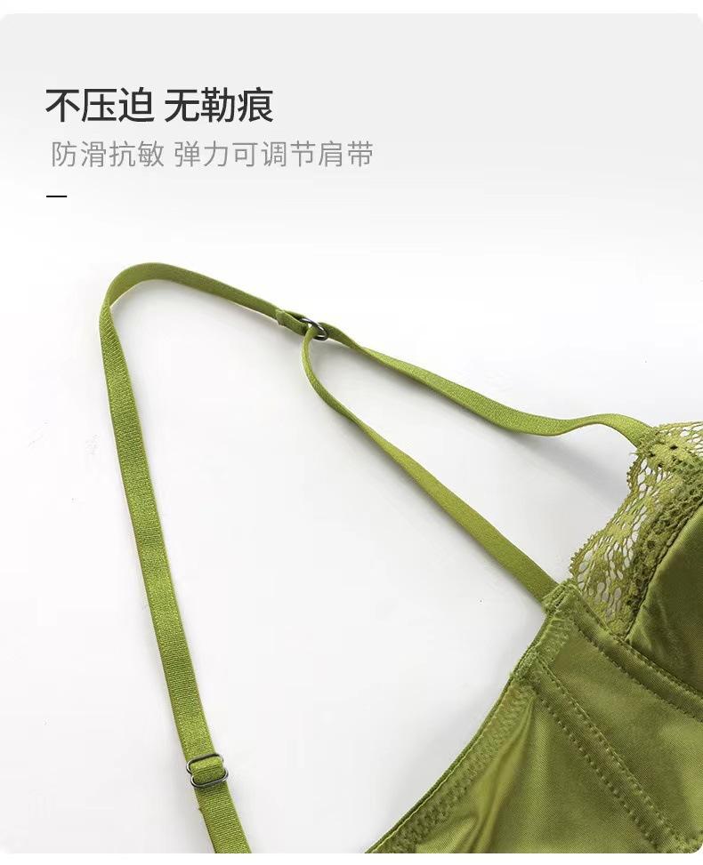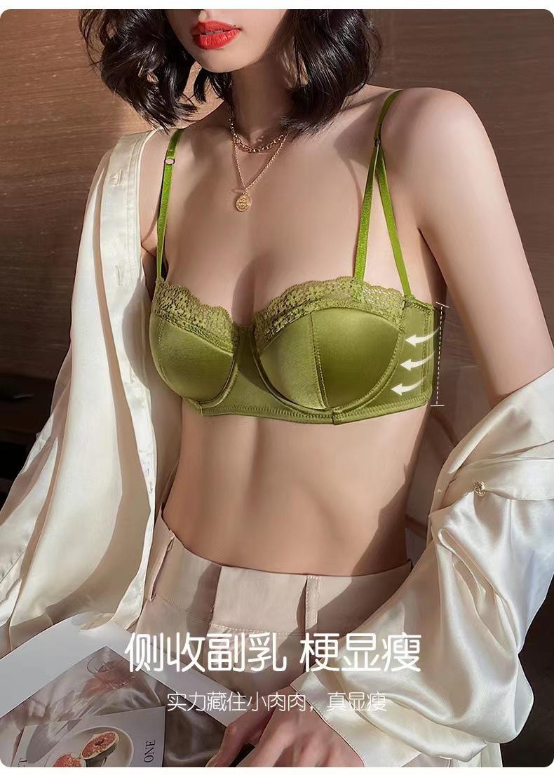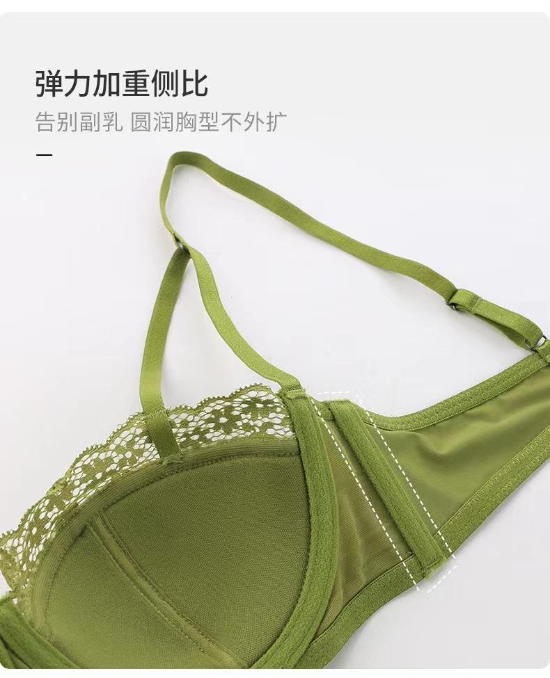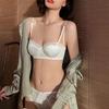 Conjunto de sujetador sexy anticaída de encaje francés personalizado, fino y puro, con pechos grandes y push-up pequeño, para pechos secundarios.