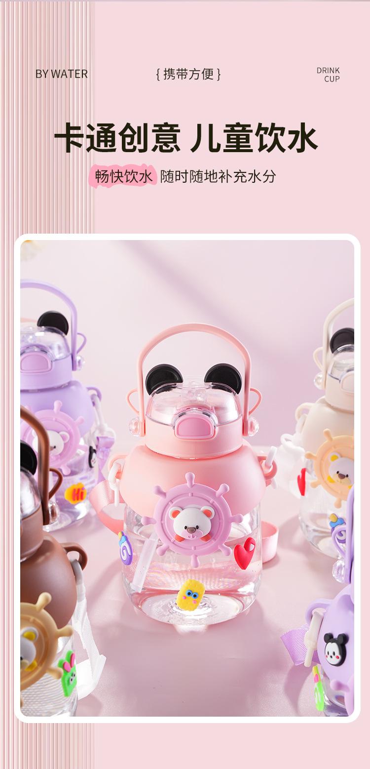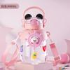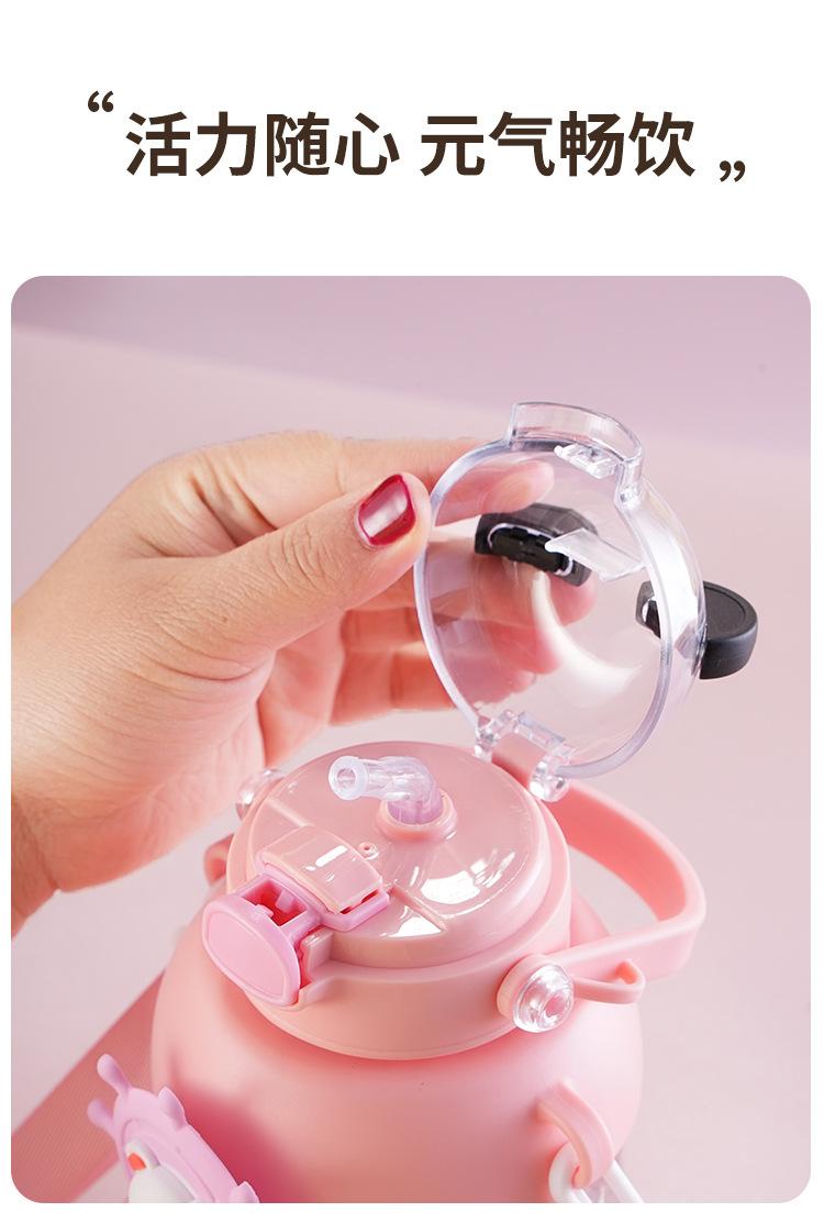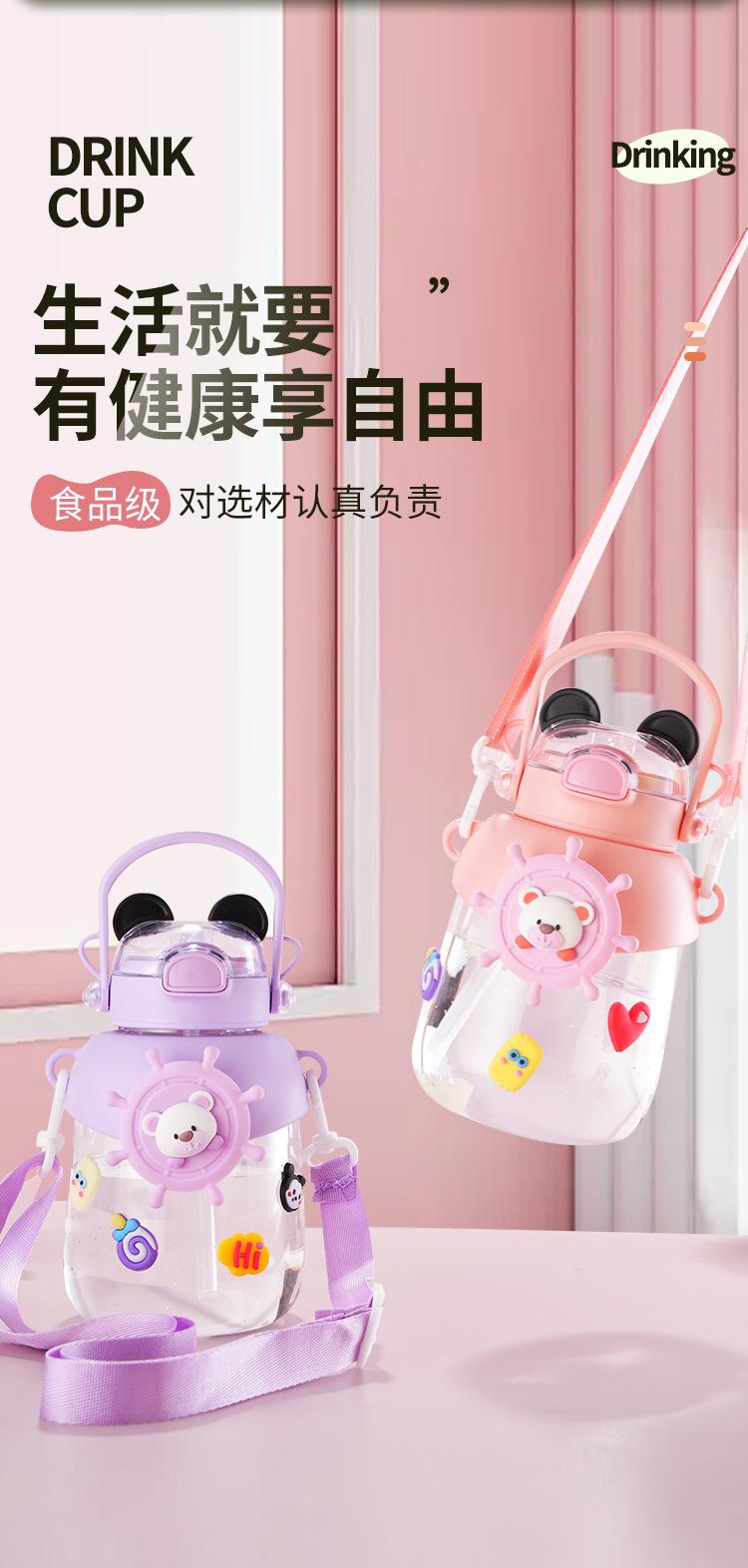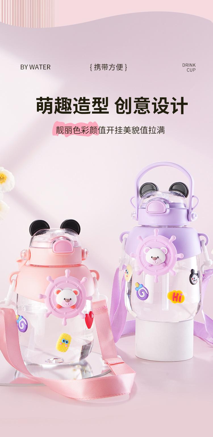 Vaso de plástico con pajita para niños de verano de gran capacidad, vaso de agua portátil para exteriores, vaso con correa para niña linda, tetera