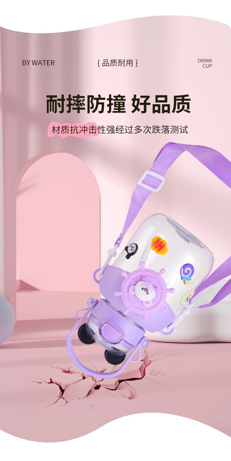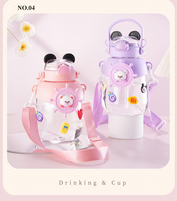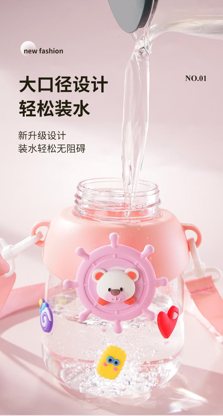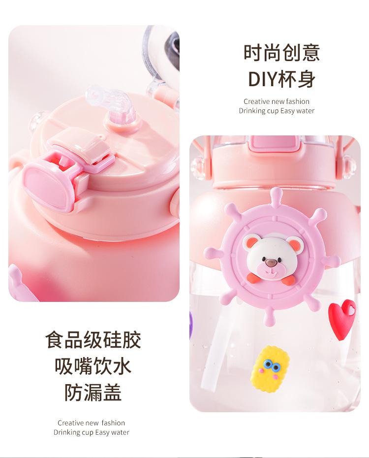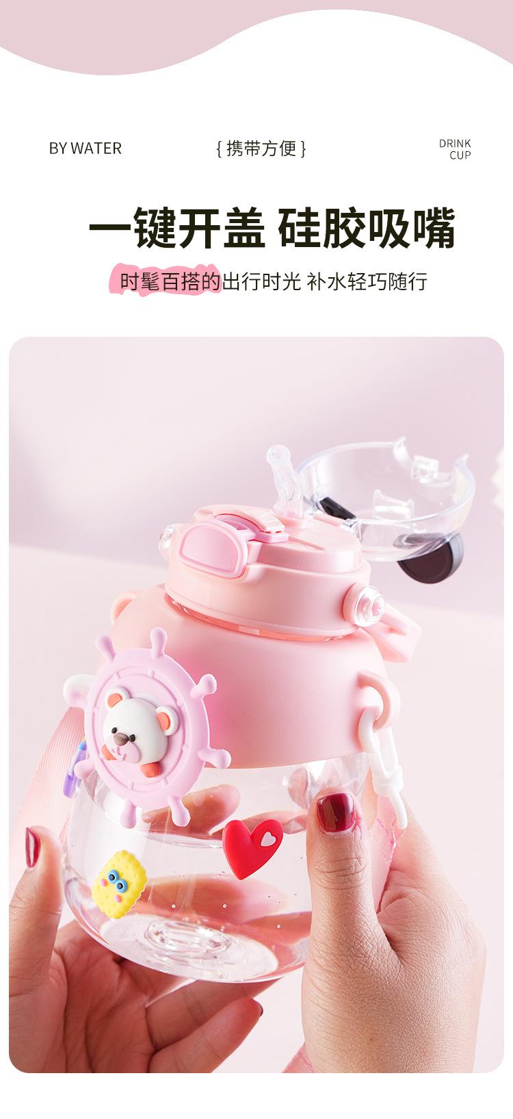 Vaso de plástico con pajita para niños de verano de gran capacidad, vaso de agua portátil para exteriores, vaso con correa para niña linda, tetera