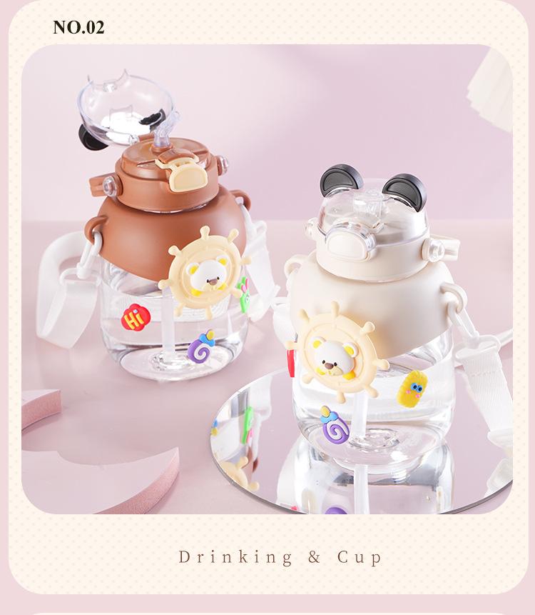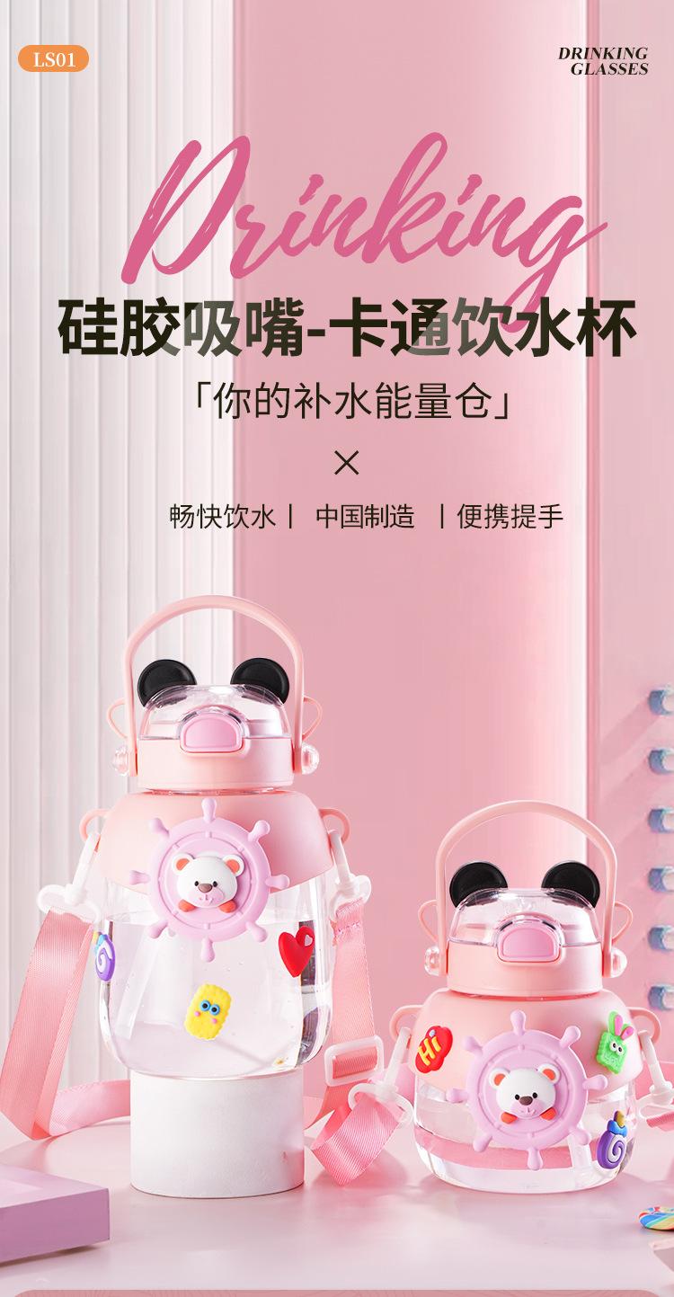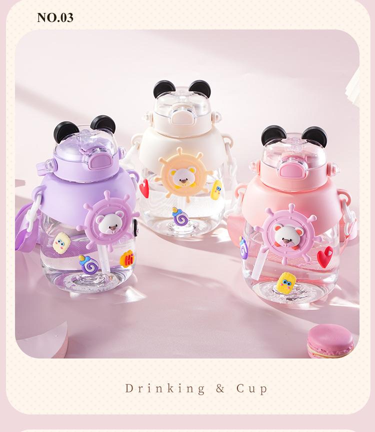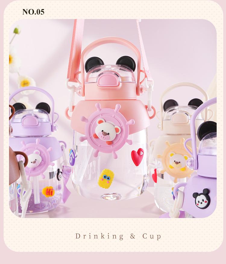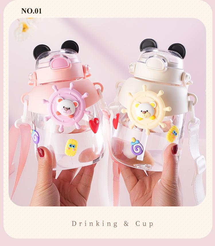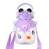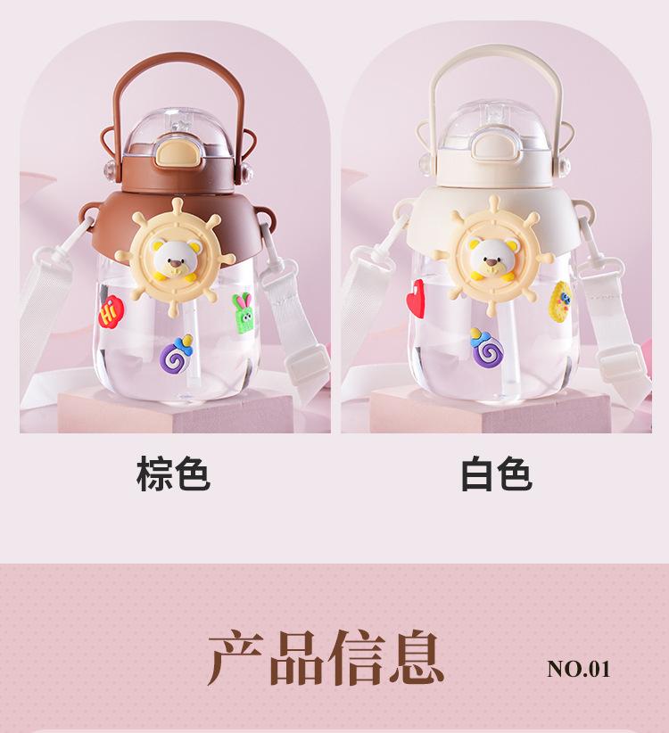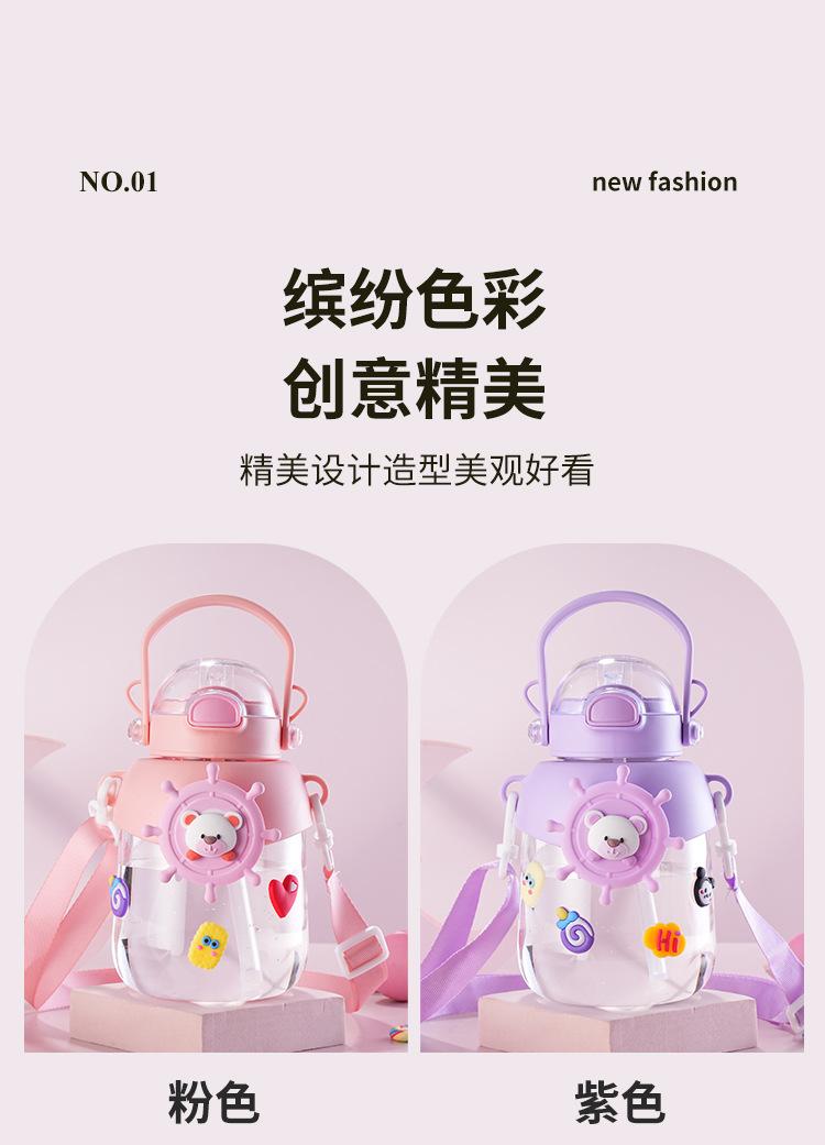 Vaso de plástico con pajita para niños de verano de gran capacidad, vaso de agua portátil para exteriores, vaso con correa para niña linda, tetera