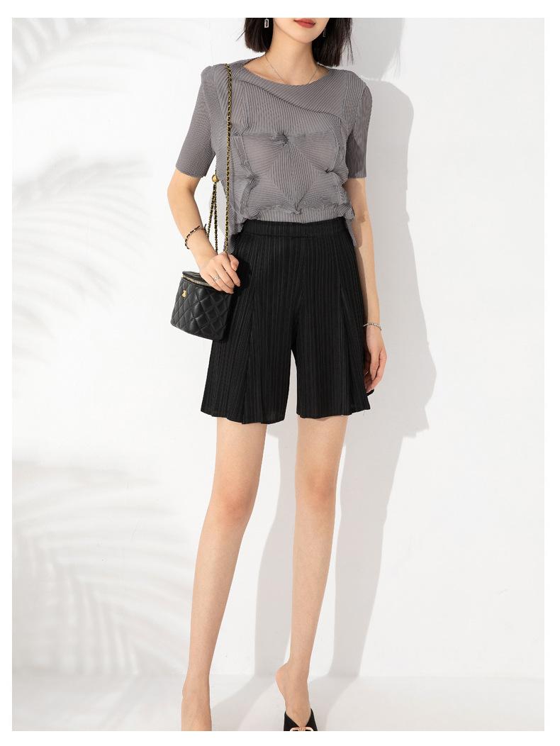 Shorts plisados de cintura alta para mujer verano delgado 2023 Nuevo holgado adelgazante casual rectos de pierna ancha línea A pantalones cortos
