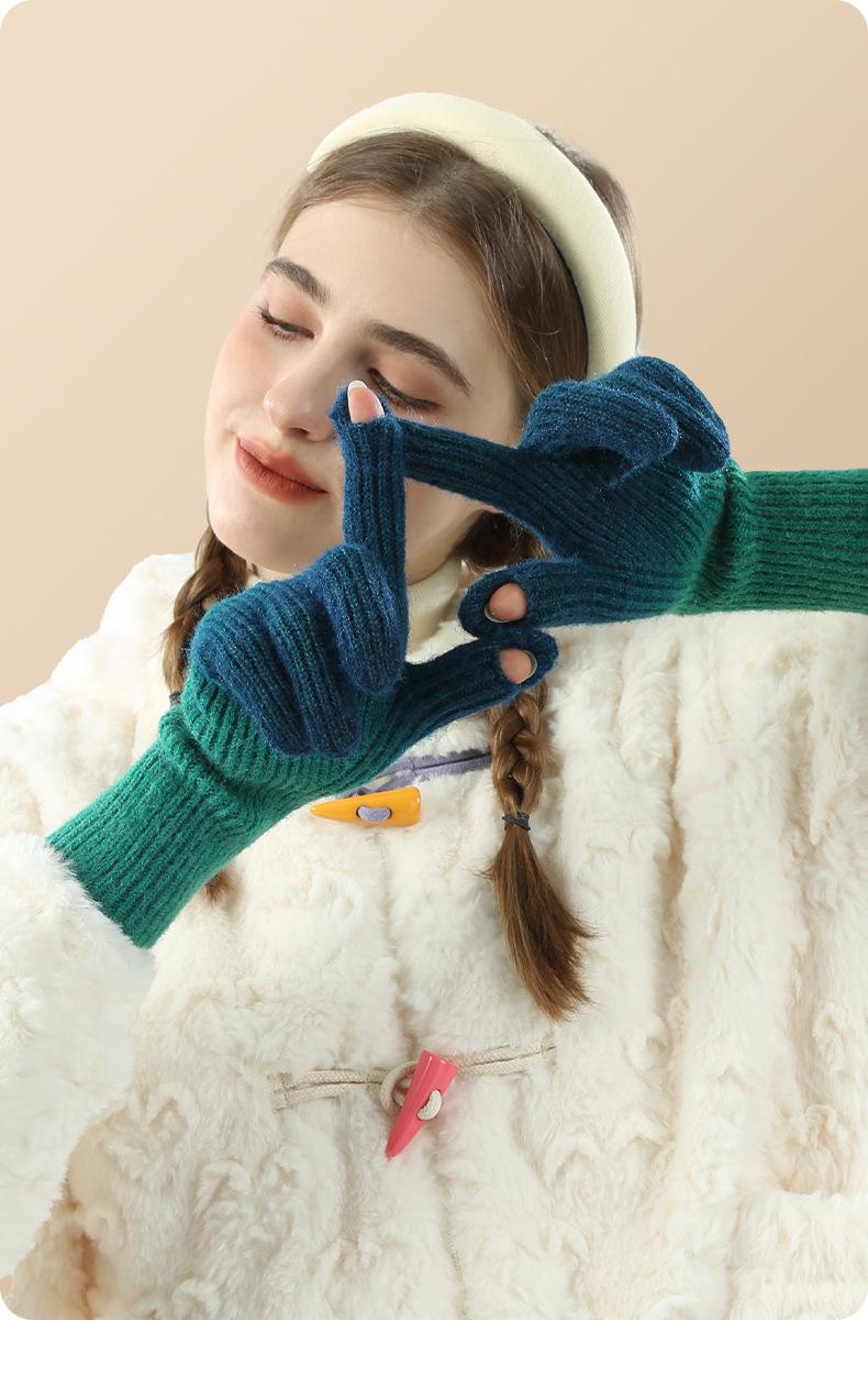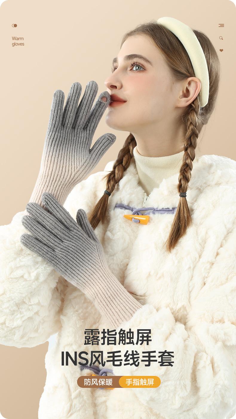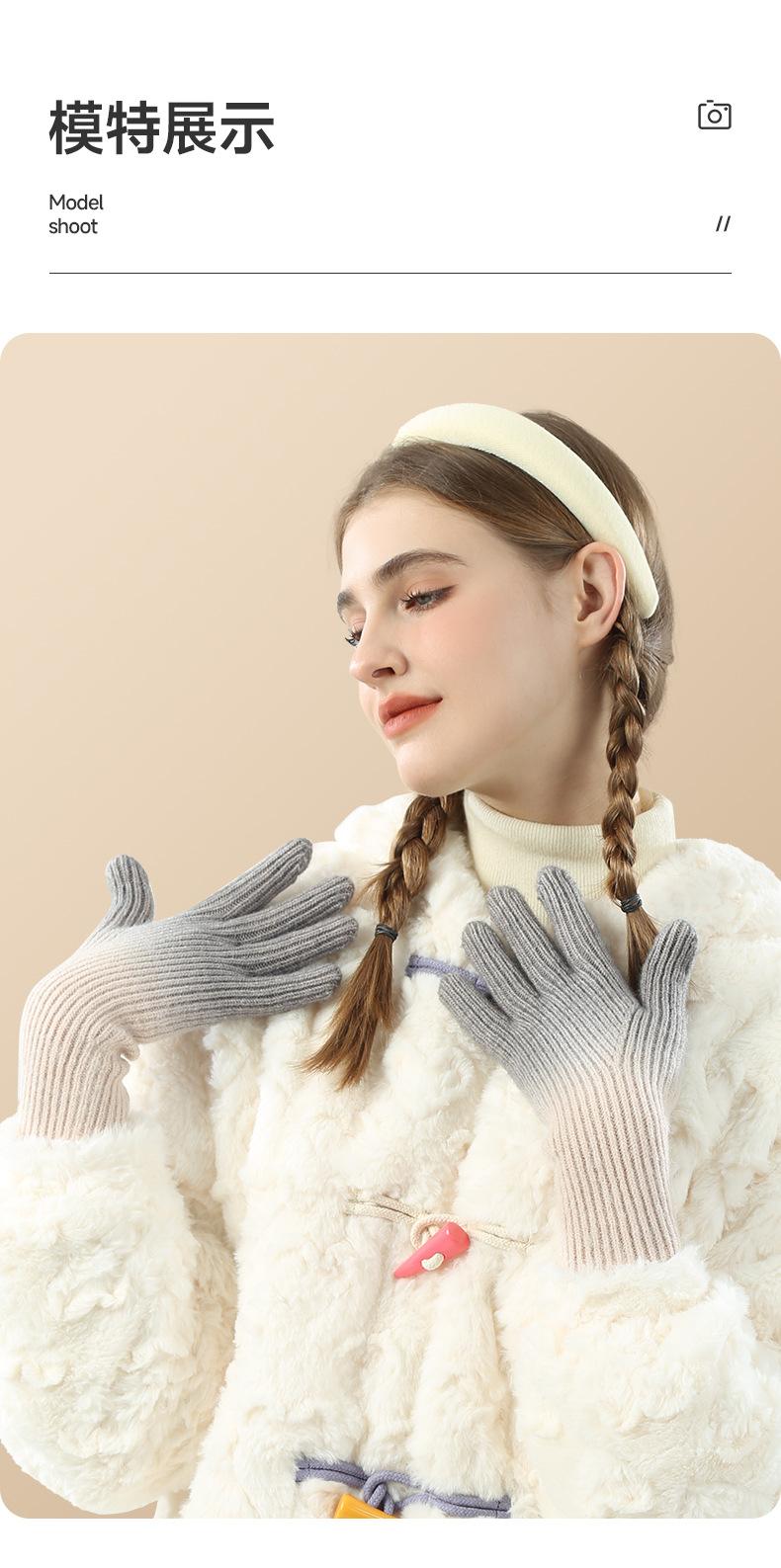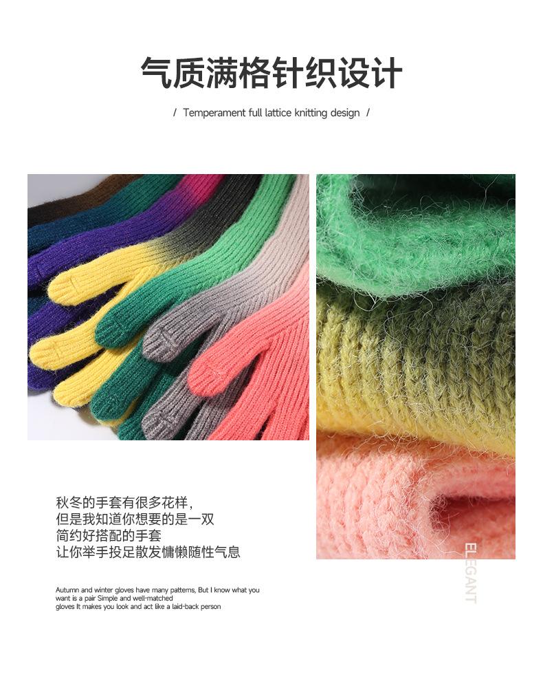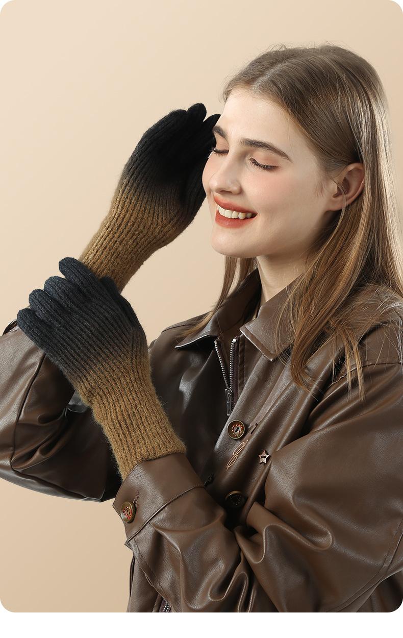 Guantes de Punto al por Mayor para Mujer Invierno Sin Dedos Pantalla Táctil Degradado Guantes de Lana Cálidos y a Prueba de Frío Guantes Gruesos para Ciclismo
