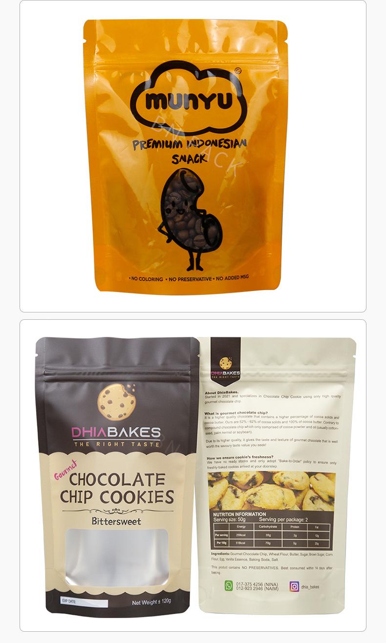 Bolsa de embalaje para dulces, horneado de alimentos PE, venta al por mayor de fábrica, en stock, papel de aluminio, copo de nieve, pastel, seca, autosellable, con cremallera, bolsa autoestable