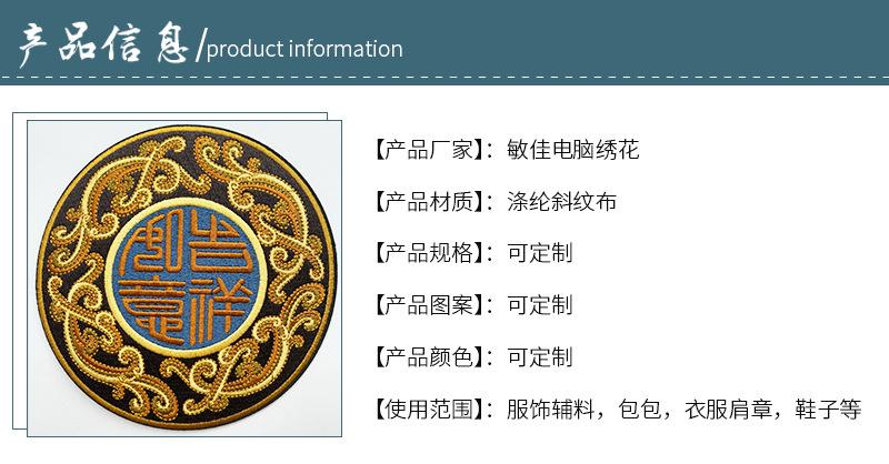 Parche de bordado computarizado de plástico tridimensional estilo chino sello bordado étnico insignia bordada muestra de dibujo diseño de bordado