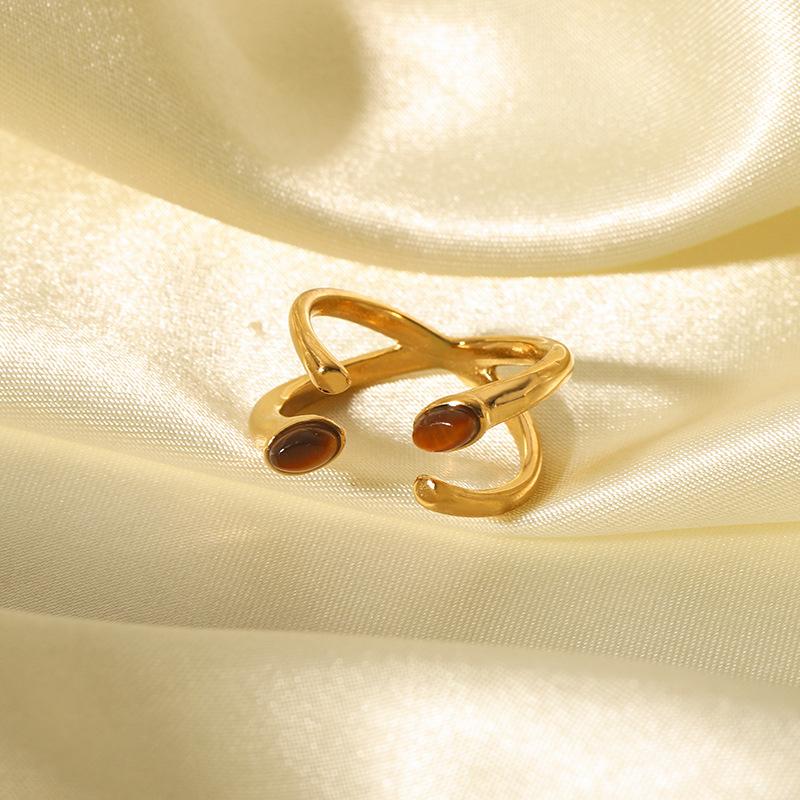 Anillo Europeo y Americano Ins Francés Retro Acero Inoxidable Chapado en Oro de 18K Anillo de Moda de Lujo Accesible Nicho Joyería de Acero Titanio al por Mayor