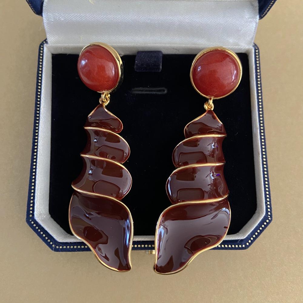 Pendientes estilo Maillard exagerados retro franceses con gota de aceite de color, pendientes de piedra de ágata, pendientes de pasador de plata de moda con cristal