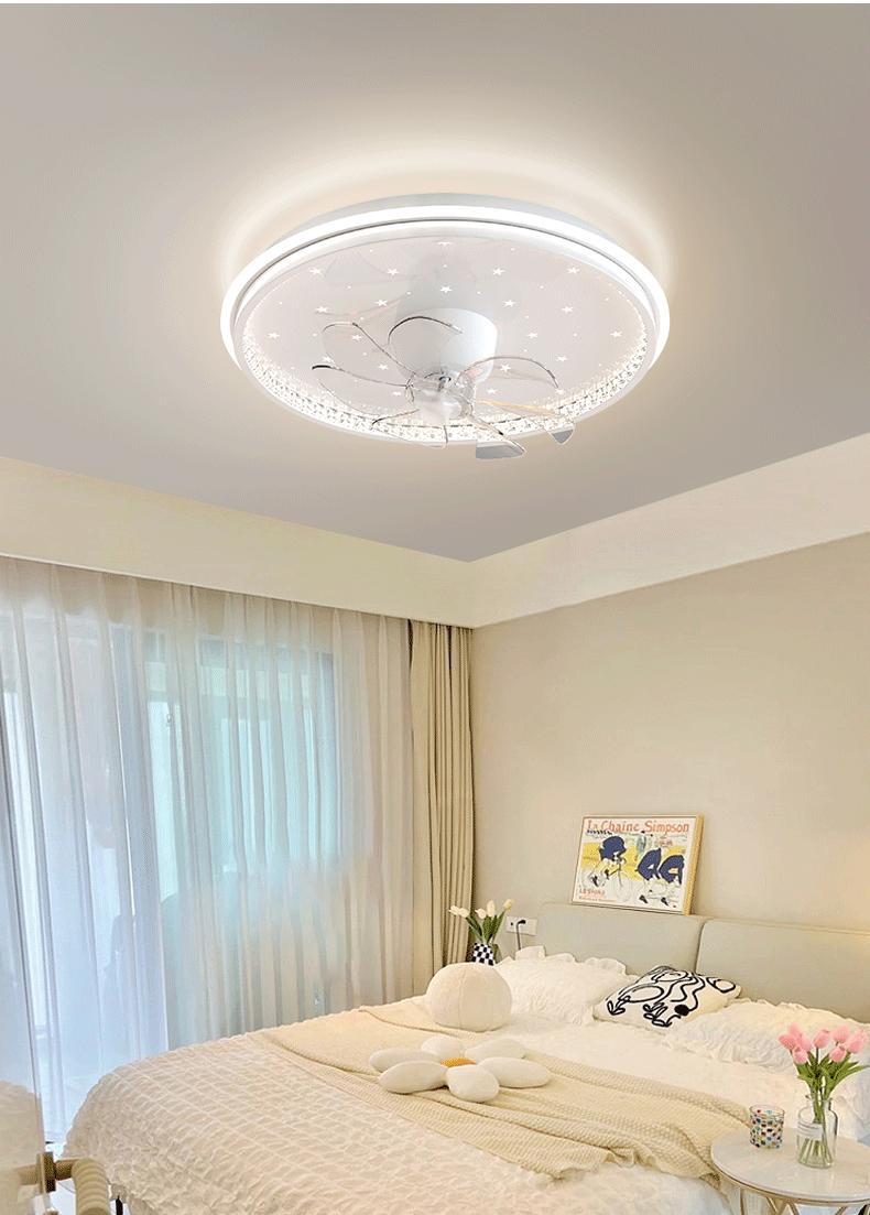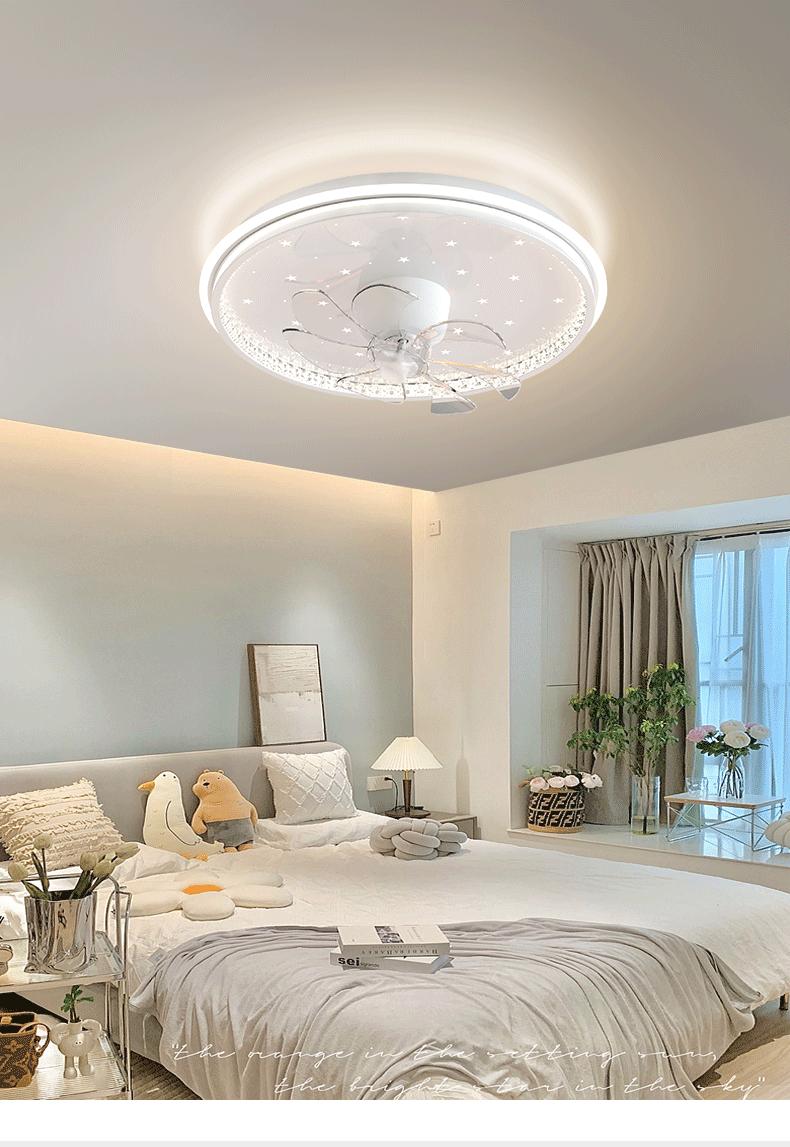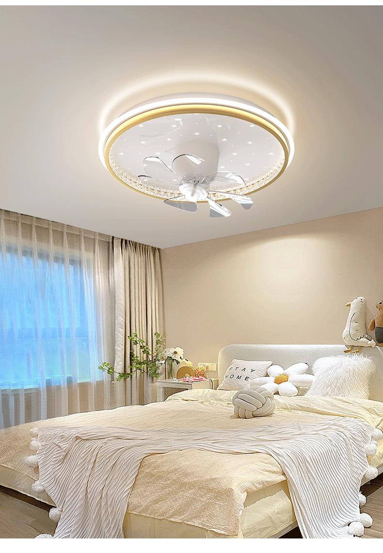 Lámpara de techo para dormitorio, de lujo, sencilla, redonda, con ventilador integrado, estilo nórdico, cálida y romántica, LED para habitación