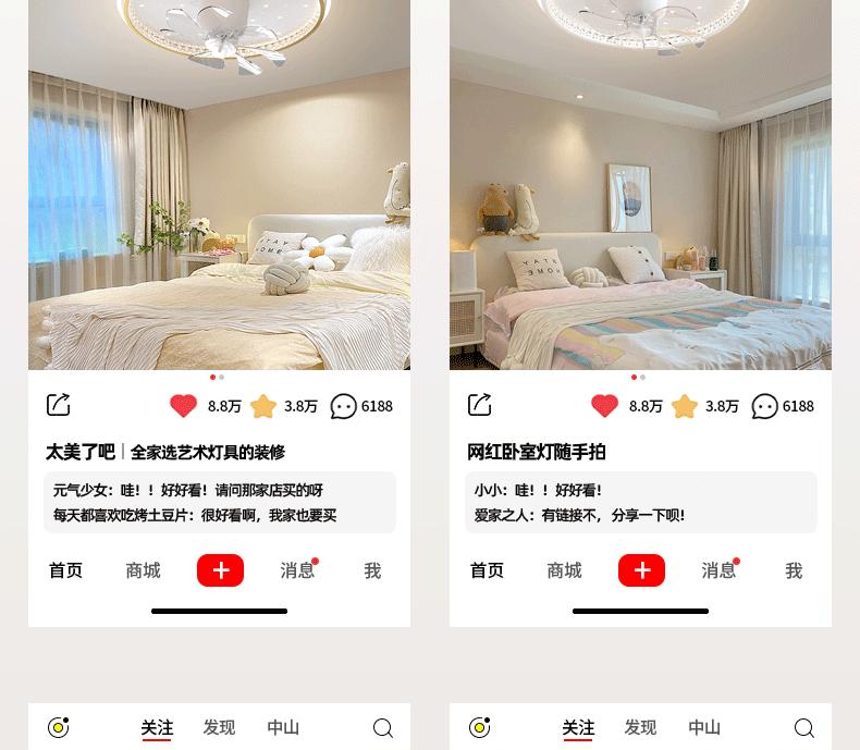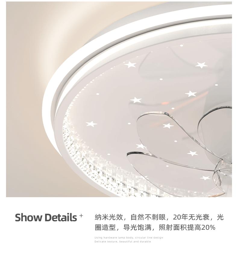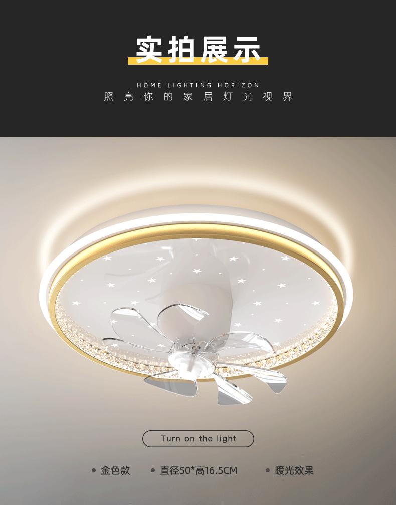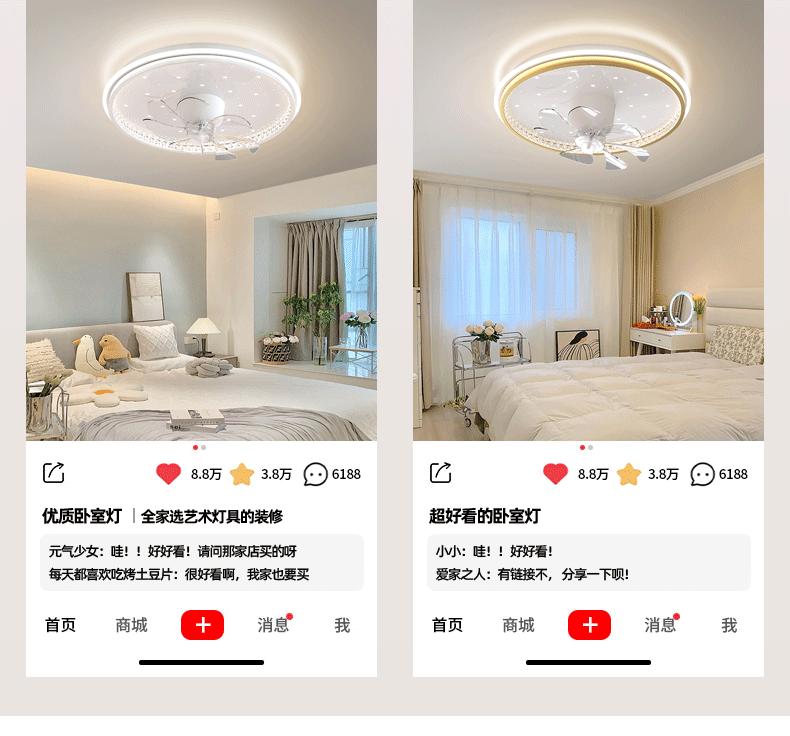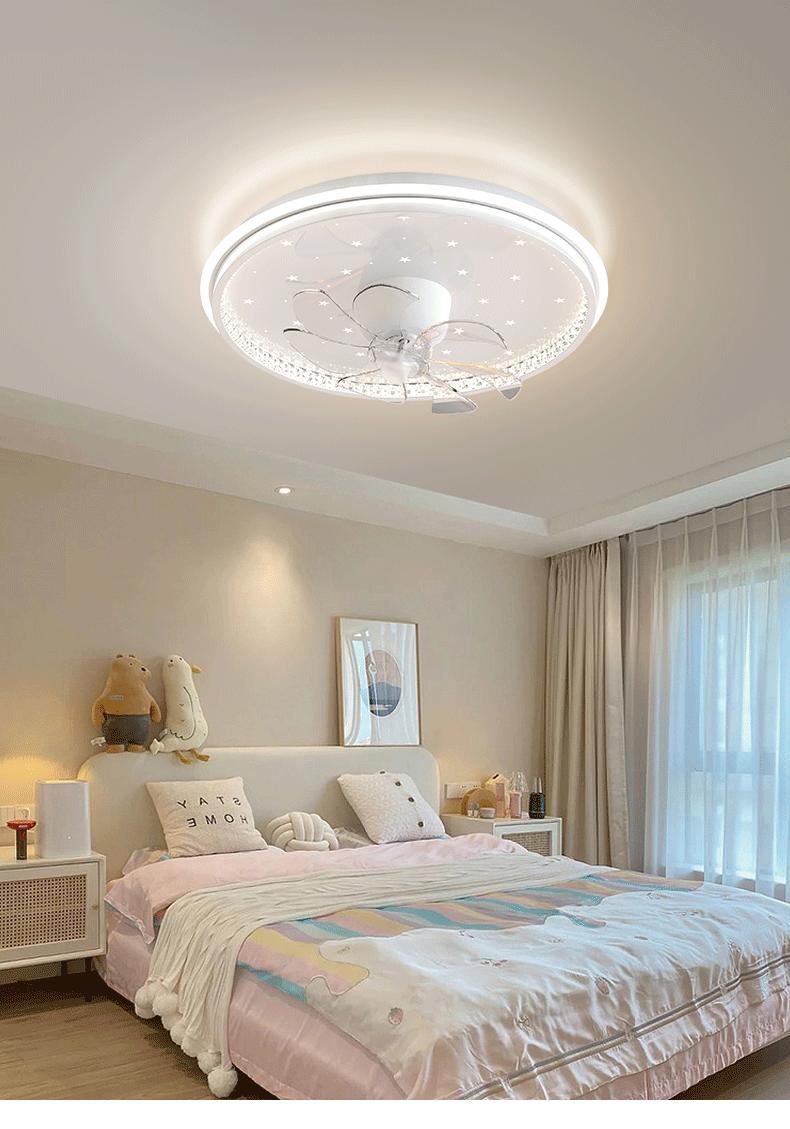 Lámpara de techo para dormitorio, de lujo, sencilla, redonda, con ventilador integrado, estilo nórdico, cálida y romántica, LED para habitación