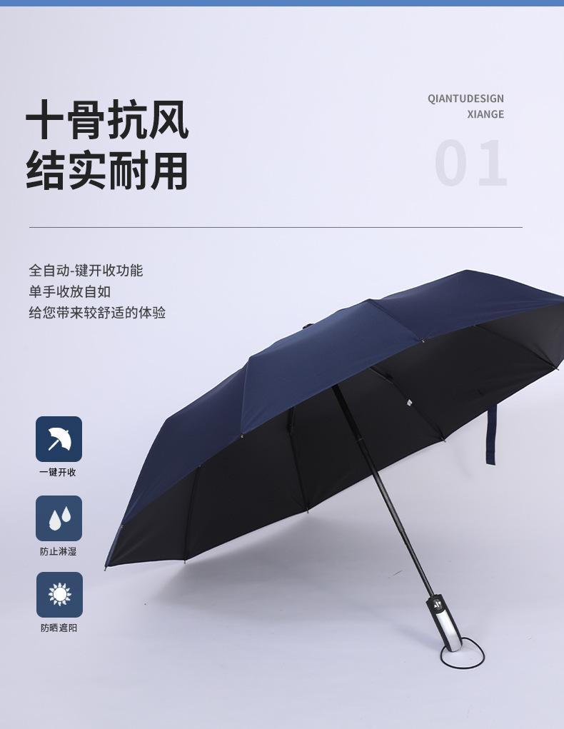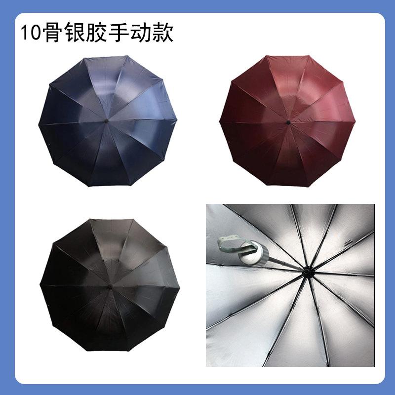 Compra Paraguas automático de diez hojas para lluvia, con pegamento negro y protección solar, paraguas plegable de tres hojas con impresión de logotipo publicitario. al por mayor en Joom.pro