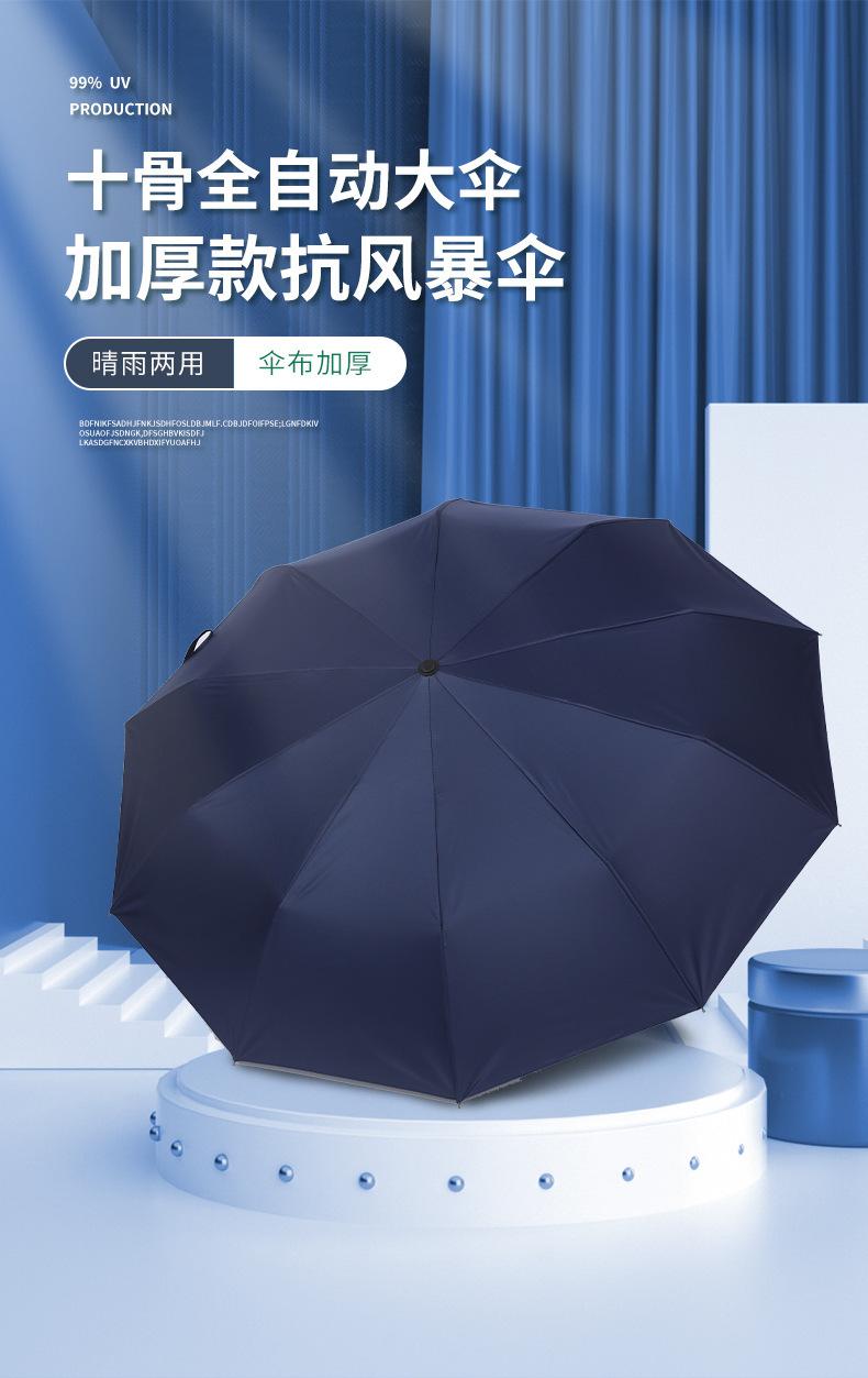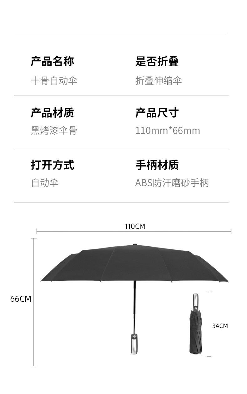 Paraguas automático de diez hojas para lluvia, con pegamento negro y protección solar, paraguas plegable de tres hojas con impresión de logotipo publicitario.