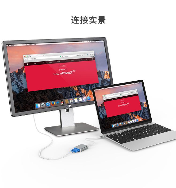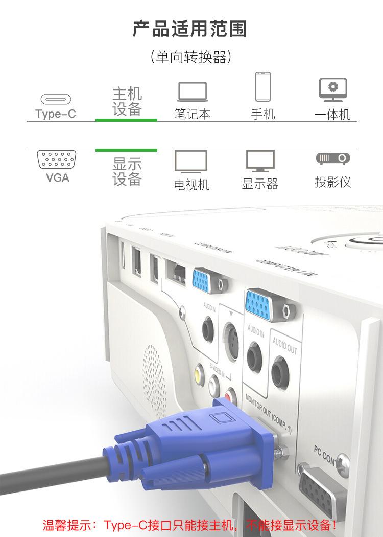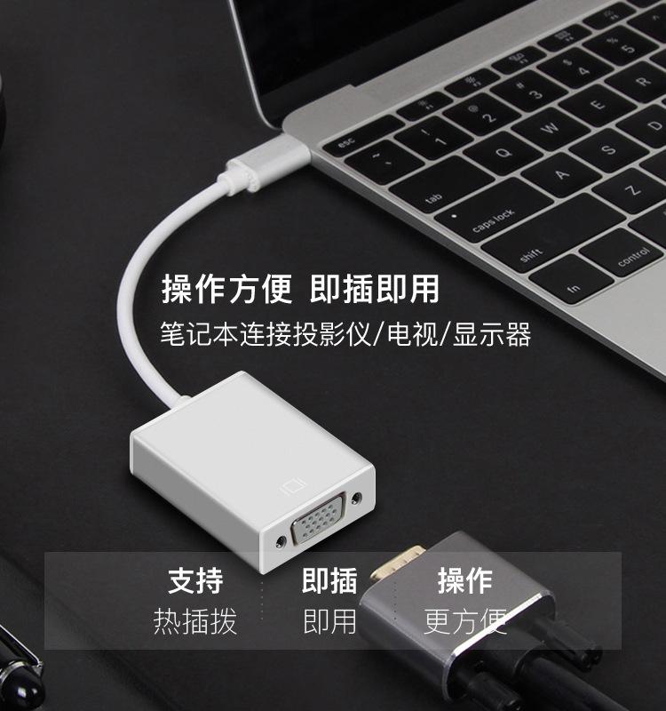 Cable de datos tipo C a VGA HD, cable USB 3.1 a monitor VGA para computadora portátil