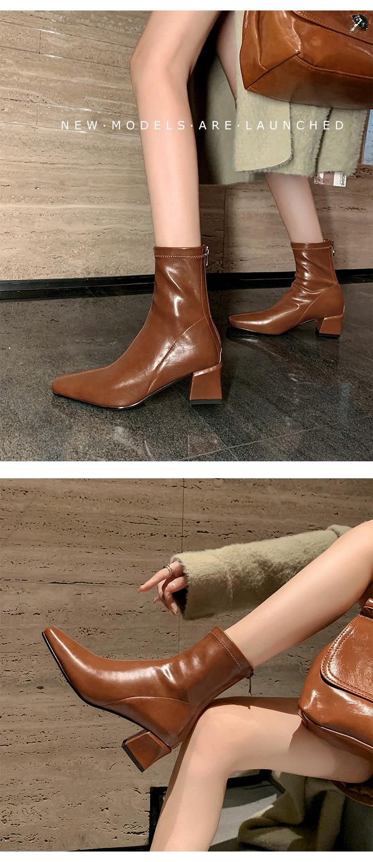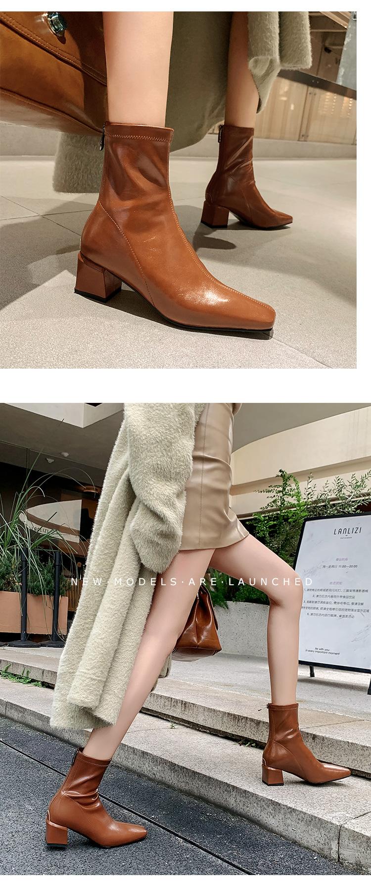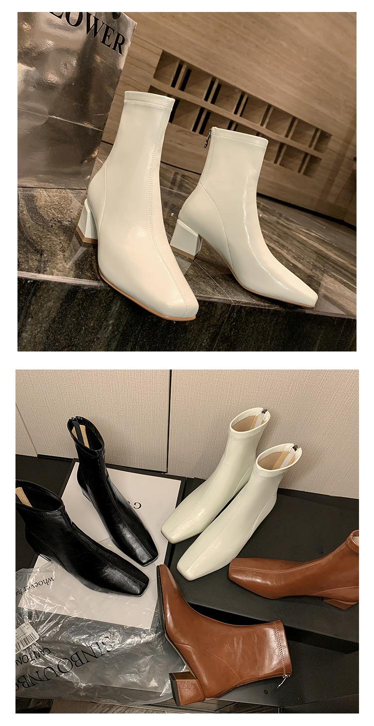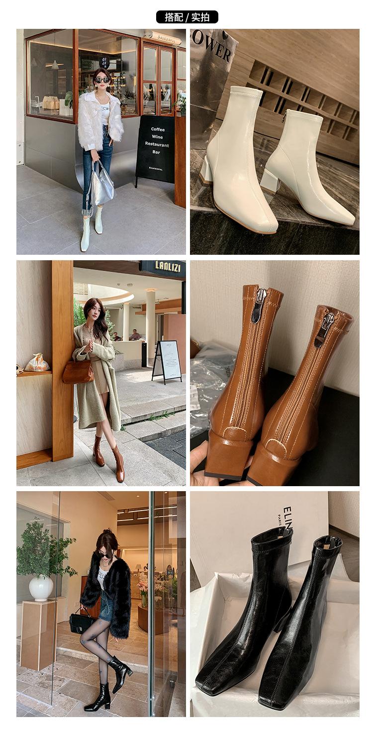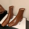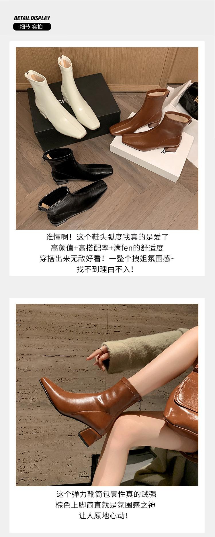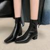 2024 Botines Versátiles de Tacón Grueso Punta Cuadrada Botas Ajustadas Botas con Cremallera Trasera Zapatos de Otoño e Invierno para Mujer Botas Martin Resistentes al Desgaste Antideslizantes