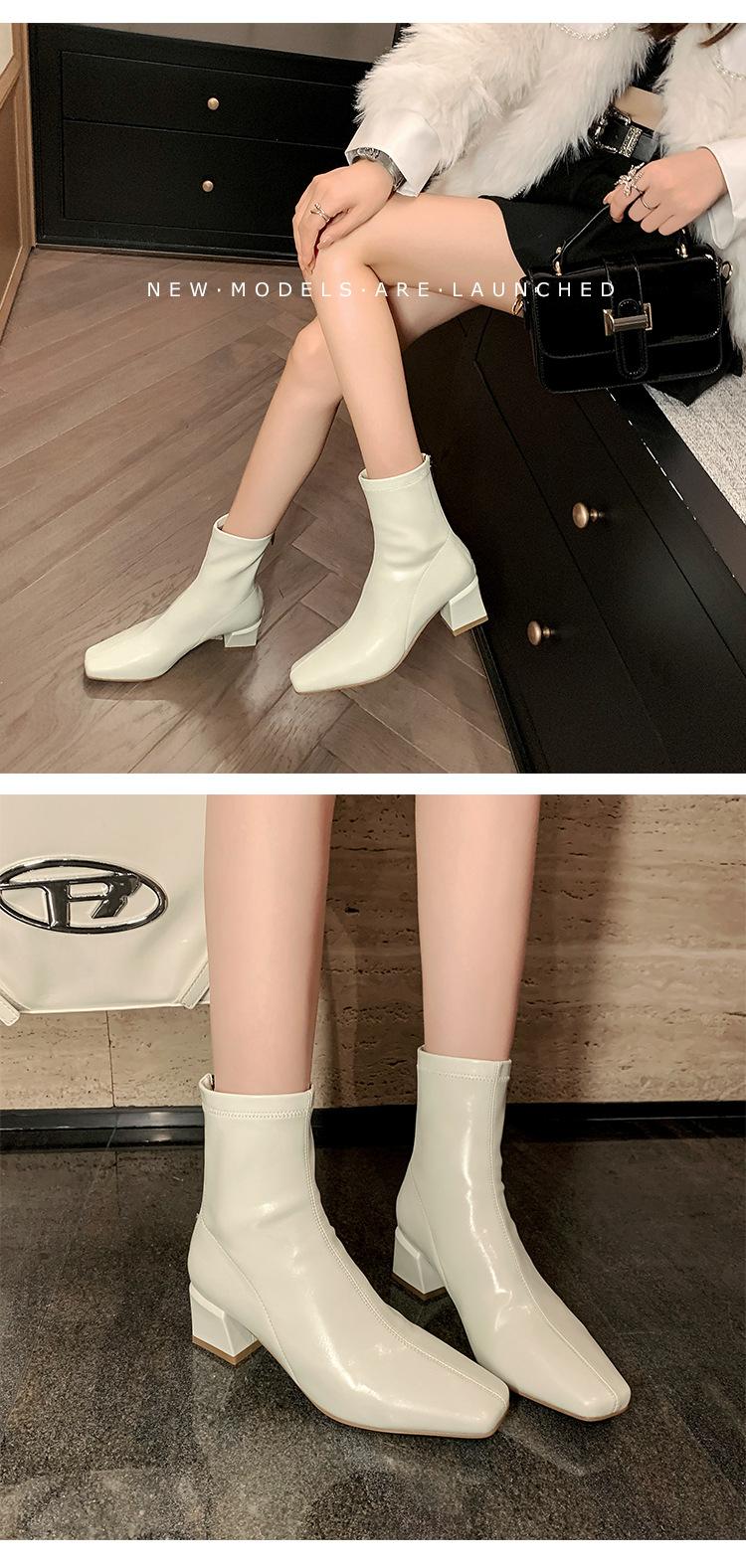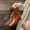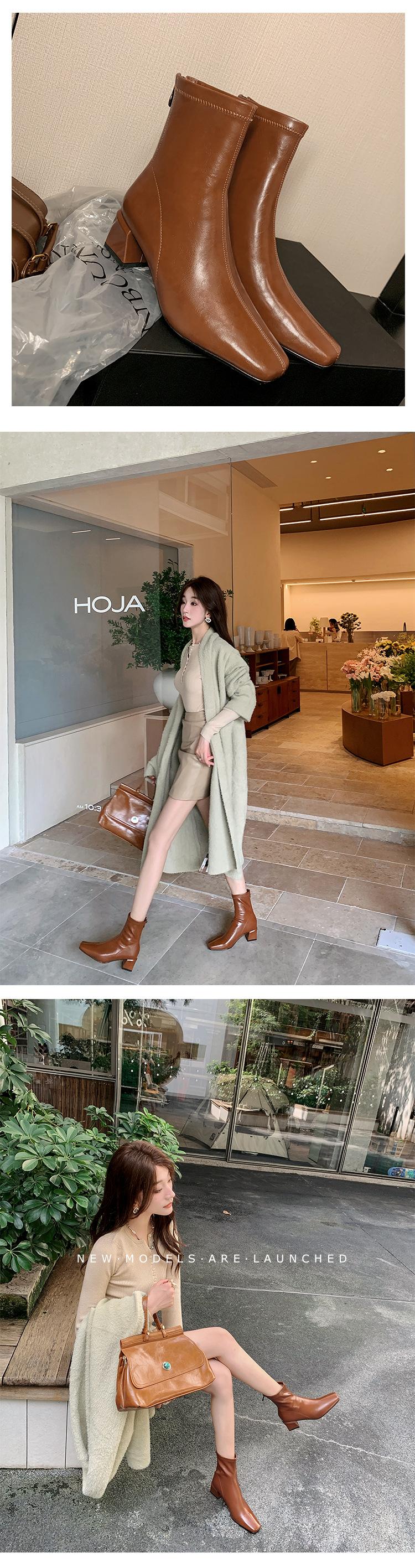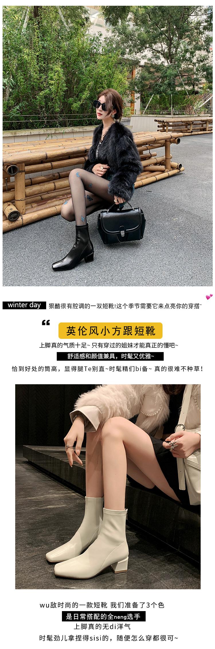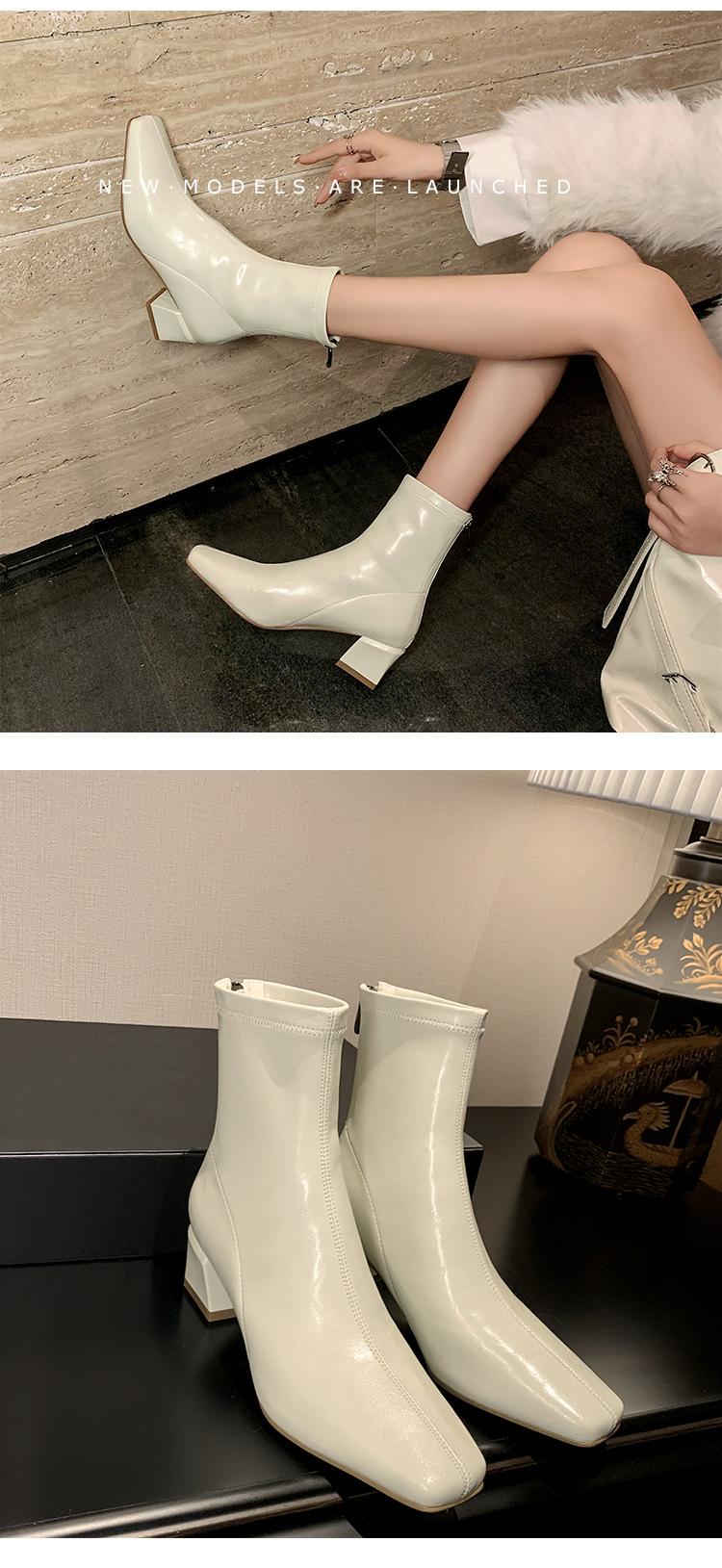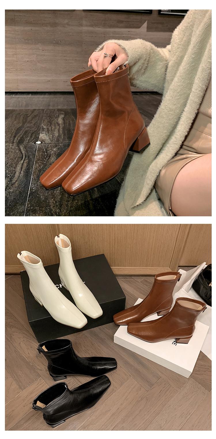 2024 Botines Versátiles de Tacón Grueso Punta Cuadrada Botas Ajustadas Botas con Cremallera Trasera Zapatos de Otoño e Invierno para Mujer Botas Martin Resistentes al Desgaste Antideslizantes