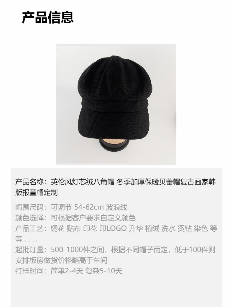 Gorra Octagonal de Pana Estilo Británico, Boina Gruesa y Cálida de Invierno, Retro Pintor Estilo Coreano Gorra de Repartidor Personalización