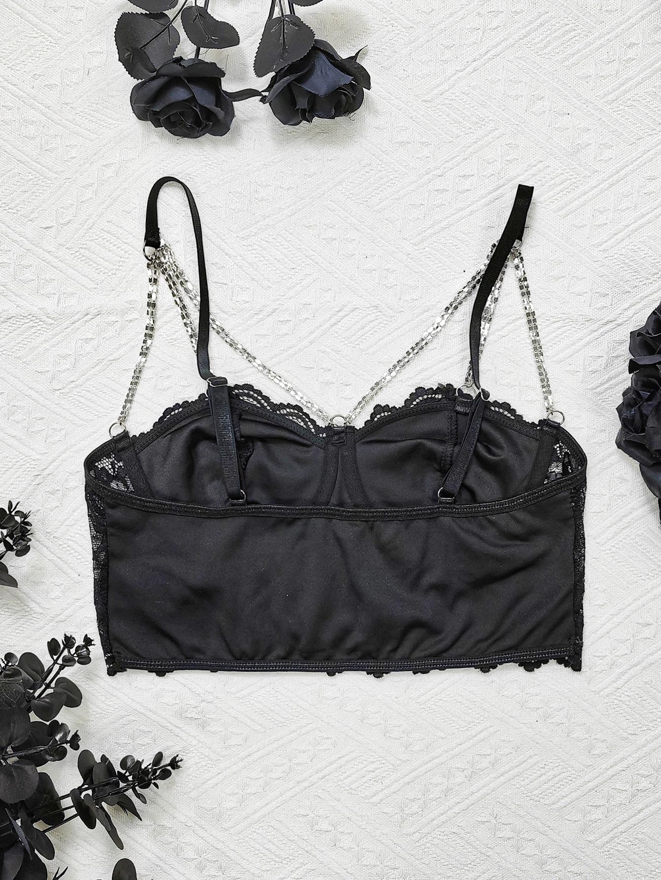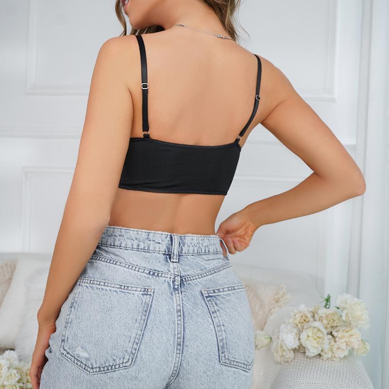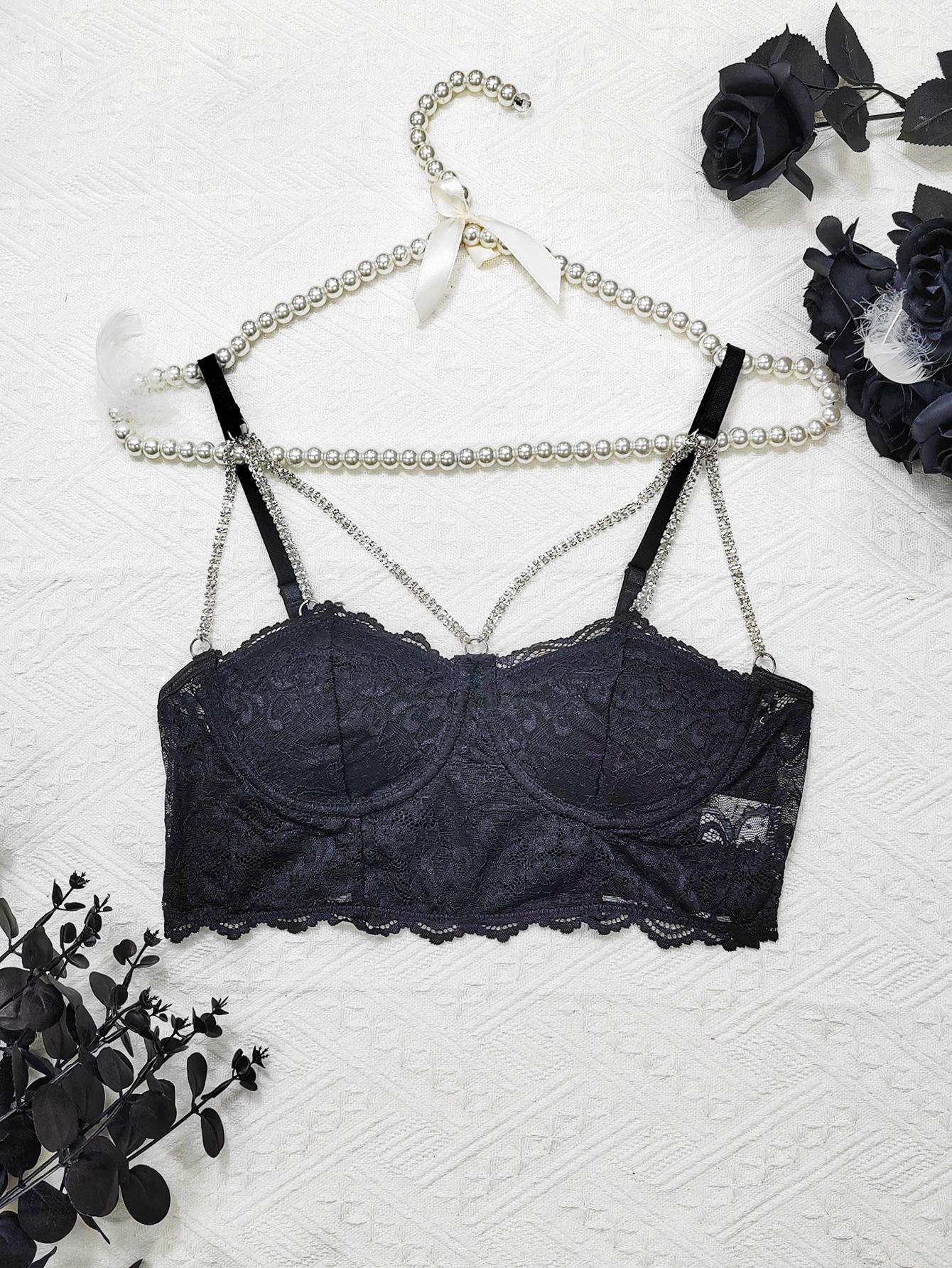 Camisola sexy de encaje transfronterizo, nueva, europea y americana, con anillos de acero, parte superior fruncida y empalme de cadena de diamantes brillantes.