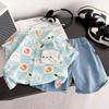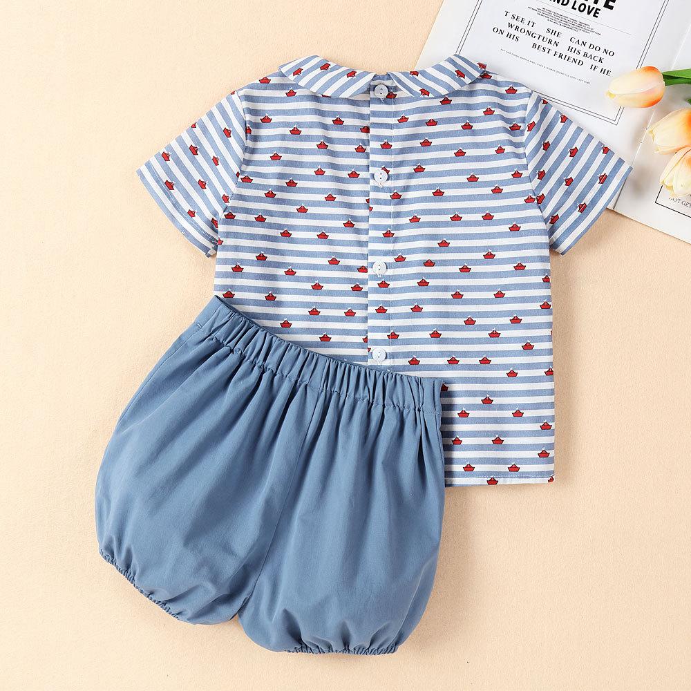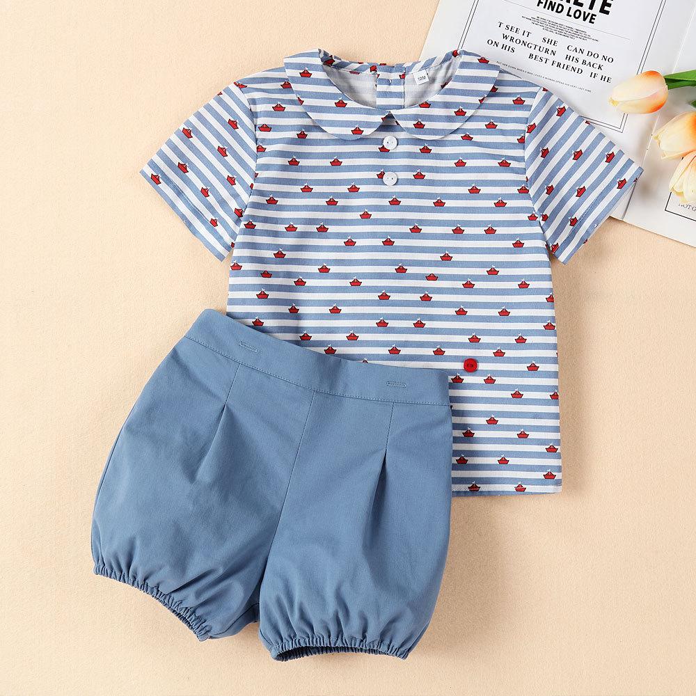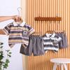 Traje de verano para niños, nuevo, británico, a rayas, manga corta, pantalones cortos, algodón, informal, dos piezas, ropa para niños en vivo.