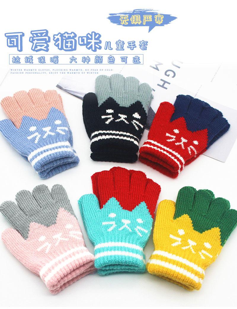 Guantes de dibujos animados para niños invierno frío cálido gatito moda lindo estudiantes de primaria dedo imitación cachemira guantes de punto
