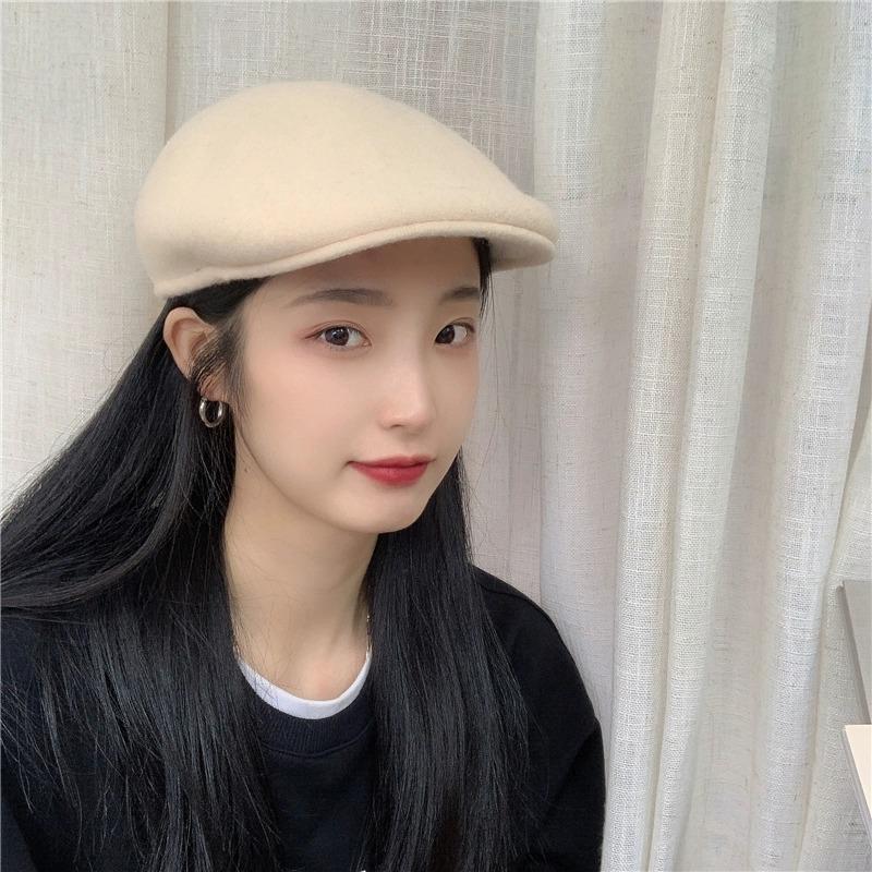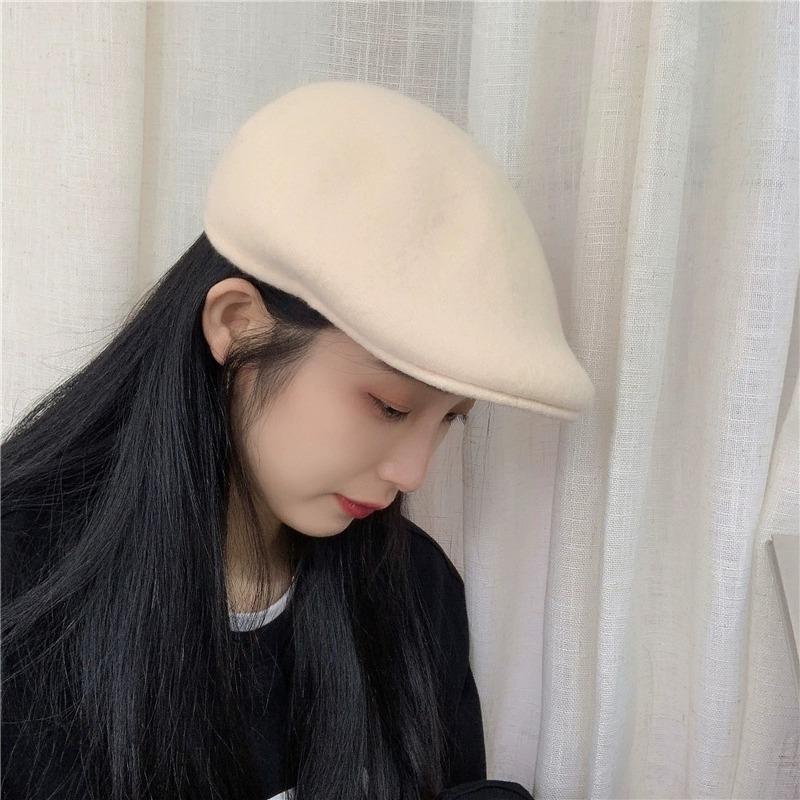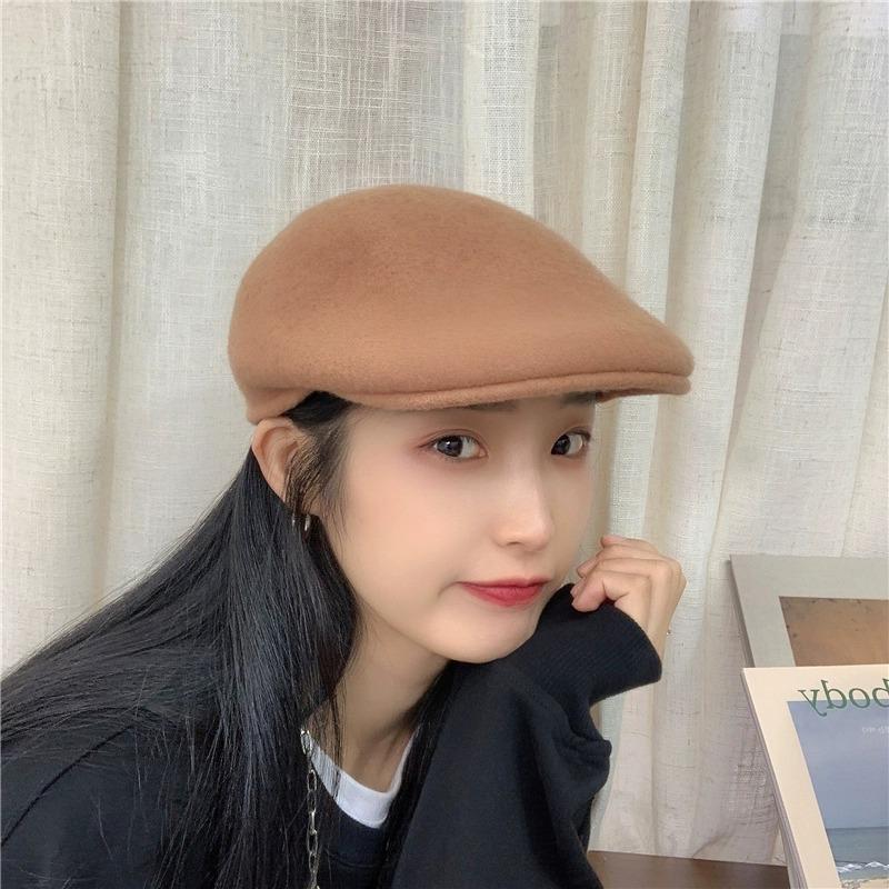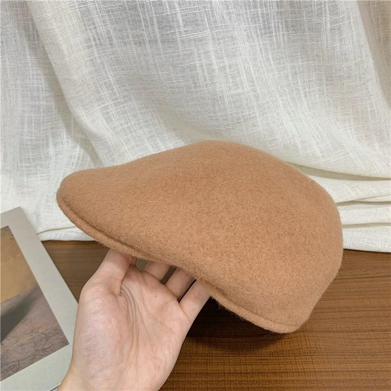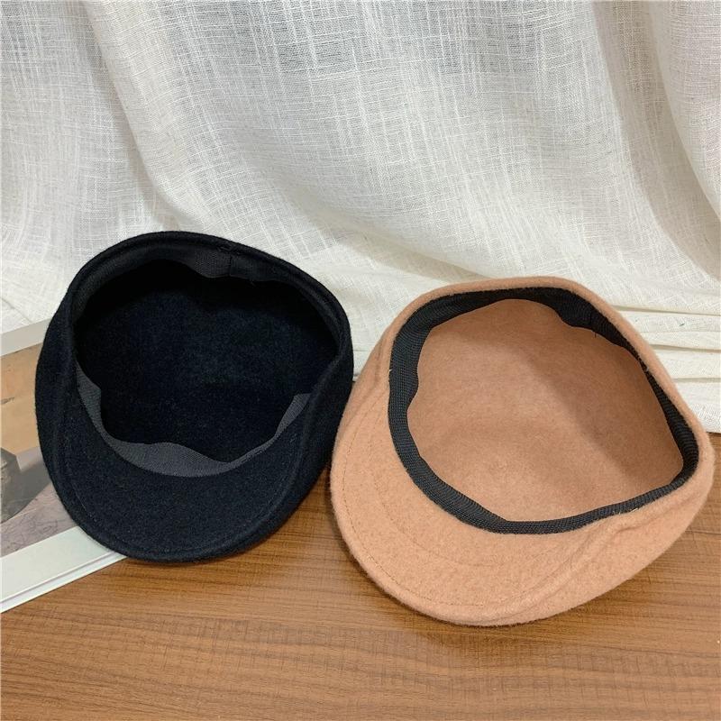 Boina de Lana de Color Puro Estilo Japonés para Mujer Otoño e Invierno Sombrero Retro Británico de Pico de Pato hacia Atrás Sombrero de Invierno hacia Adelante Bordado