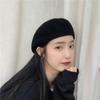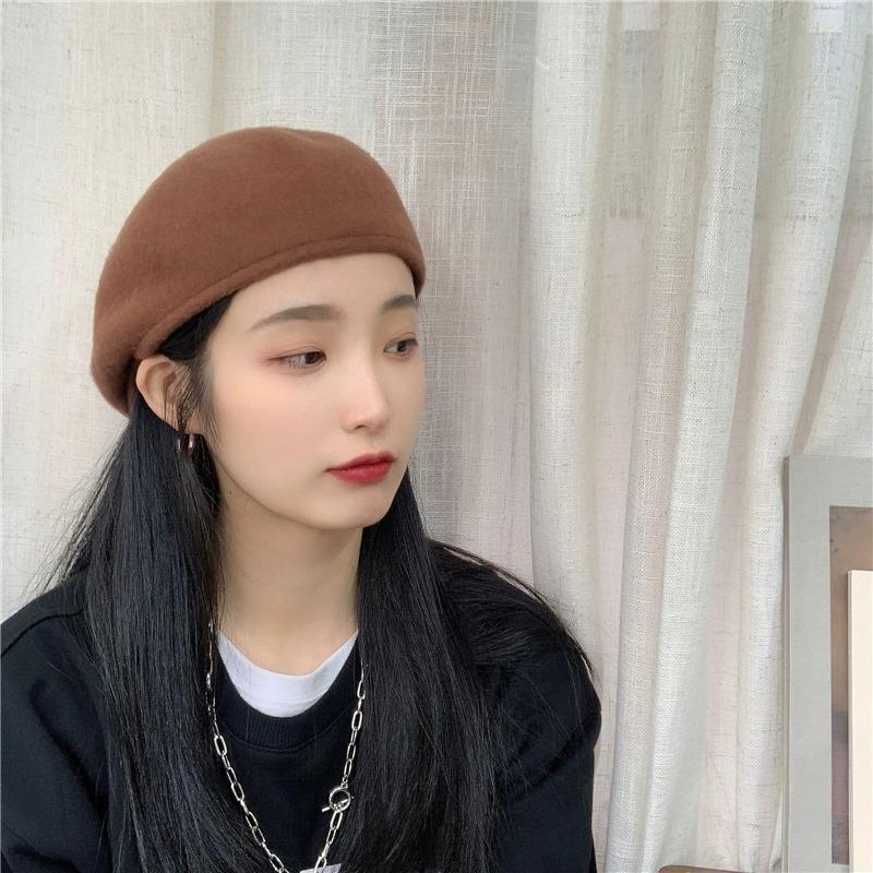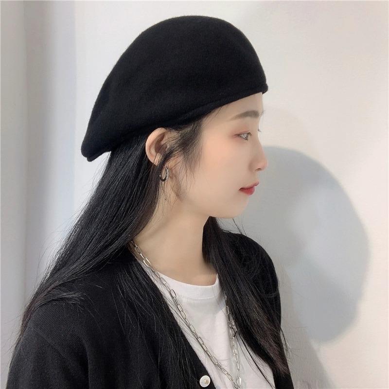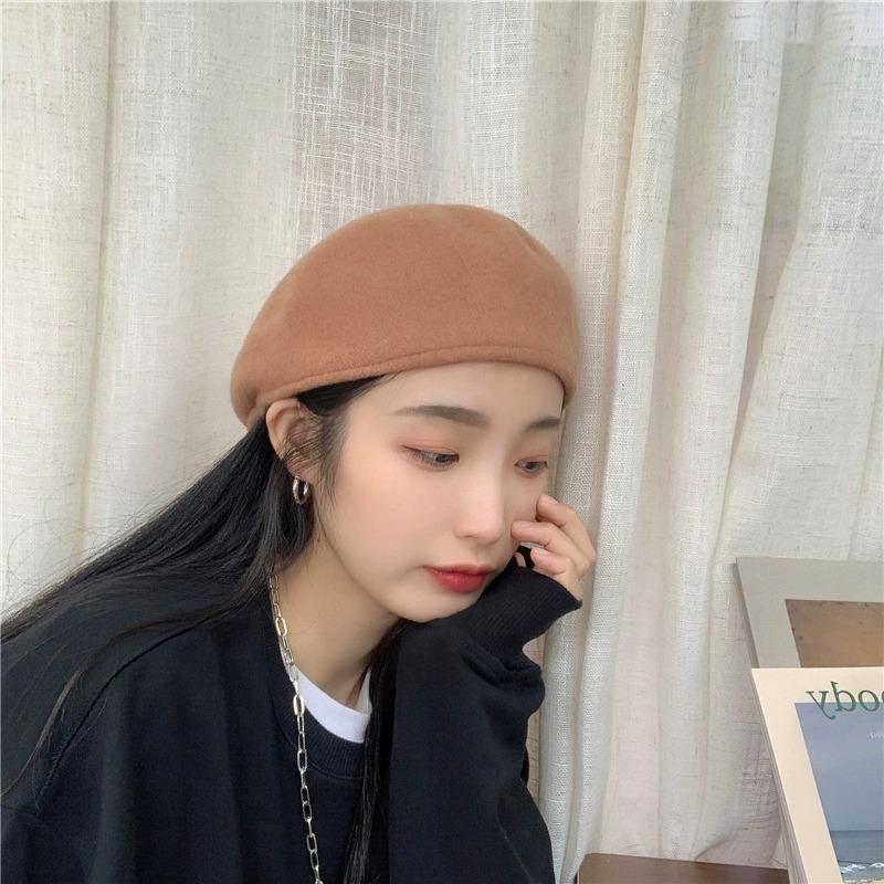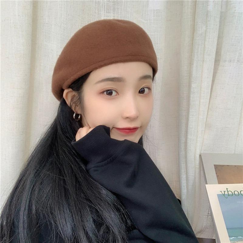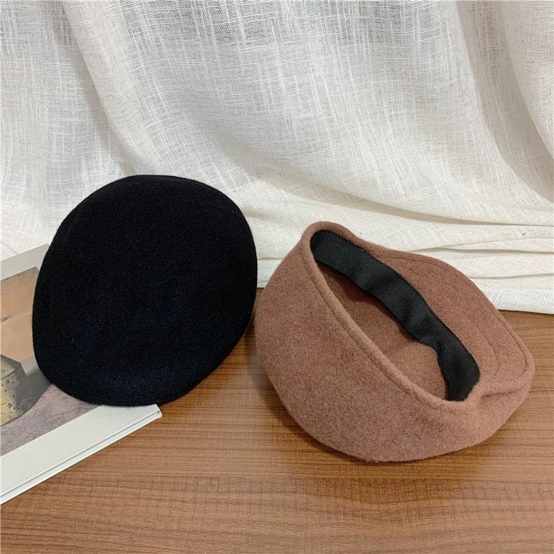 Boina de Lana de Color Puro Estilo Japonés para Mujer Otoño e Invierno Sombrero Retro Británico de Pico de Pato hacia Atrás Sombrero de Invierno hacia Adelante Bordado