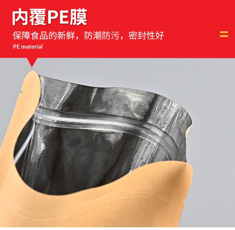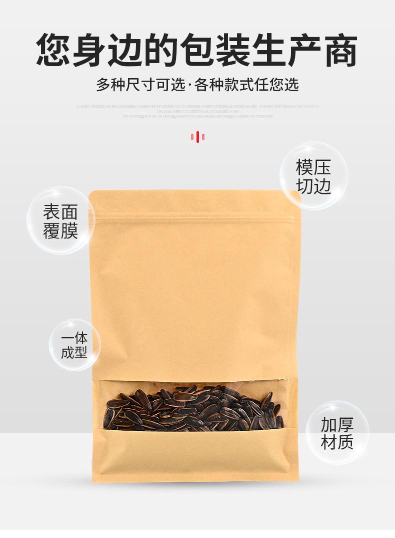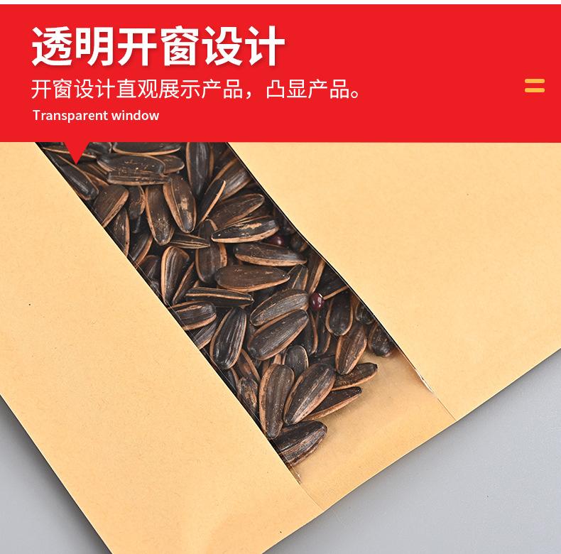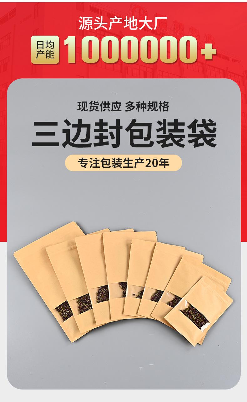 Bolsa de papel kraft con ventana de sellado de tres lados, bolsa de embalaje de plástico transparente con sellado de tres lados, bolsa de papel kraft amarilla autosellada con revestimiento de aluminio