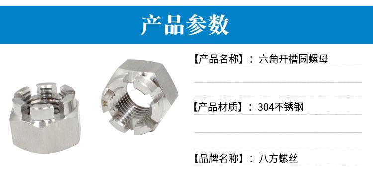 Suministro de fábrica 304 tuerca ranurada hexagonal de acero inoxidable tuerca ranurada DIN935 tuerca abierta no estándar