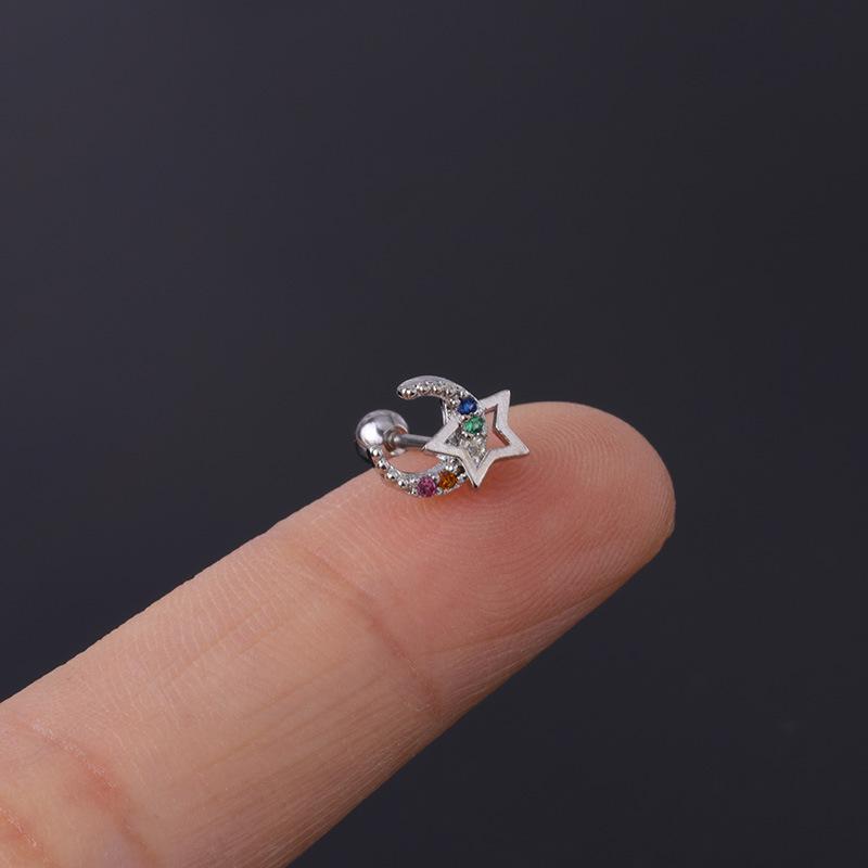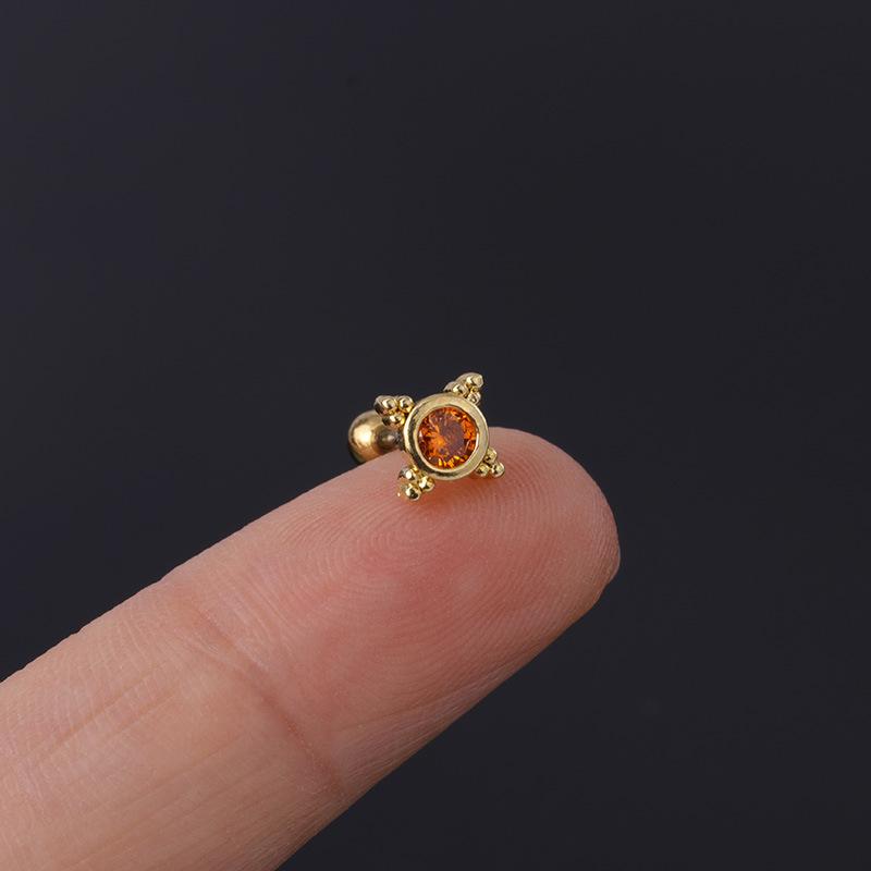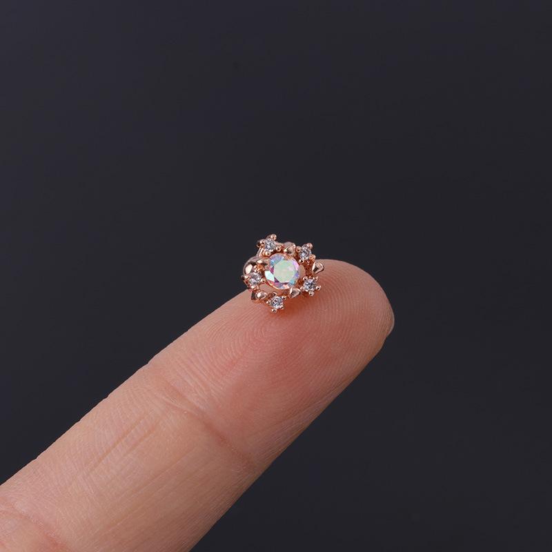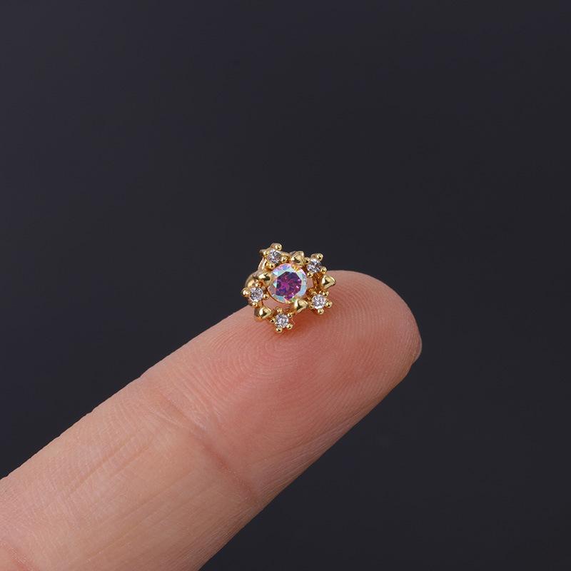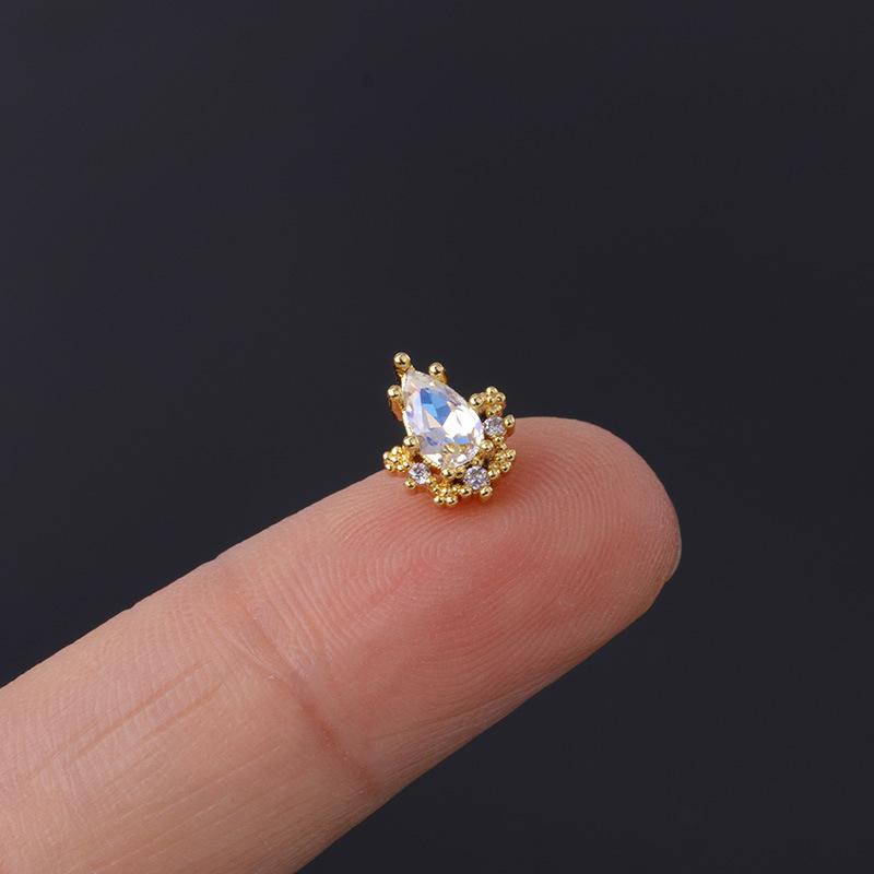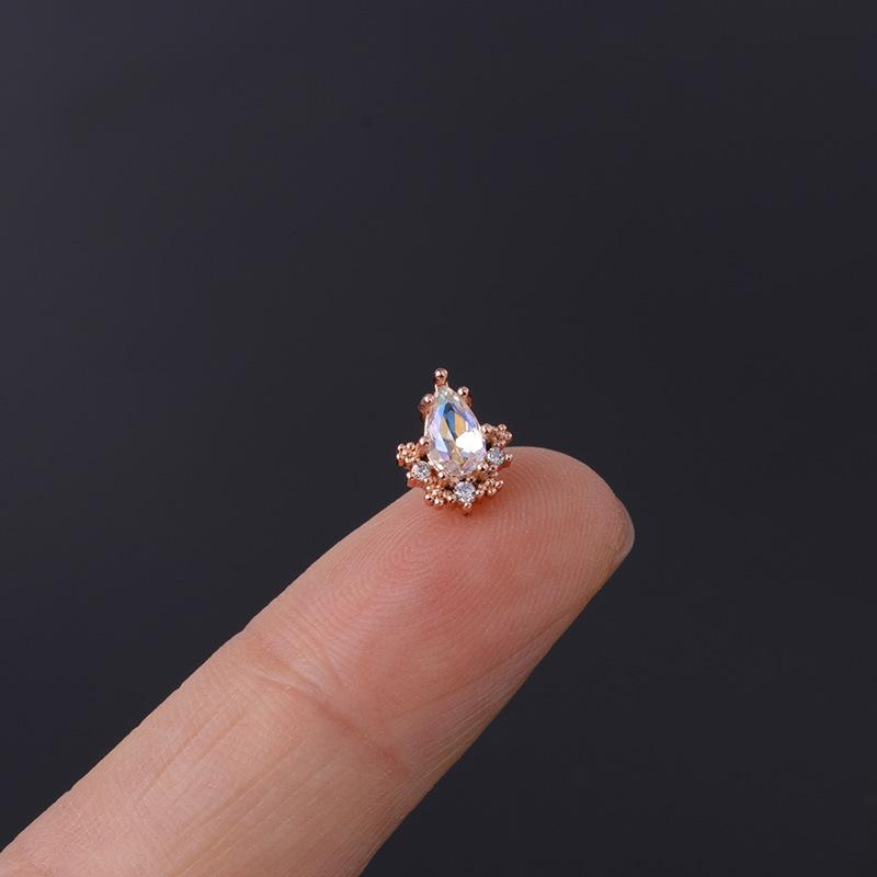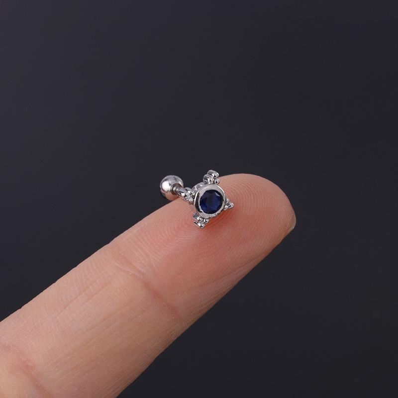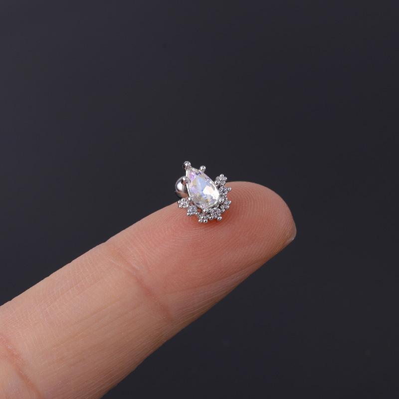 nombre del producto | Piercing para oreja de acero inoxidable con forma geométrica coreana, barra fina de metal, color uña, circonita, 20G |