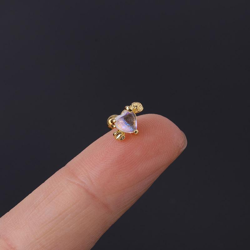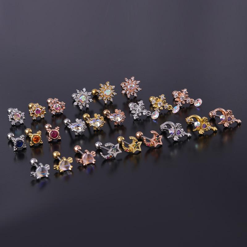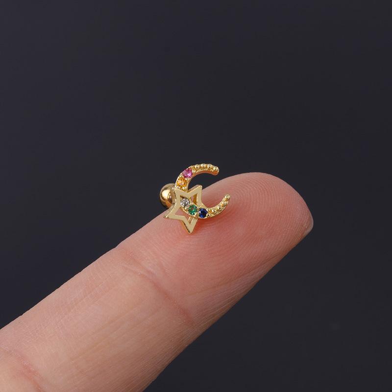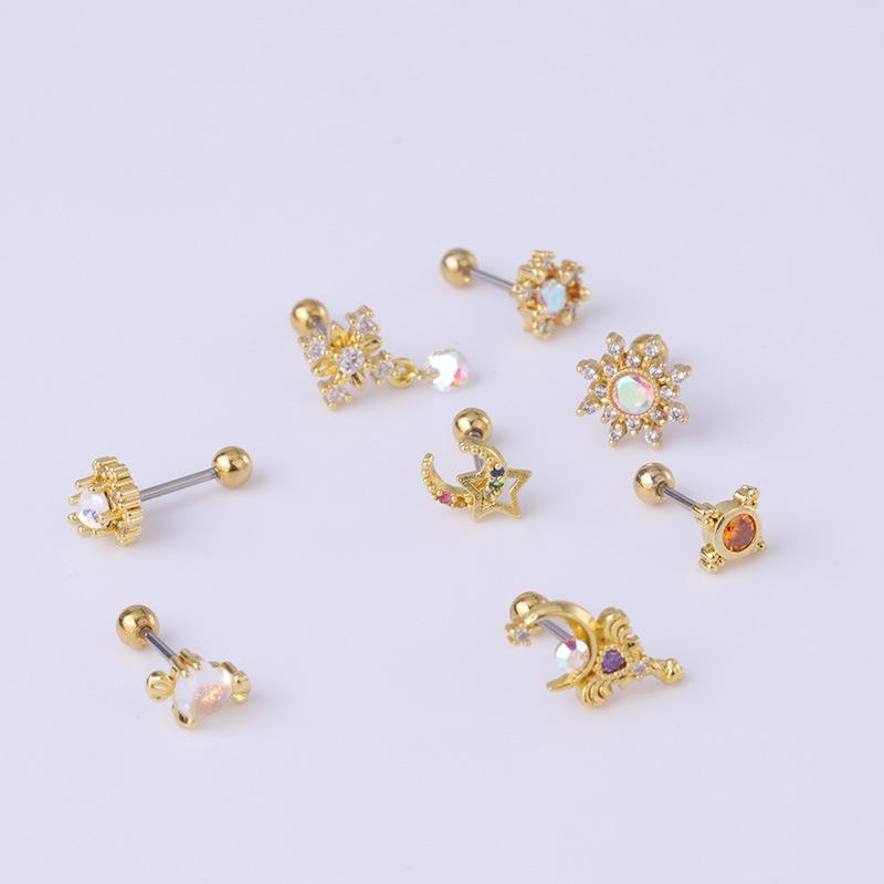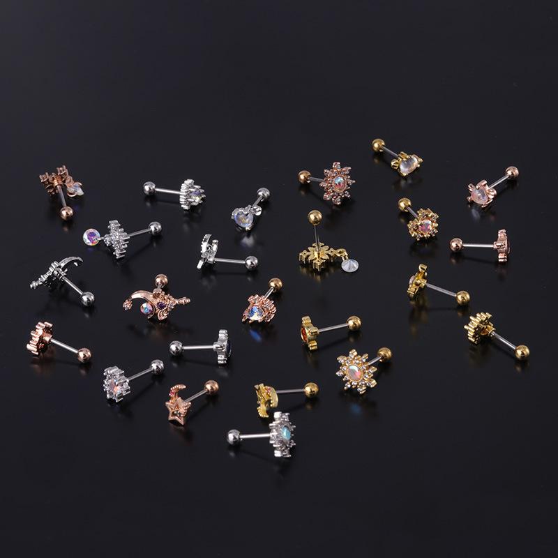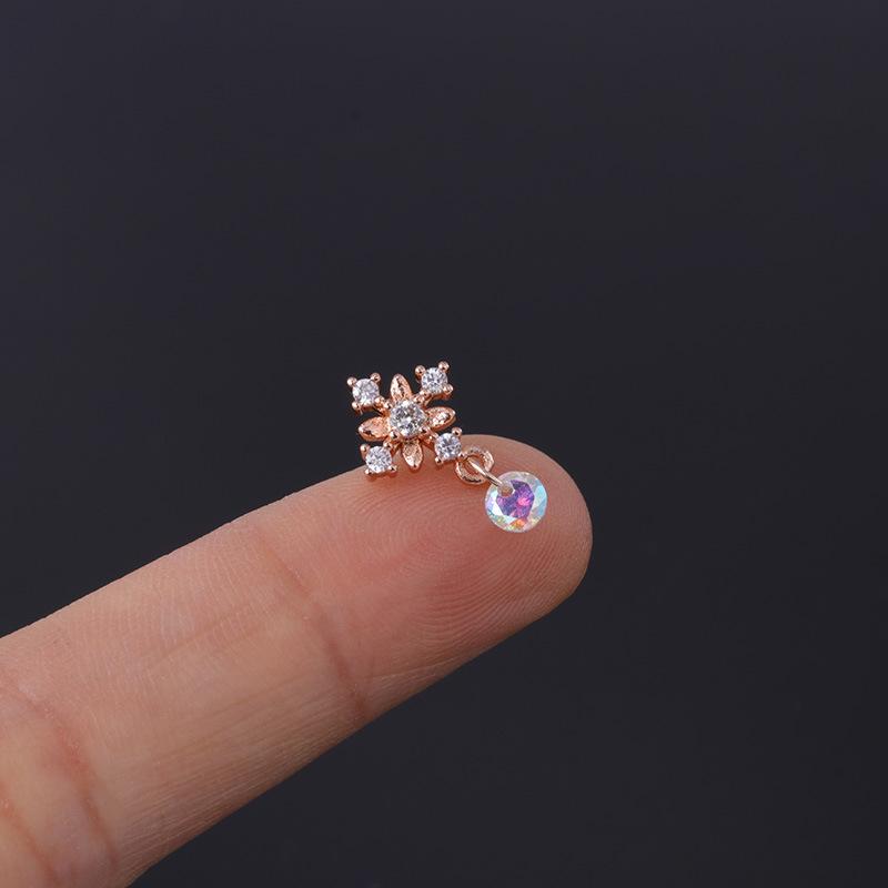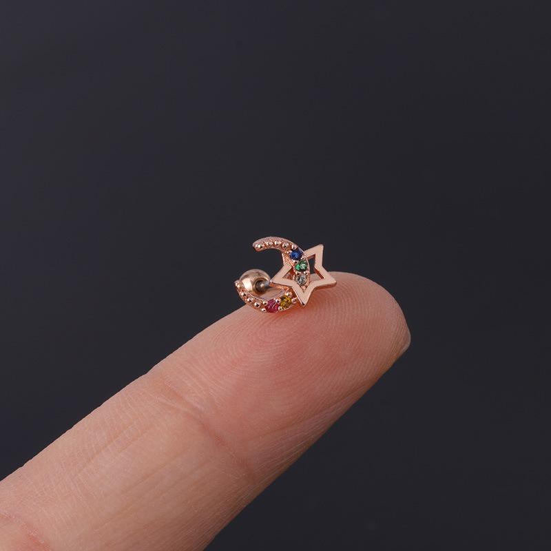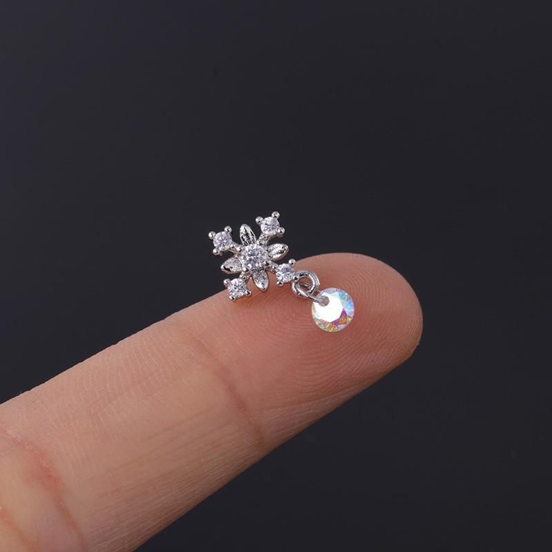 nombre del producto | Piercing para oreja de acero inoxidable con forma geométrica coreana, barra fina de metal, color uña, circonita, 20G |