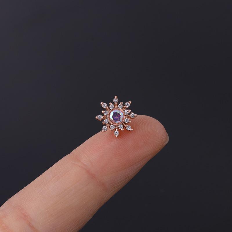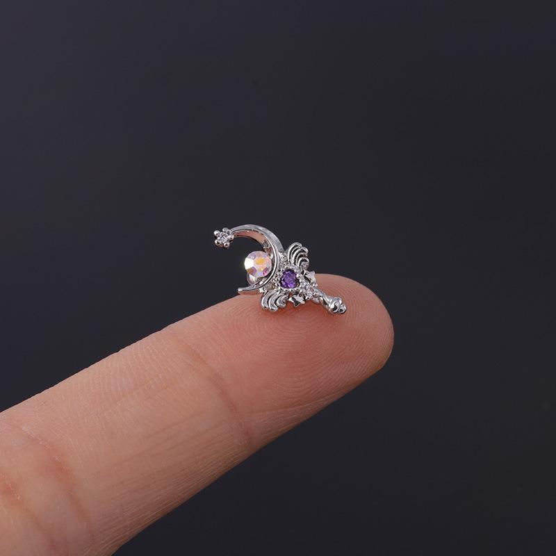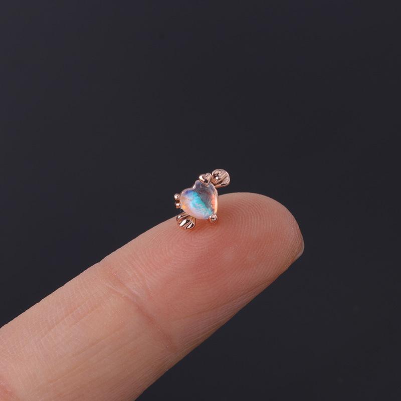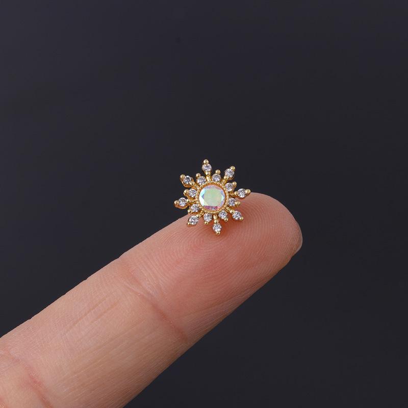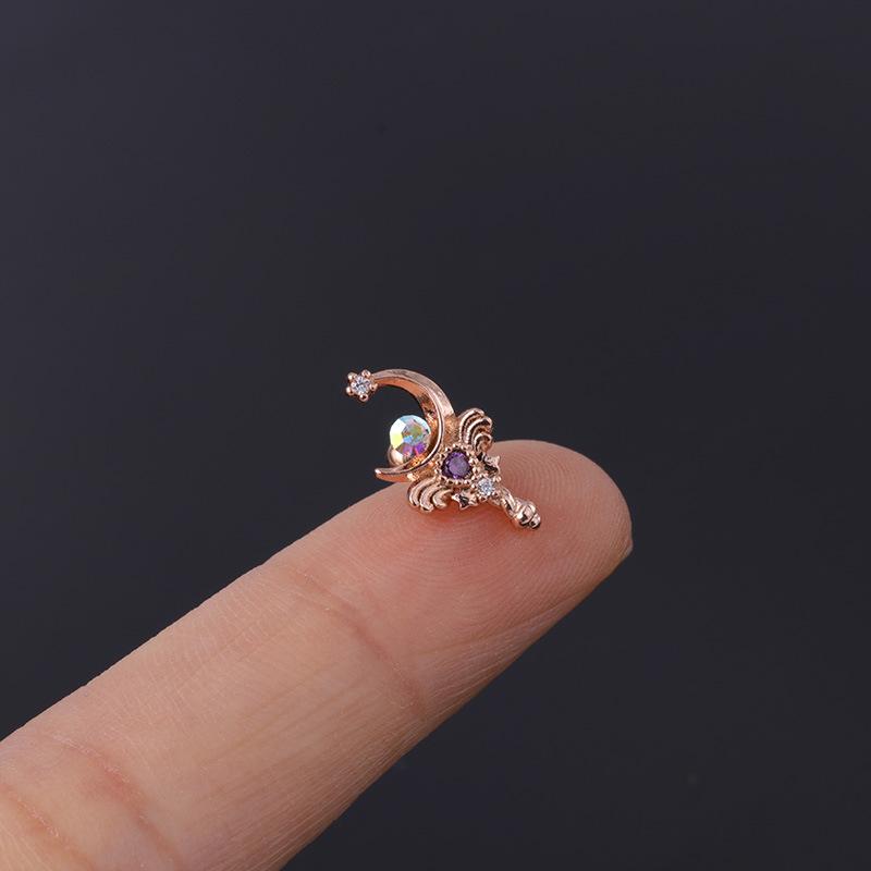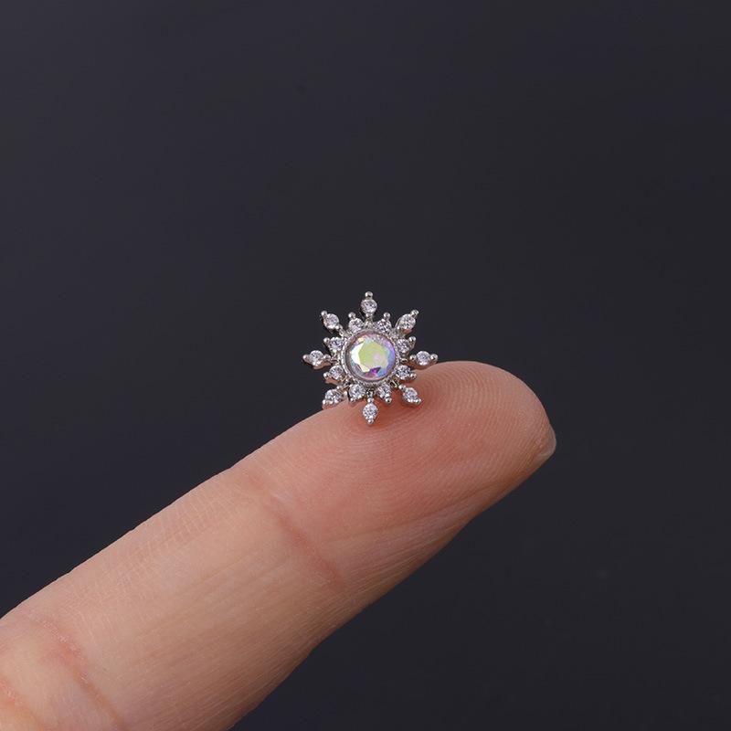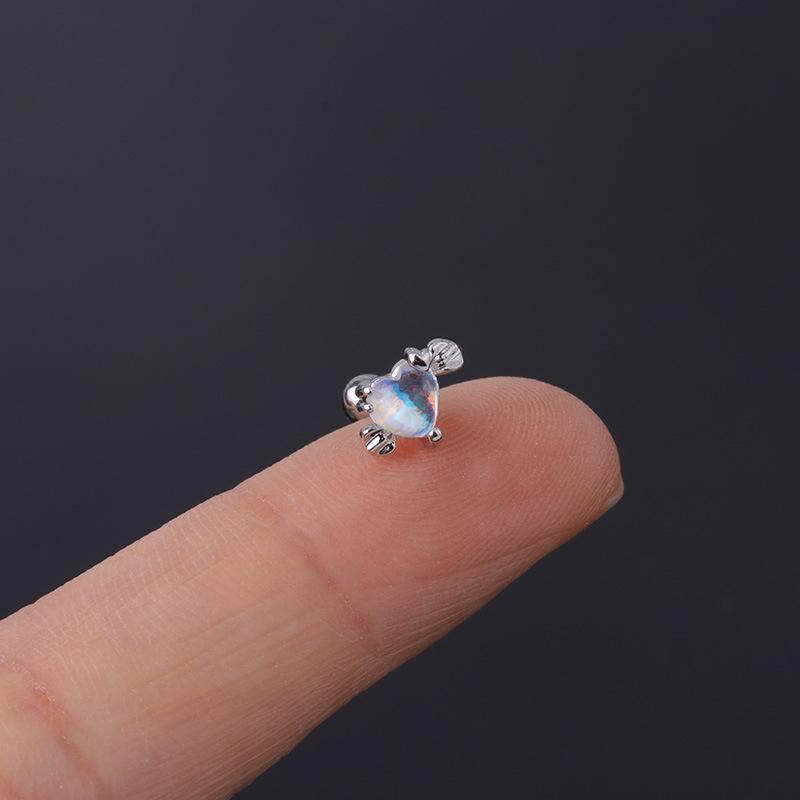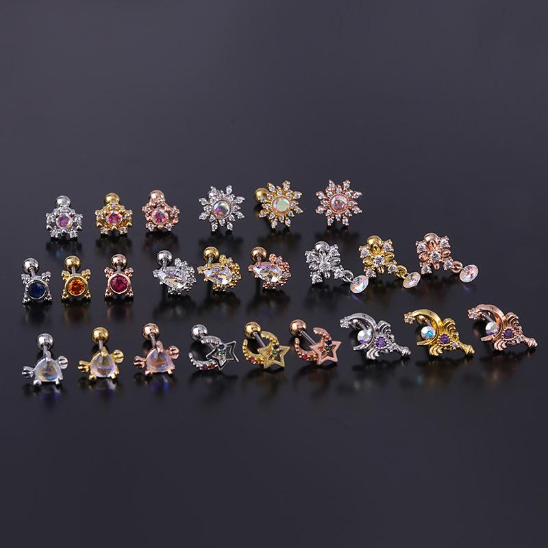 nombre del producto | Piercing para oreja de acero inoxidable con forma geométrica coreana, barra fina de metal, color uña, circonita, 20G |