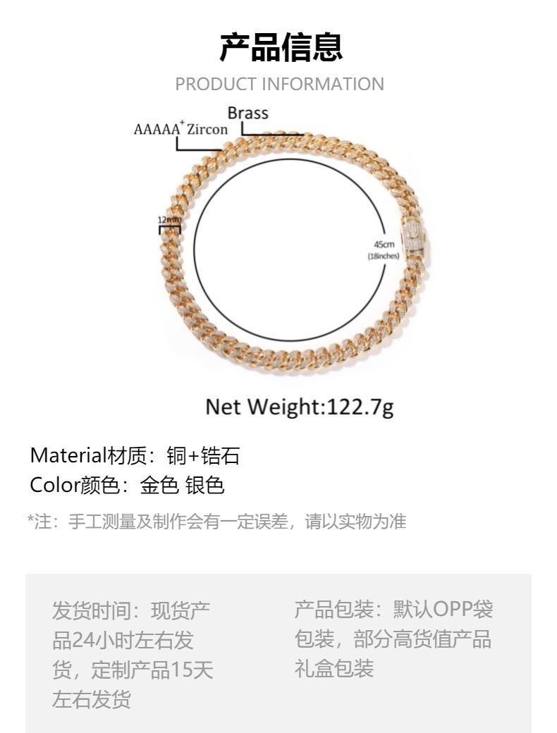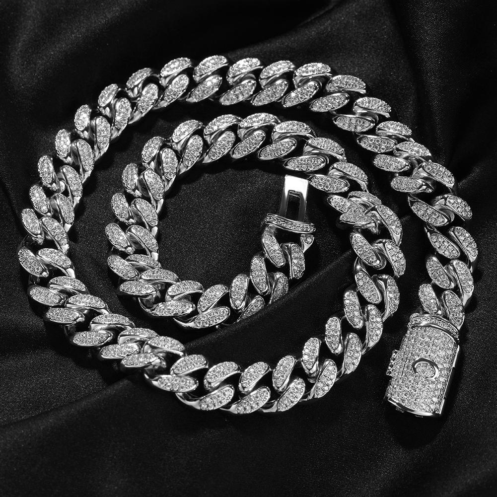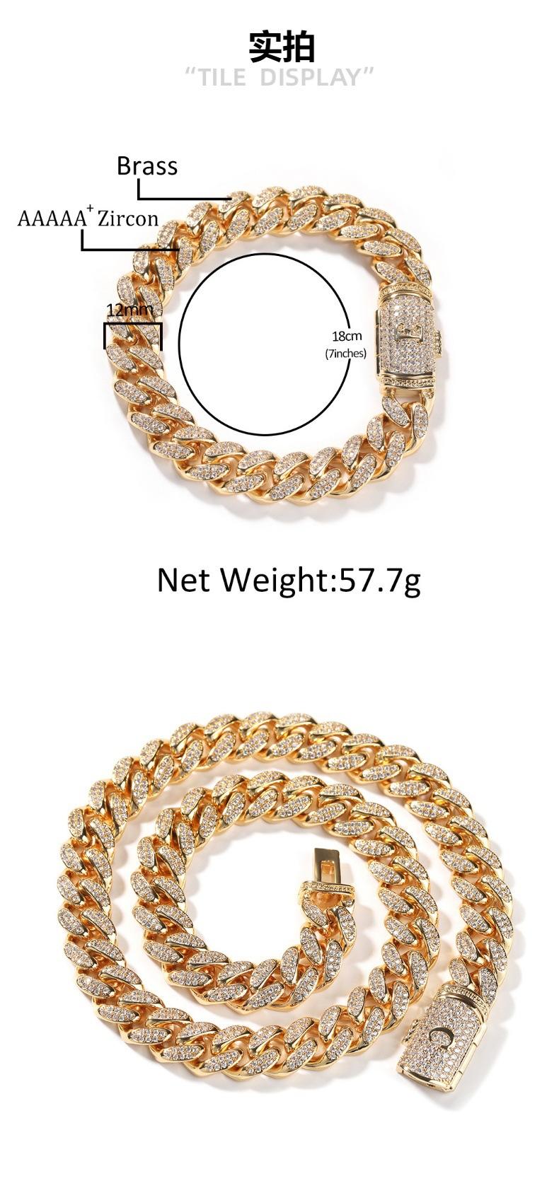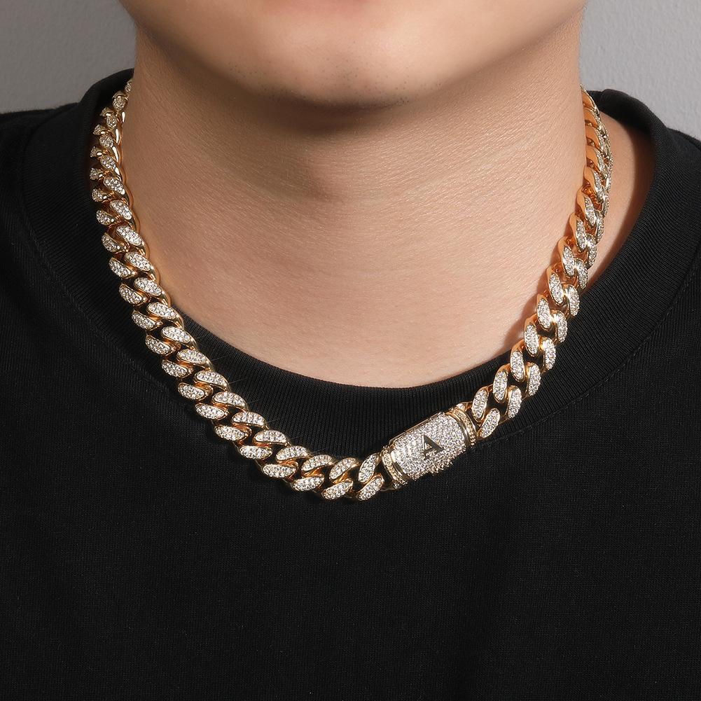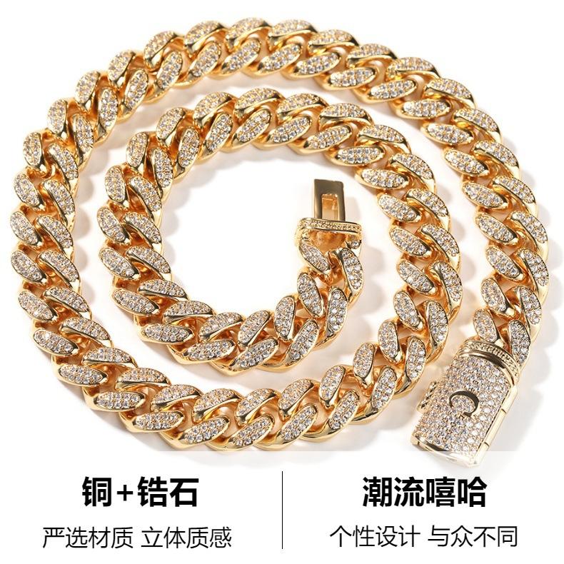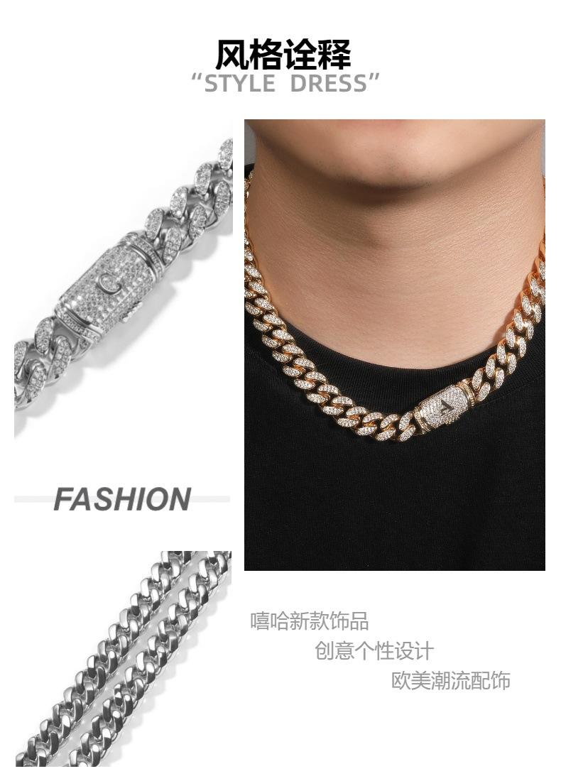 Collar Hip-Hop Europeo y Americano para Hombre Hip-Hop Nicho Cobre Incrustado Zircón Cadena Cubana de 12 mm Collar de Letras Venta al por Mayor