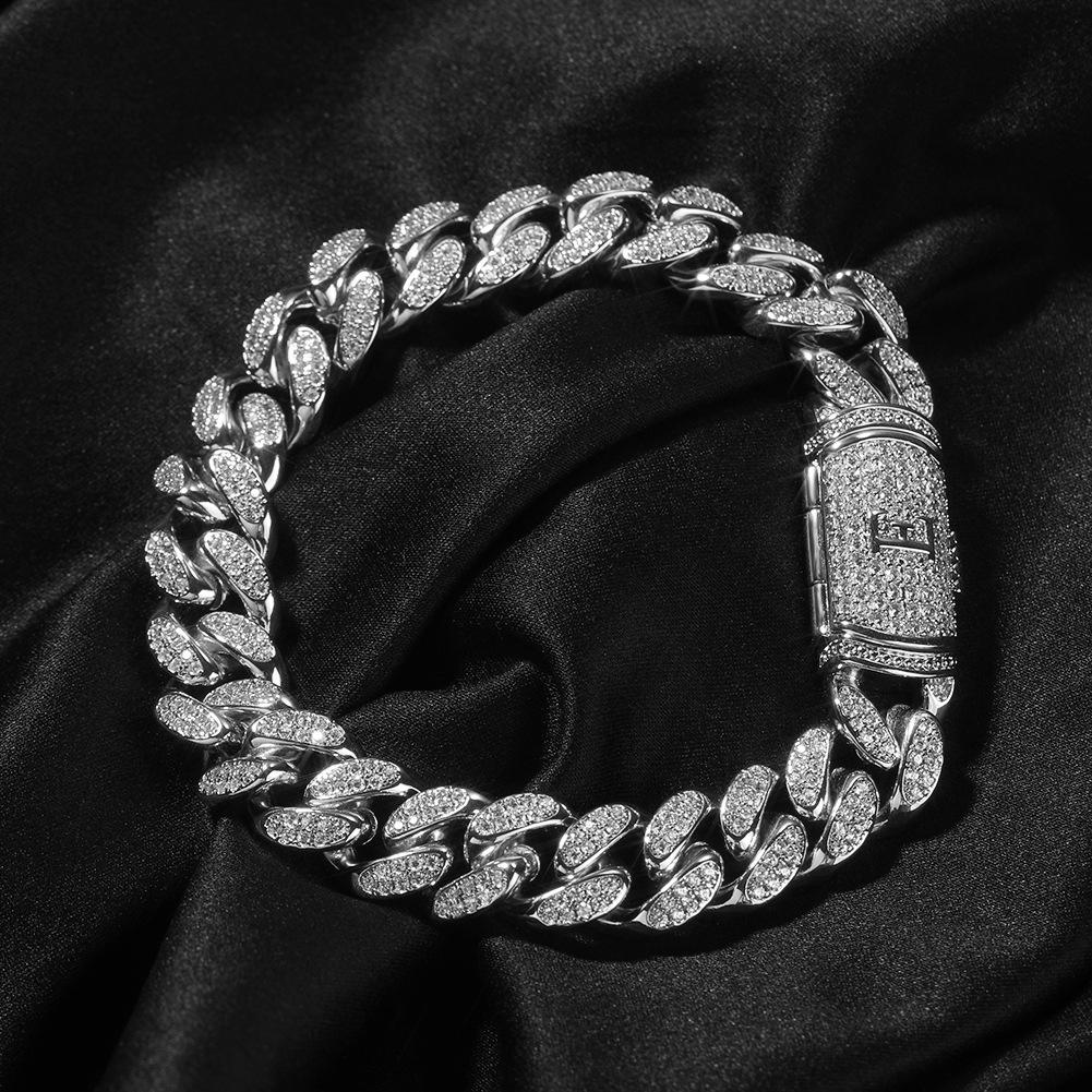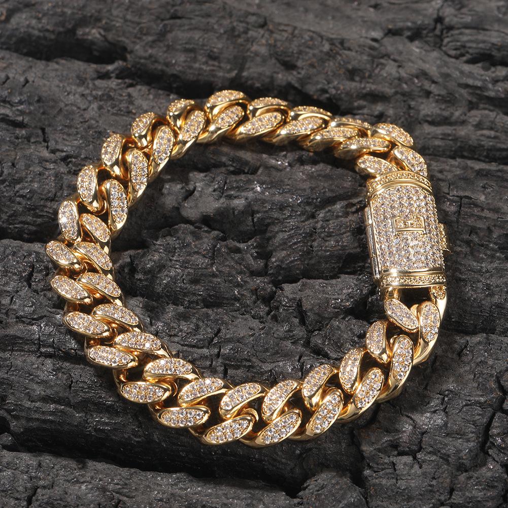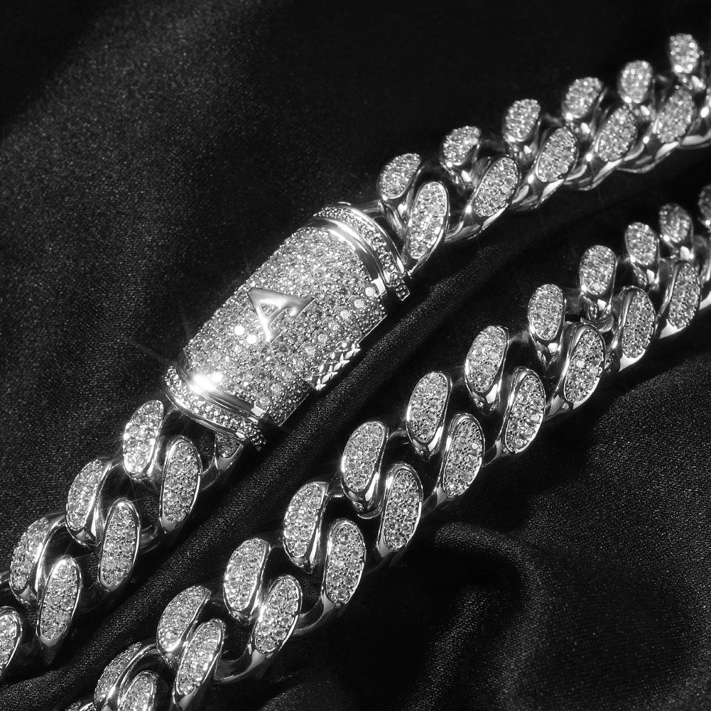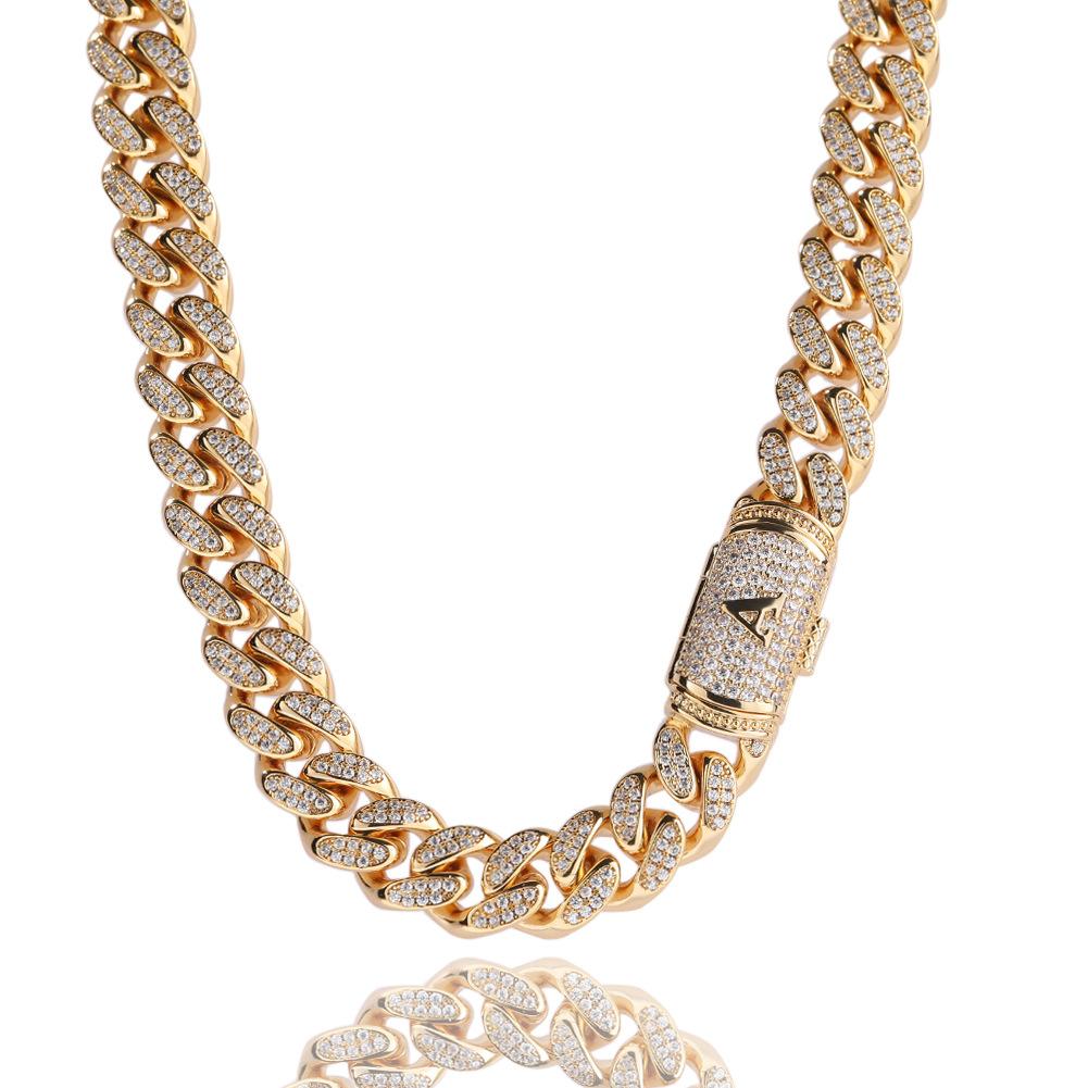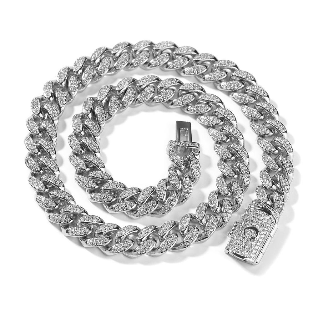Collar Hip-Hop Europeo y Americano para Hombre Hip-Hop Nicho Cobre Incrustado Zircón Cadena Cubana de 12 mm Collar de Letras Venta al por Mayor
