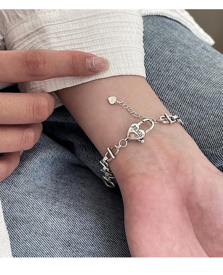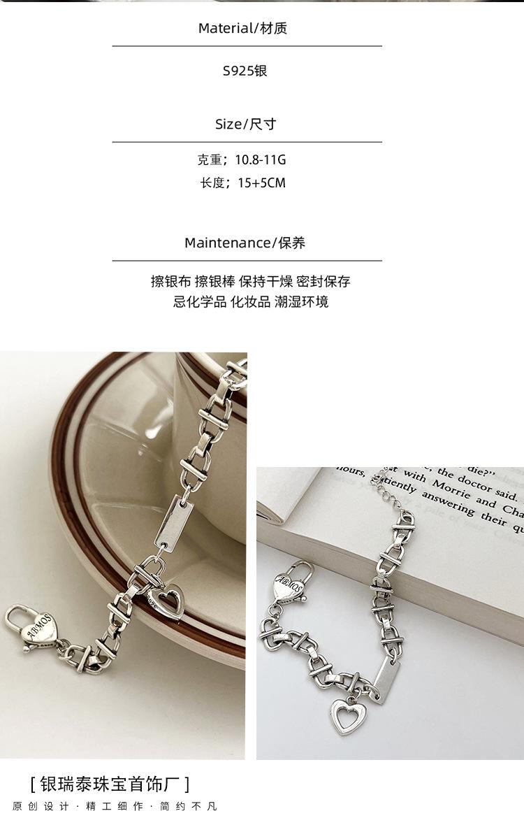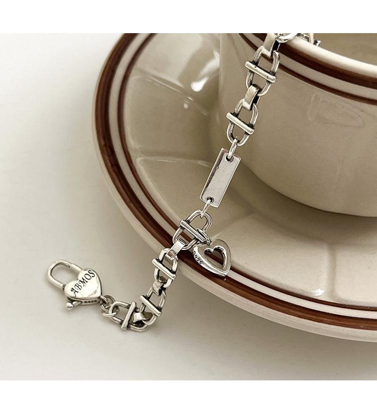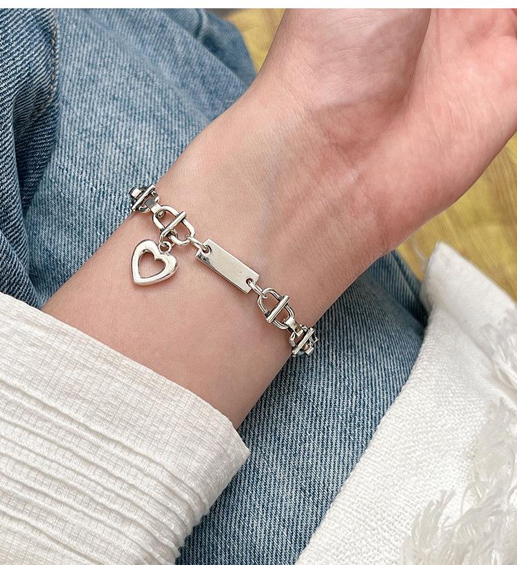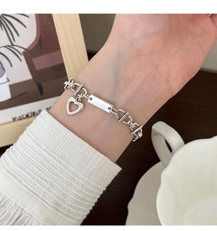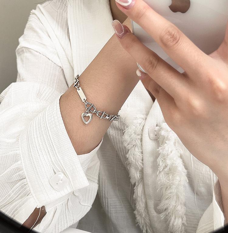 Pulsera de plata de ley 925 Ruitai Love para mujer, estilo coreano de verano, ligera, de lujo, con costuras a juego y estilo industrial.