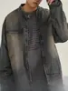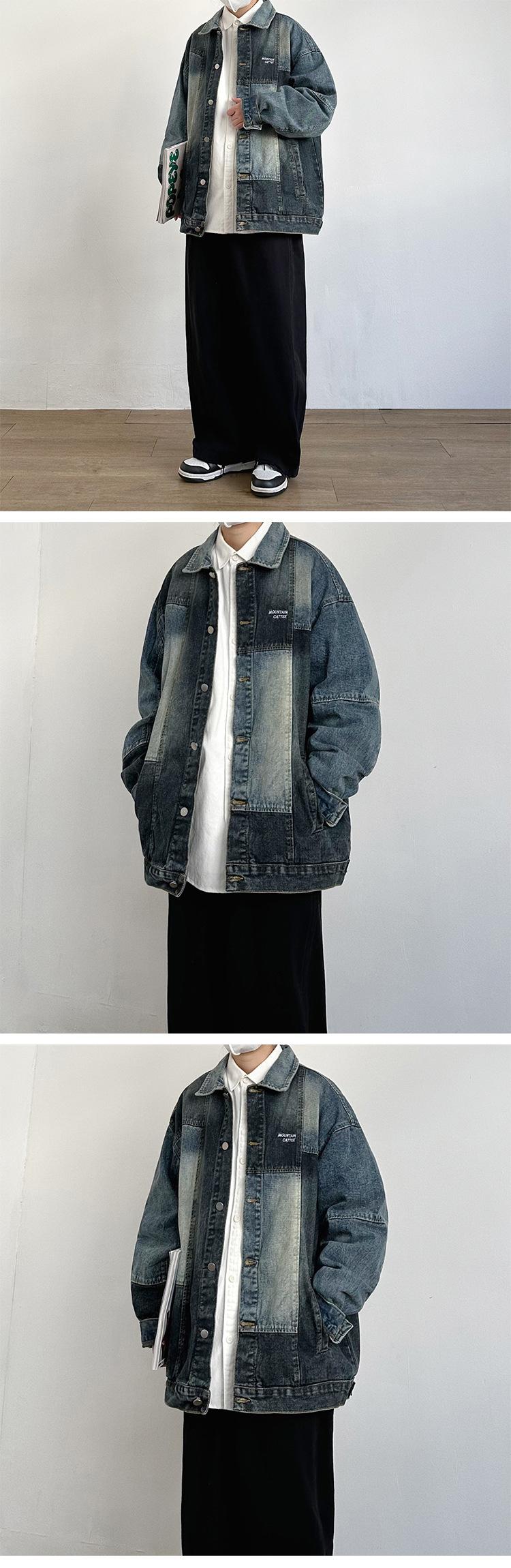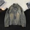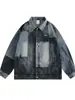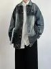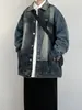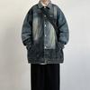 Chaqueta vaquera estilo americano con costuras azules retro para hombre, otoño 2023, nueva chaqueta holgada con diseño de nicho.
