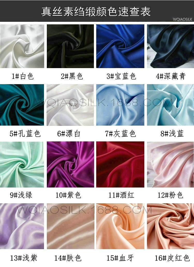 Introducción del producto: Satén nacarado, brillante y sedoso, nueva generación de teñido ecológico de origen vegetal, con un tacto relativamente suave.La tela no es elástica.Ideal para confeccionar ropa de cama de seda, como fundas de almohada, fundas de edredón y sábanas; también para ropa de verano (camisas, vestidos, pijamas, cheongsams, pantalones, pañuelos de seda, etc.). Nuestra tienda puede personalizar la ropa de cama, pero no procesa prendas.
