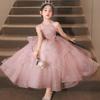 Vestido infantil europeo y americano nuevo con lazo y calcomanía de princesa, vestido de malla, elegante vestido de actuación de piano, pasarela.