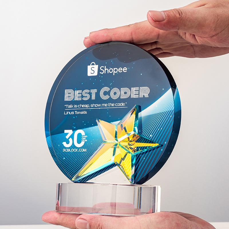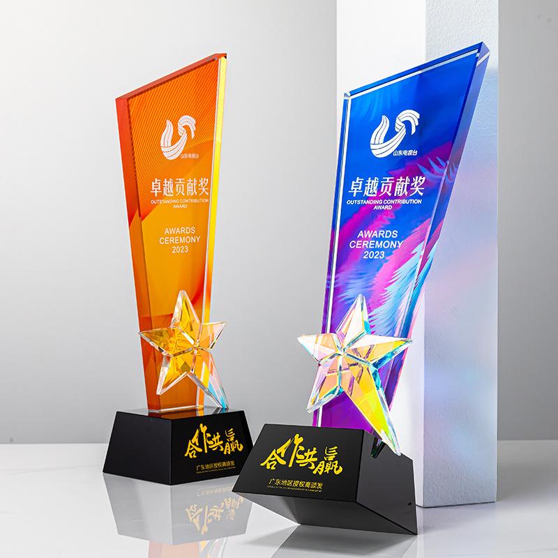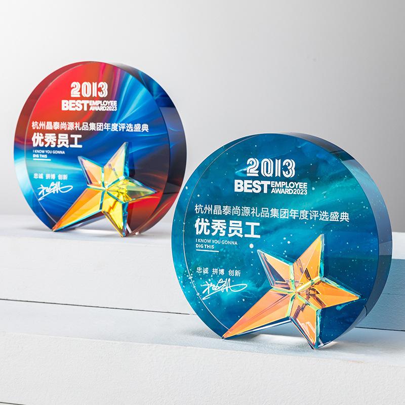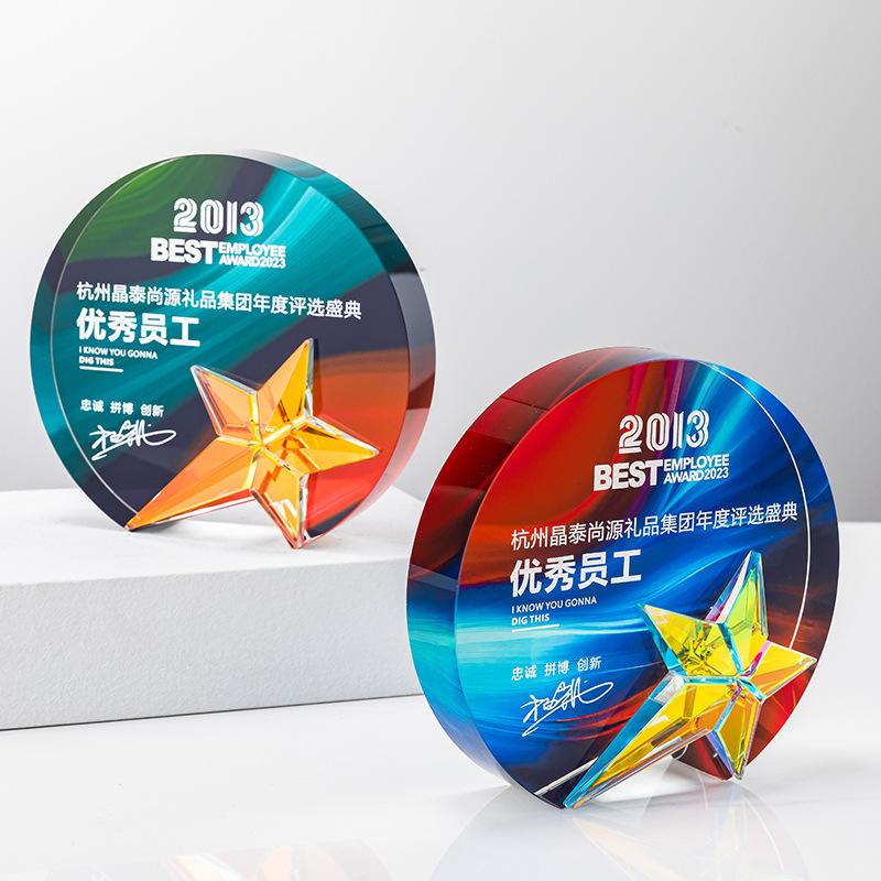 Trofeo de cristal colorido colorido evaluación de empleados personalizada creativa personalizada reunión anual de empresa nuevo Trofeo medalla personalización