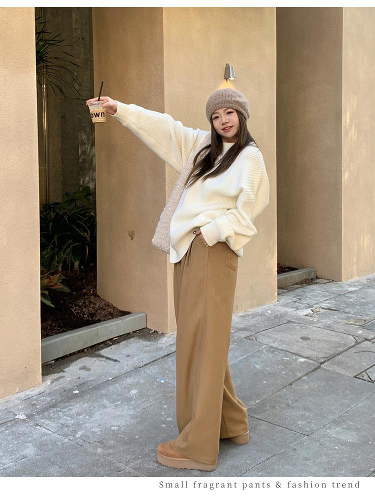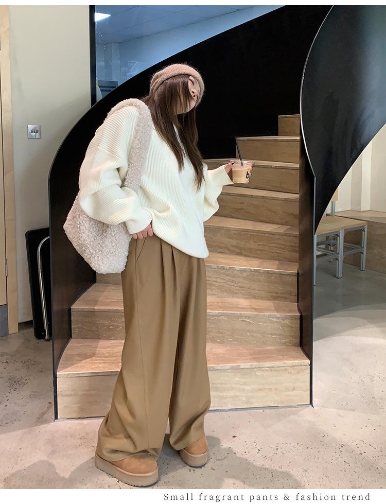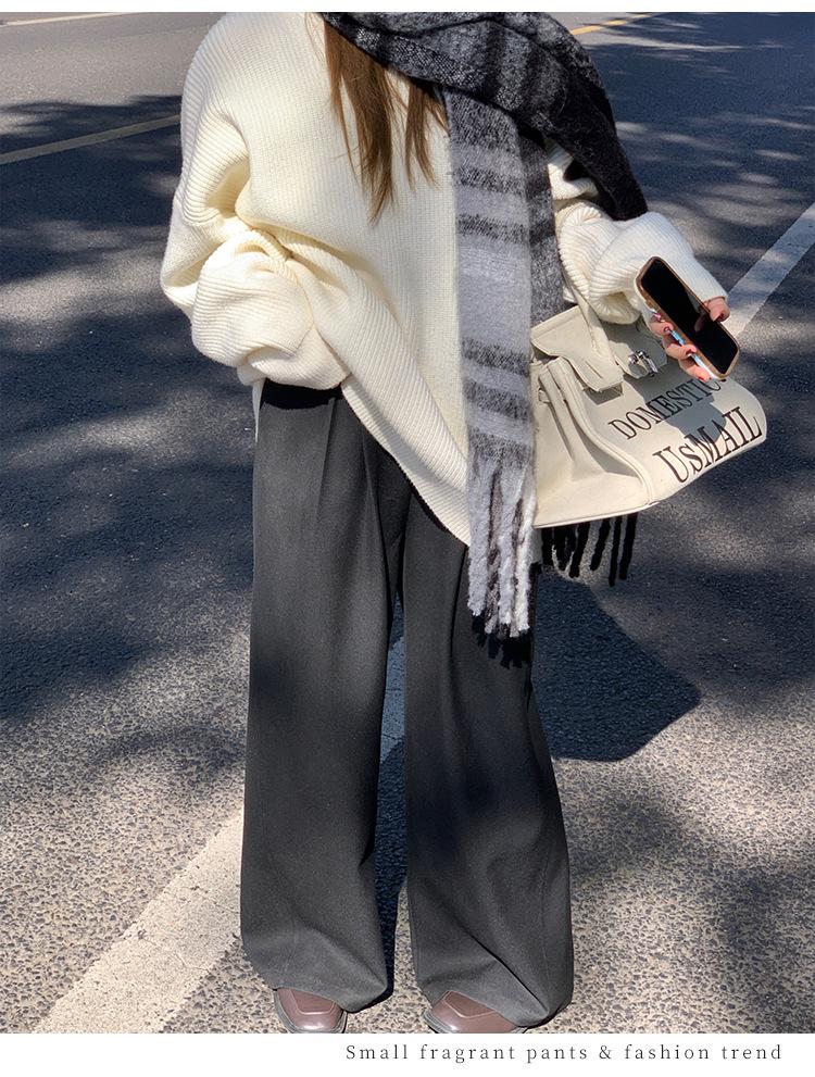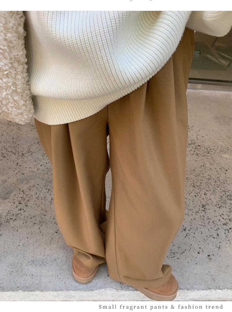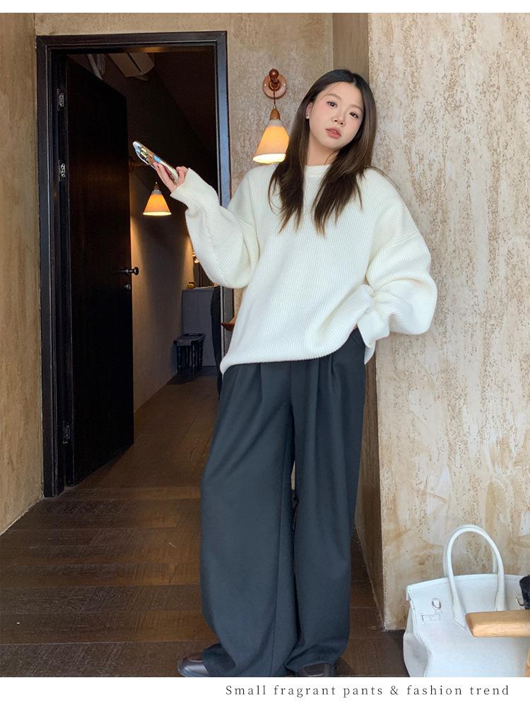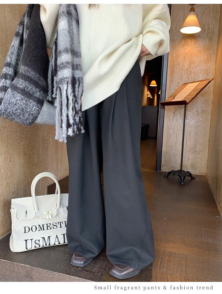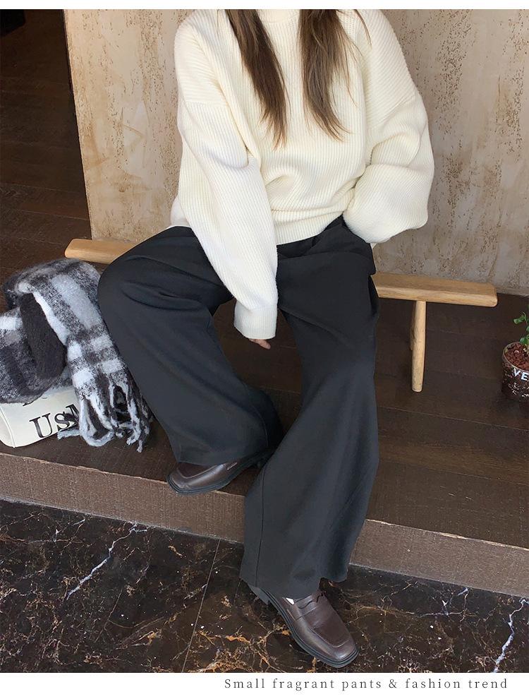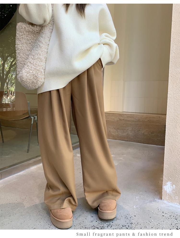 Pantalones casuales delgados de talla grande para mujer, pantalones de cintura alta drapeados gruesos de estilo perezoso, pantalones simples de pierna ancha, pantalones casuales rectos