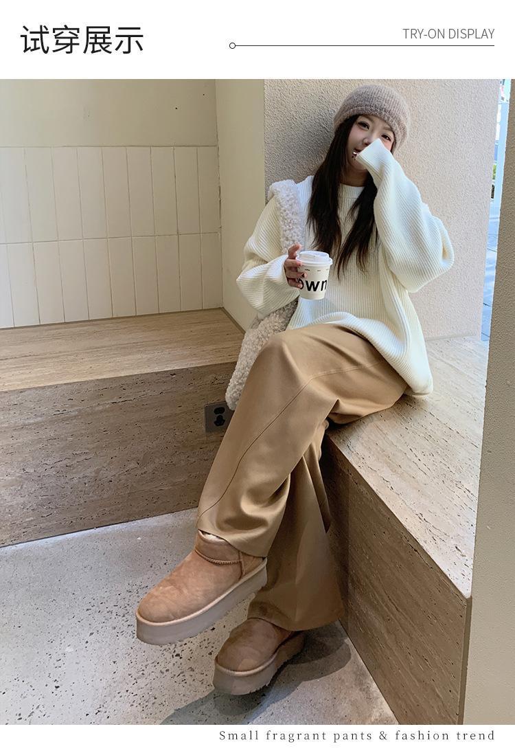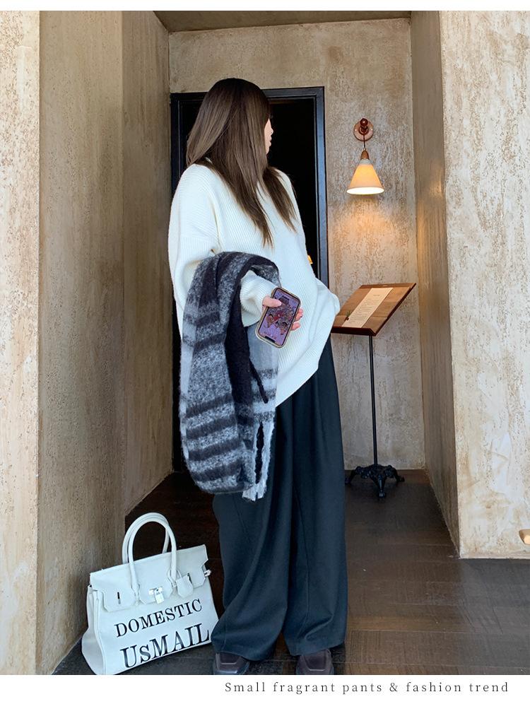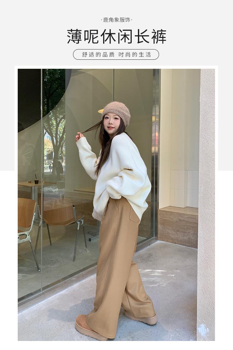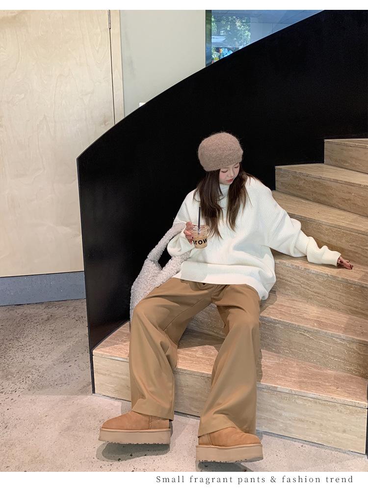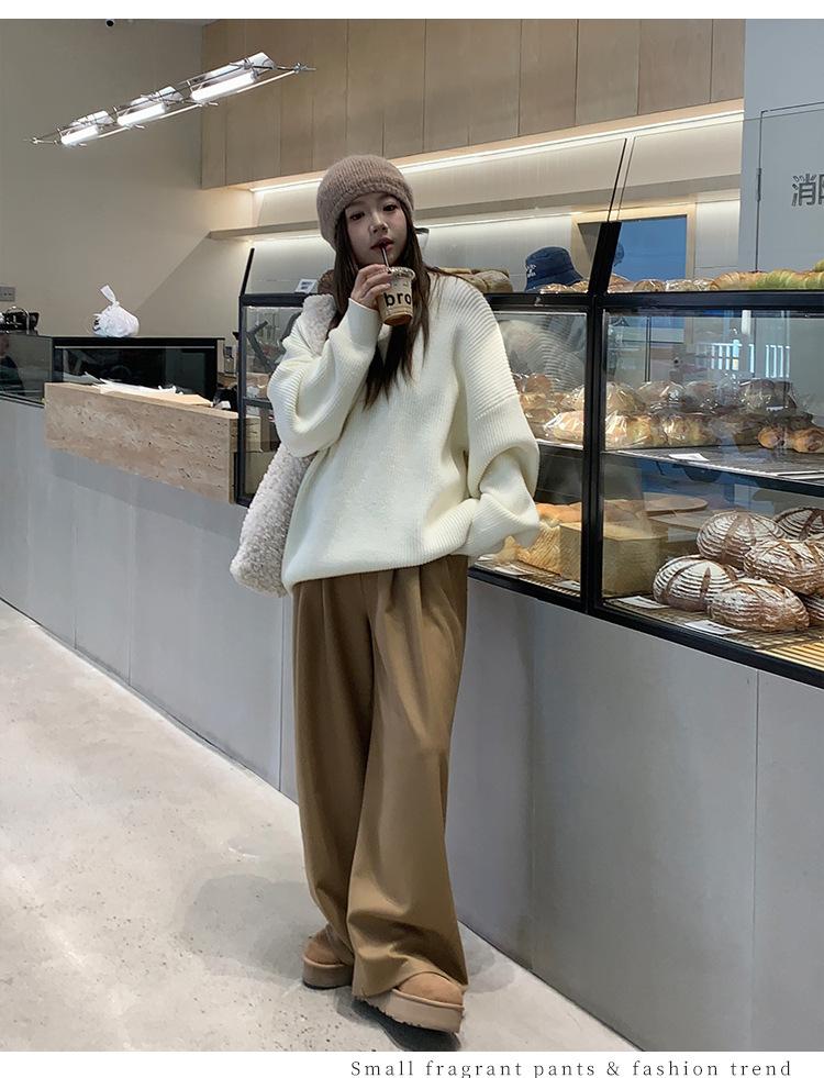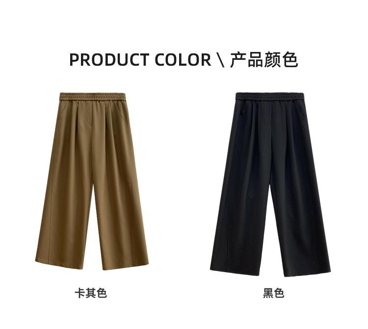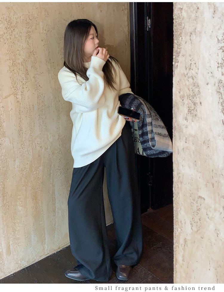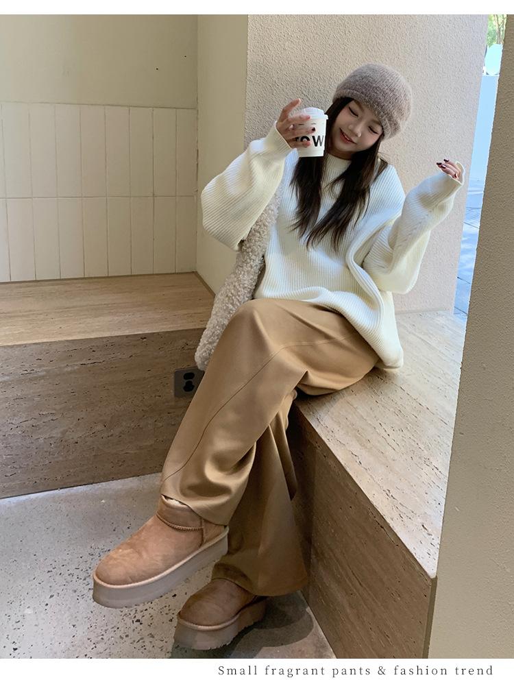 Pantalones casuales delgados de talla grande para mujer, pantalones de cintura alta drapeados gruesos de estilo perezoso, pantalones simples de pierna ancha, pantalones casuales rectos
