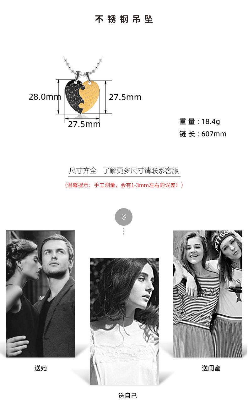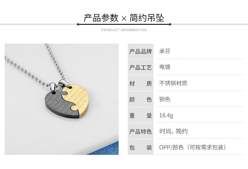 Collar de acero inoxidable con diseño personalizado y costura de corazón a corazón, colgante para pareja, estilo ins transfronterizo, collar de oro de 18 quilates de moda