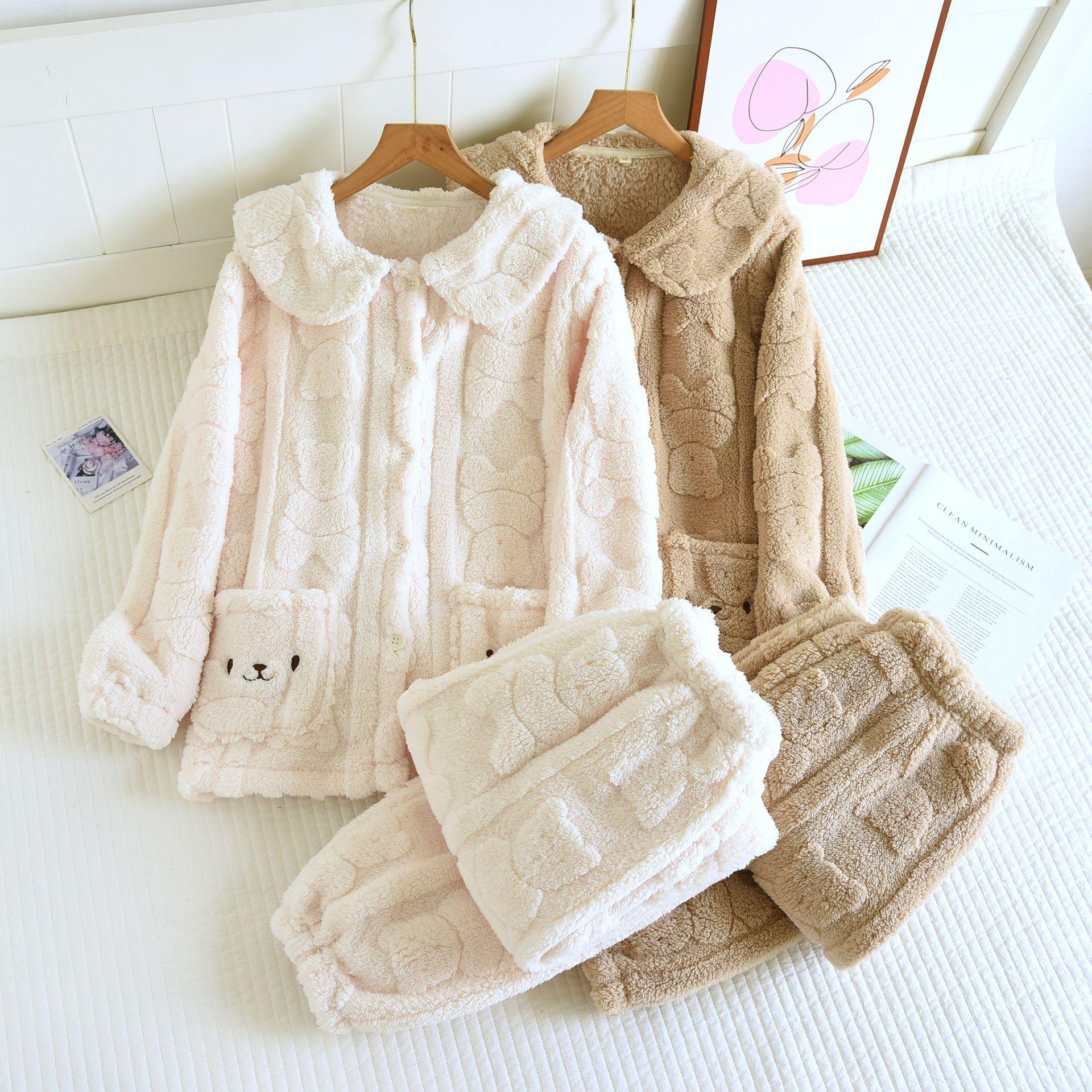 Nuevo pijama de franela grueso de invierno para mujer, traje de terciopelo para el hogar, pijama cálido de terciopelo coral para exteriores