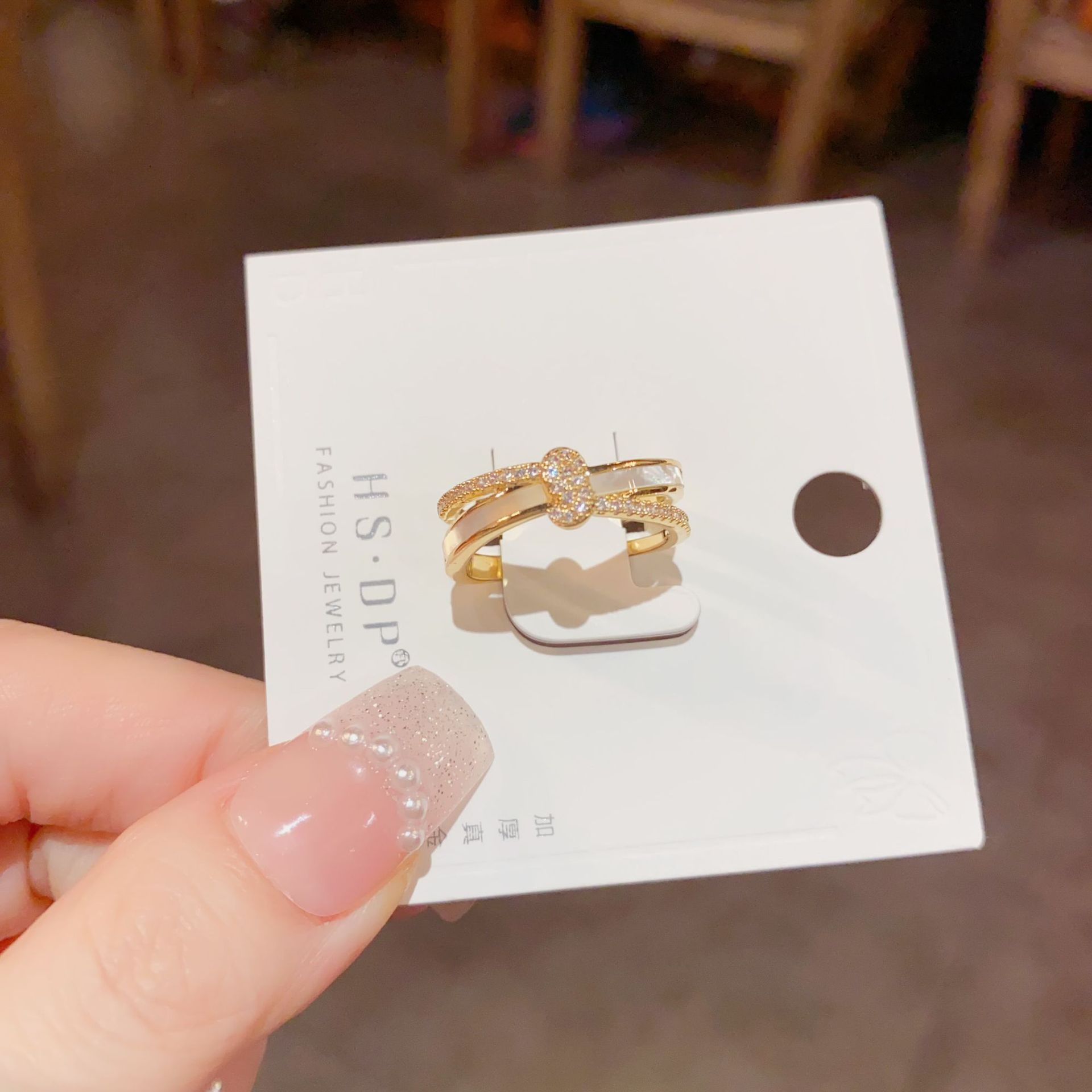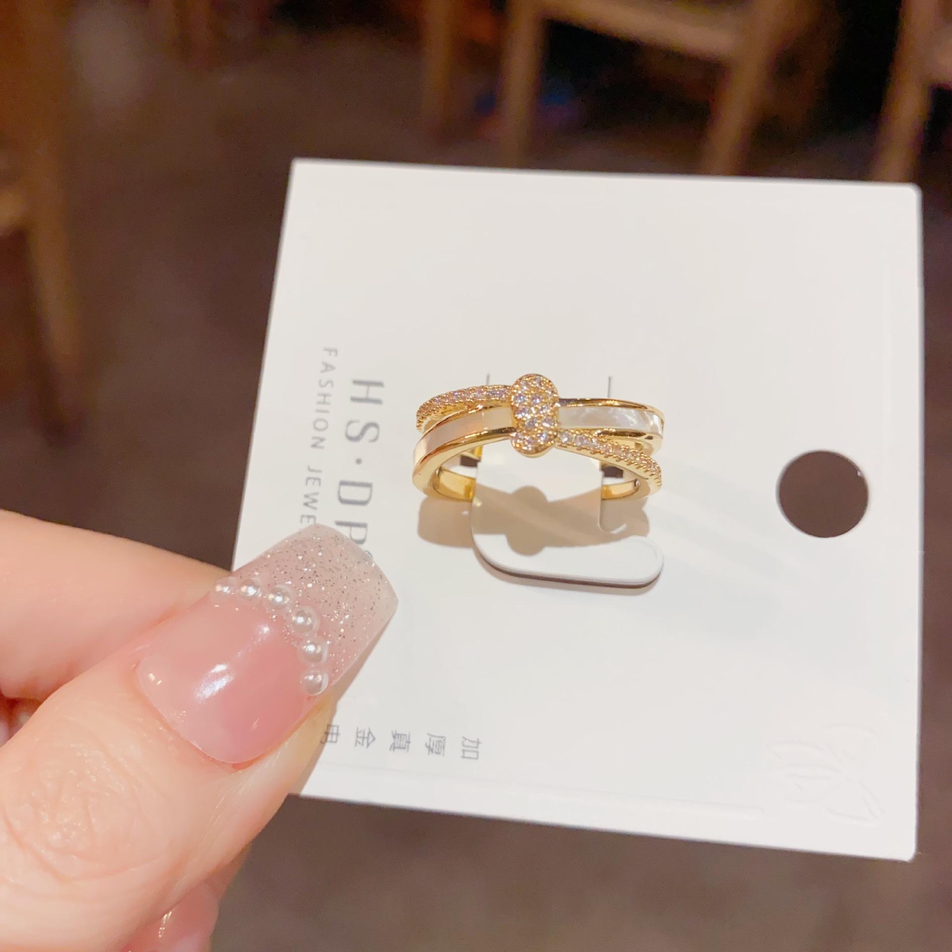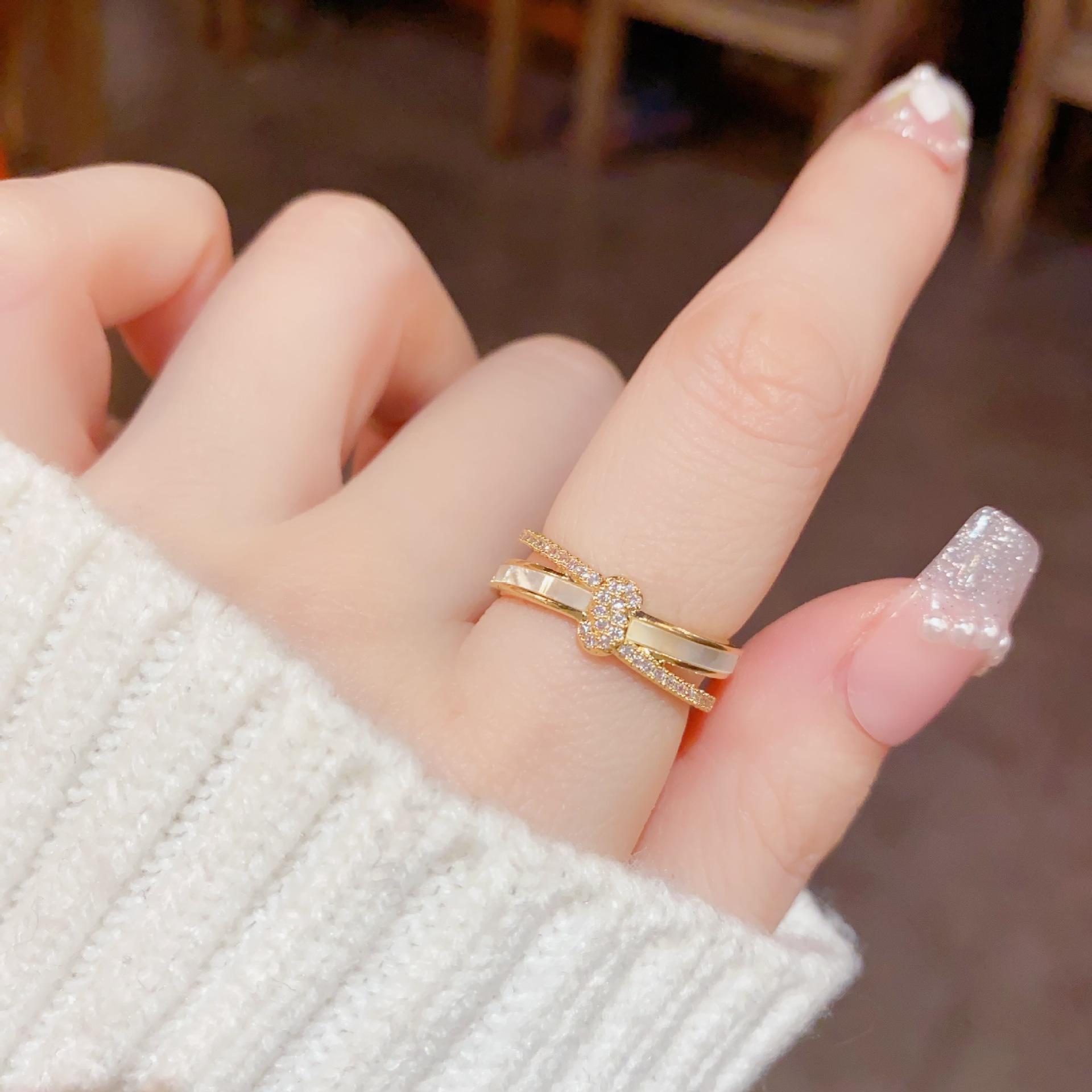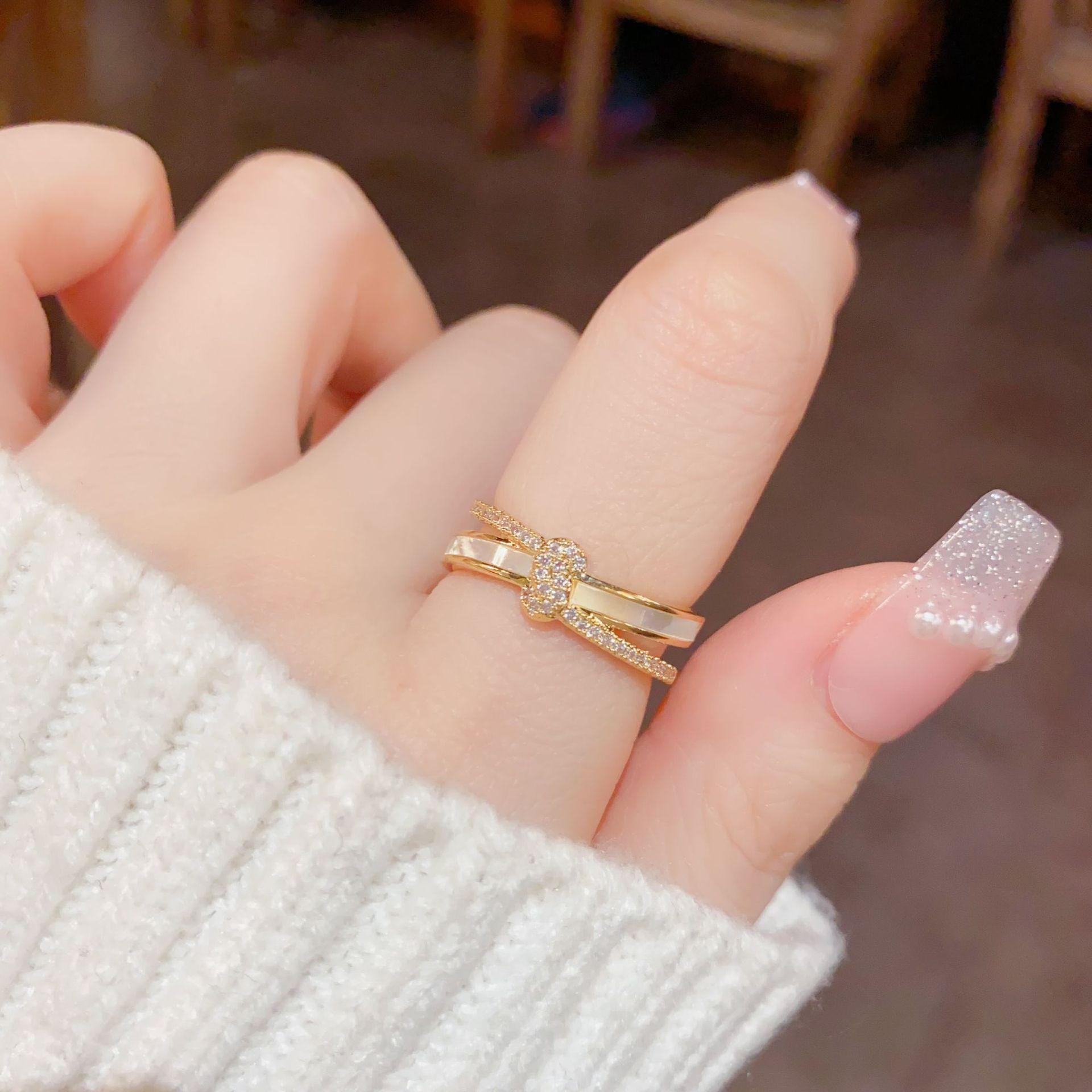 Anillo de estilo coreano simple, ligero, de lujo, con diseño de nicho, de doble capa, con apertura ondulada, elegante y a la moda, con dulces para mujer.